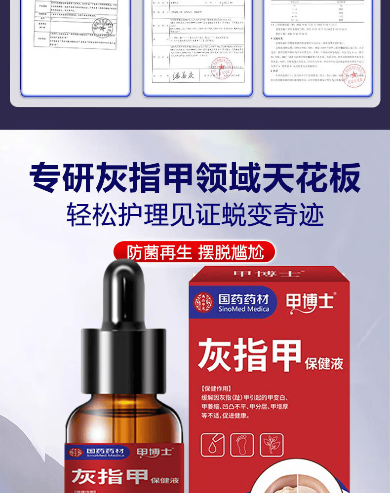 国药药材灰指甲第1名药灰指甲专用指甲真菌感染脱甲坏甲新亮甲根i治抑菌液 一盒装【1-2个灰甲】 灰指甲100%特效专用的药第一名