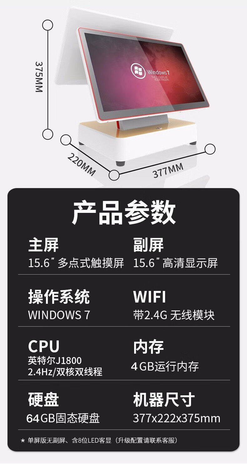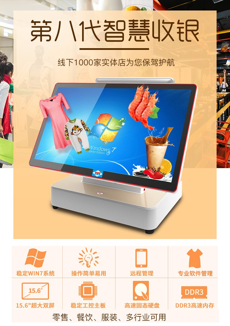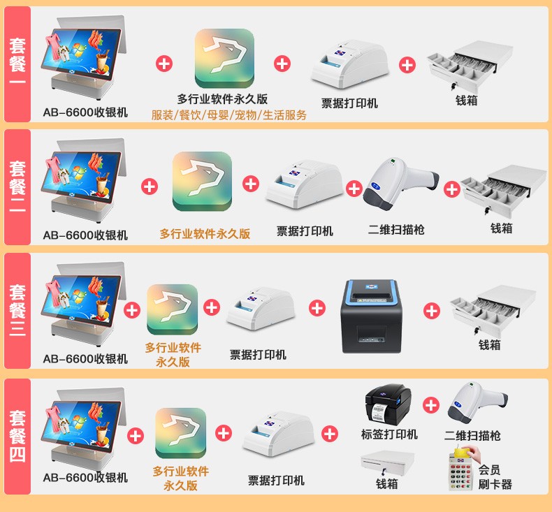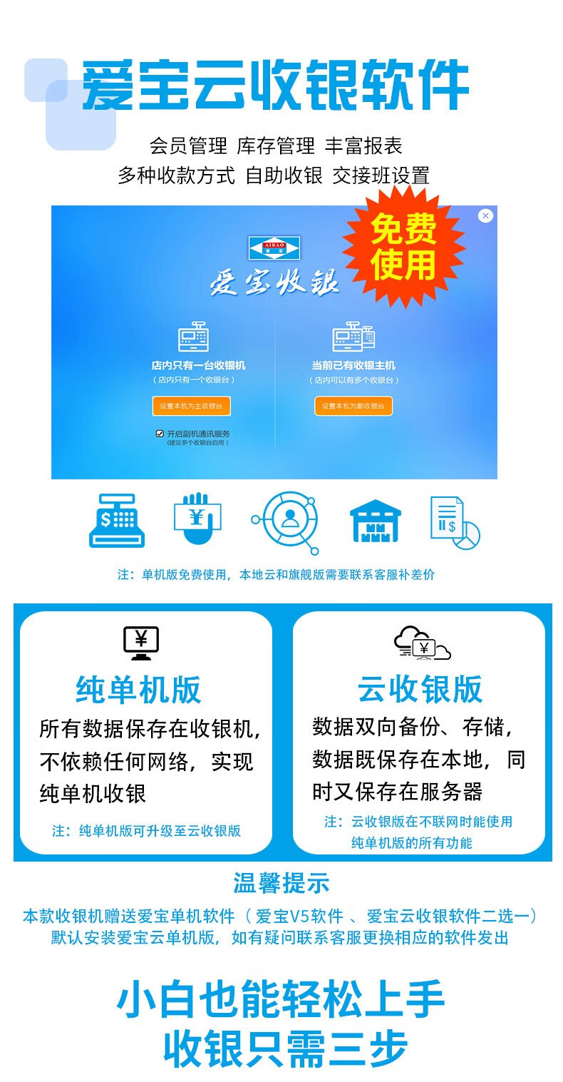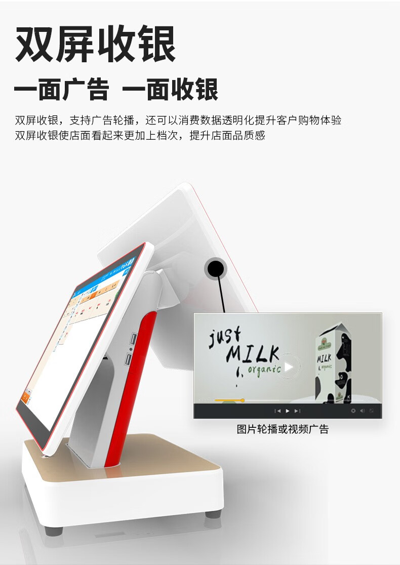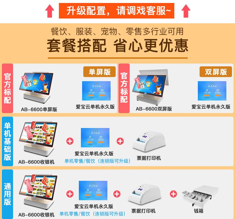爱宝AB-6600双屏收银机一体机 零售餐饮母婴服装 化妆品童装奶茶酒楼美发容外卖点菜收款机收银系统 单屏触屏升级版(升级配置) 套餐一