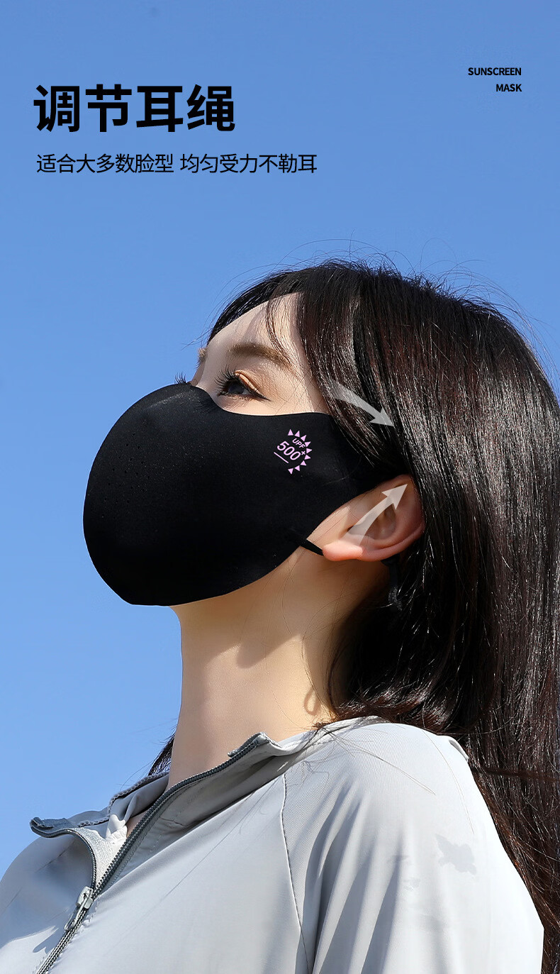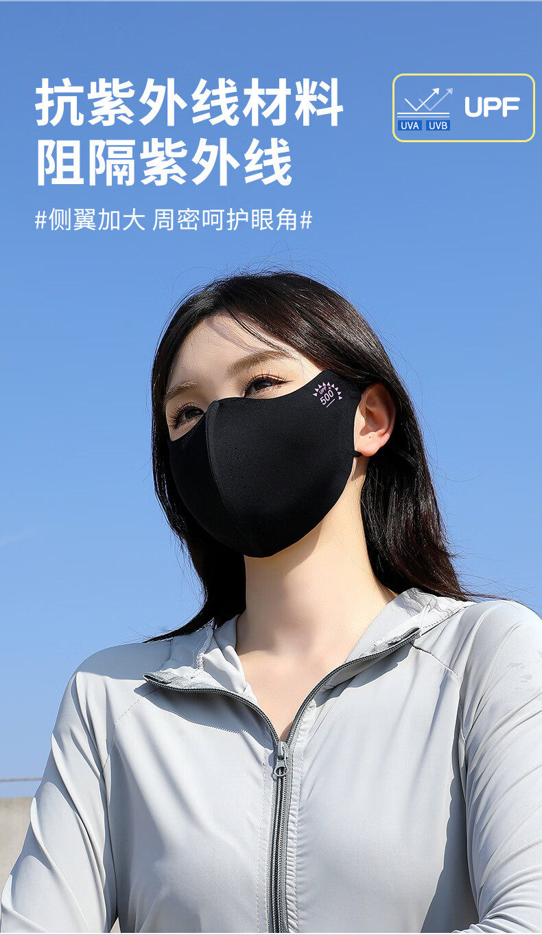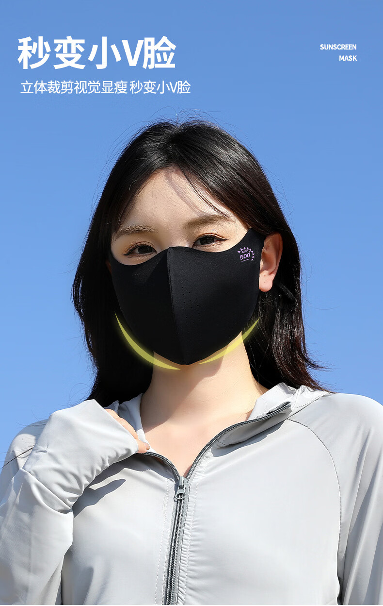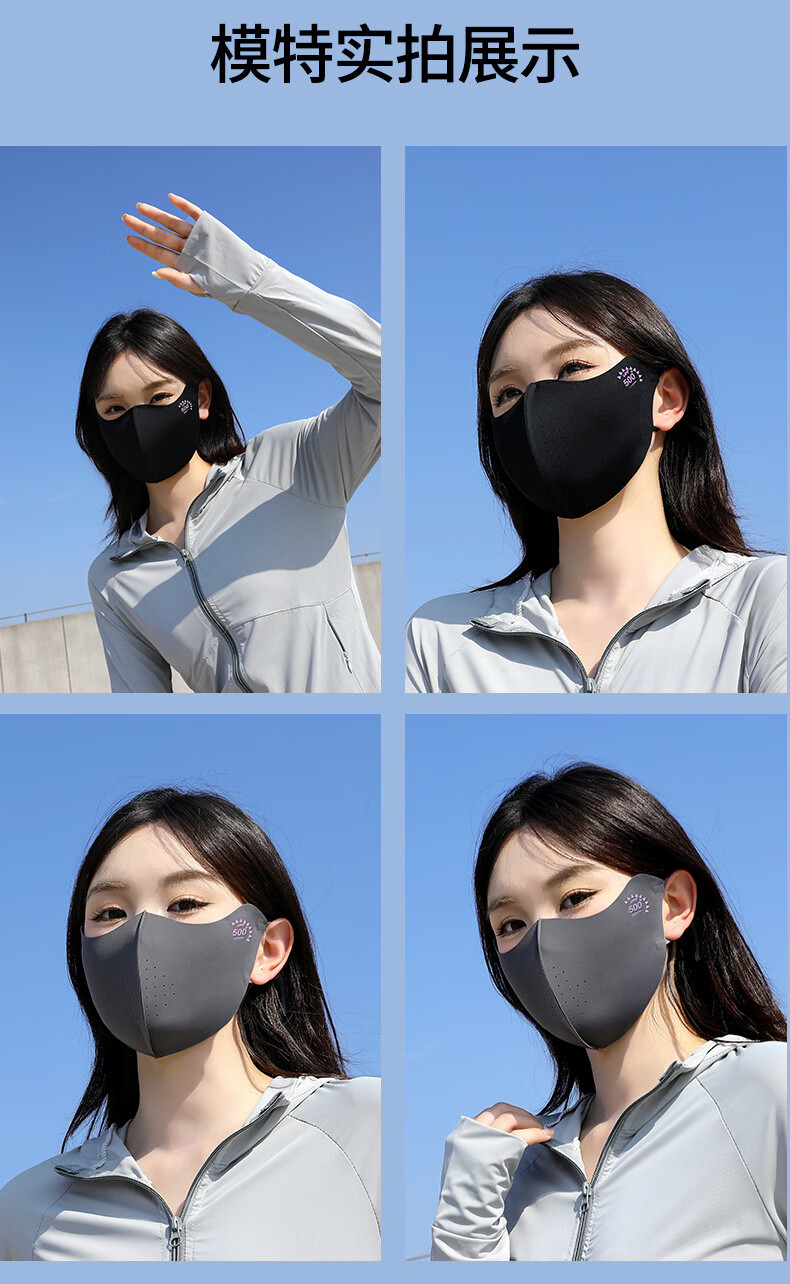 羽小朵面膜防晒口罩女防紫外线高颜值遮阳防护透气骑行冰丝面罩拍1发5 黑色 拍1发5 锦纶原纱/UPF50+