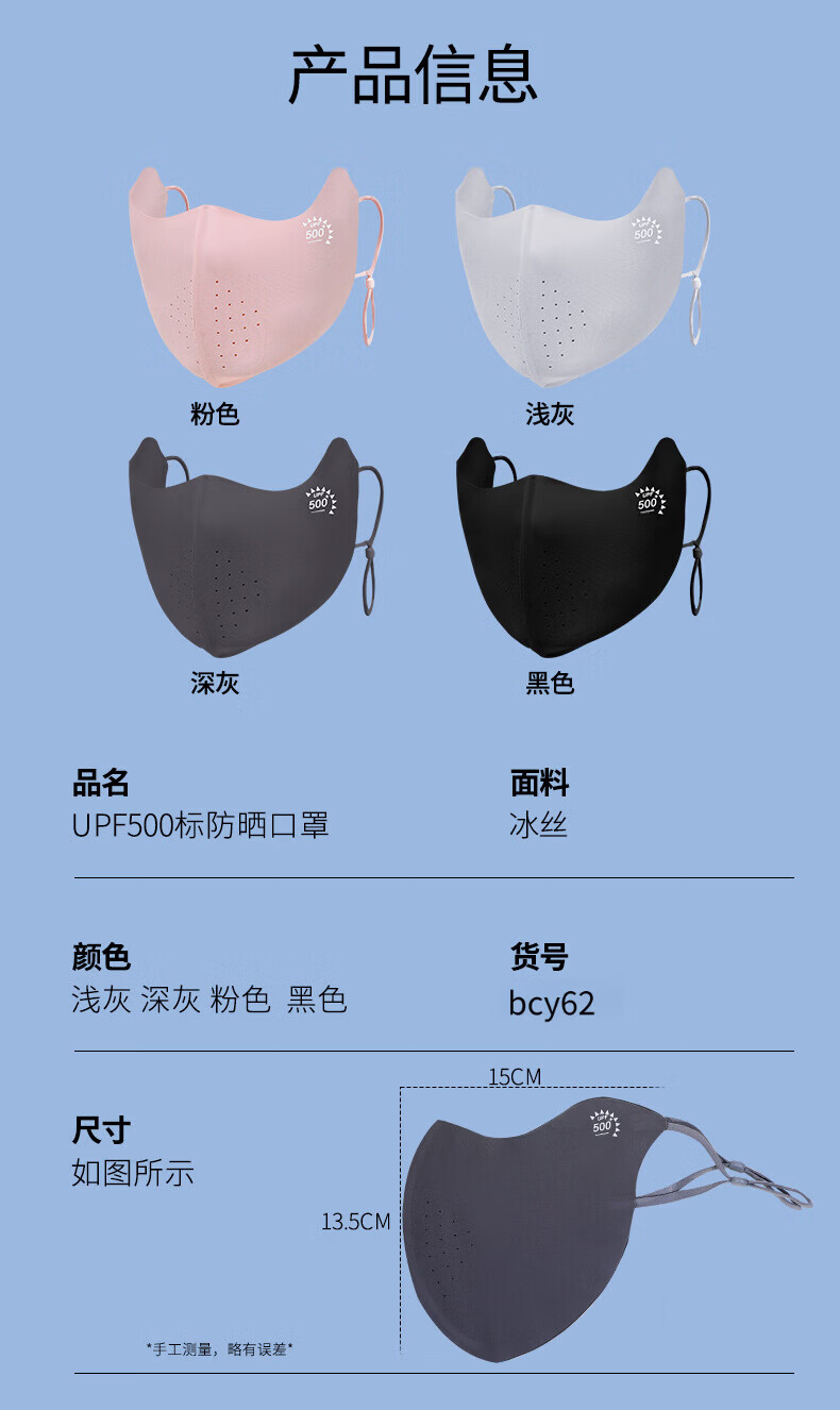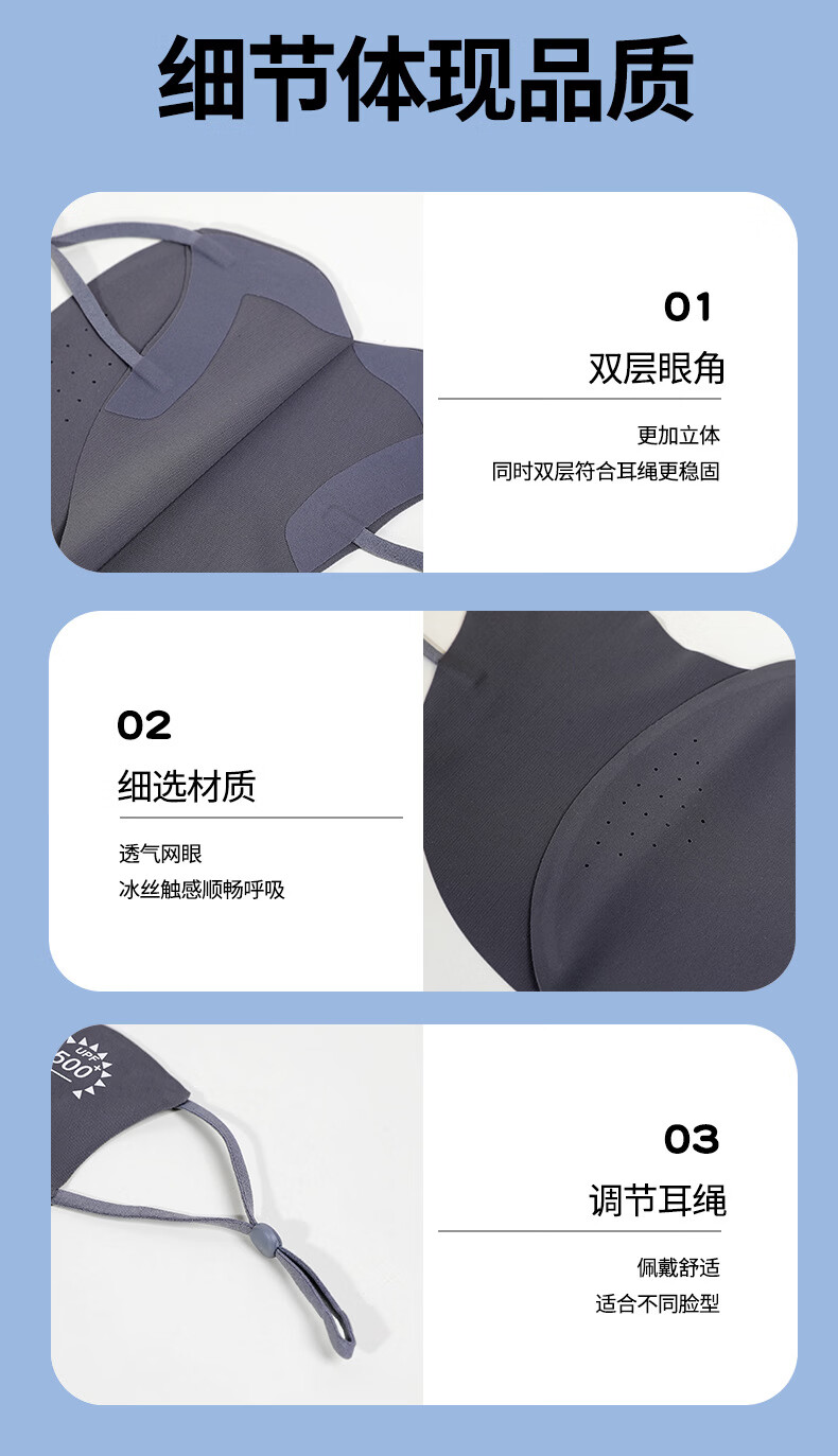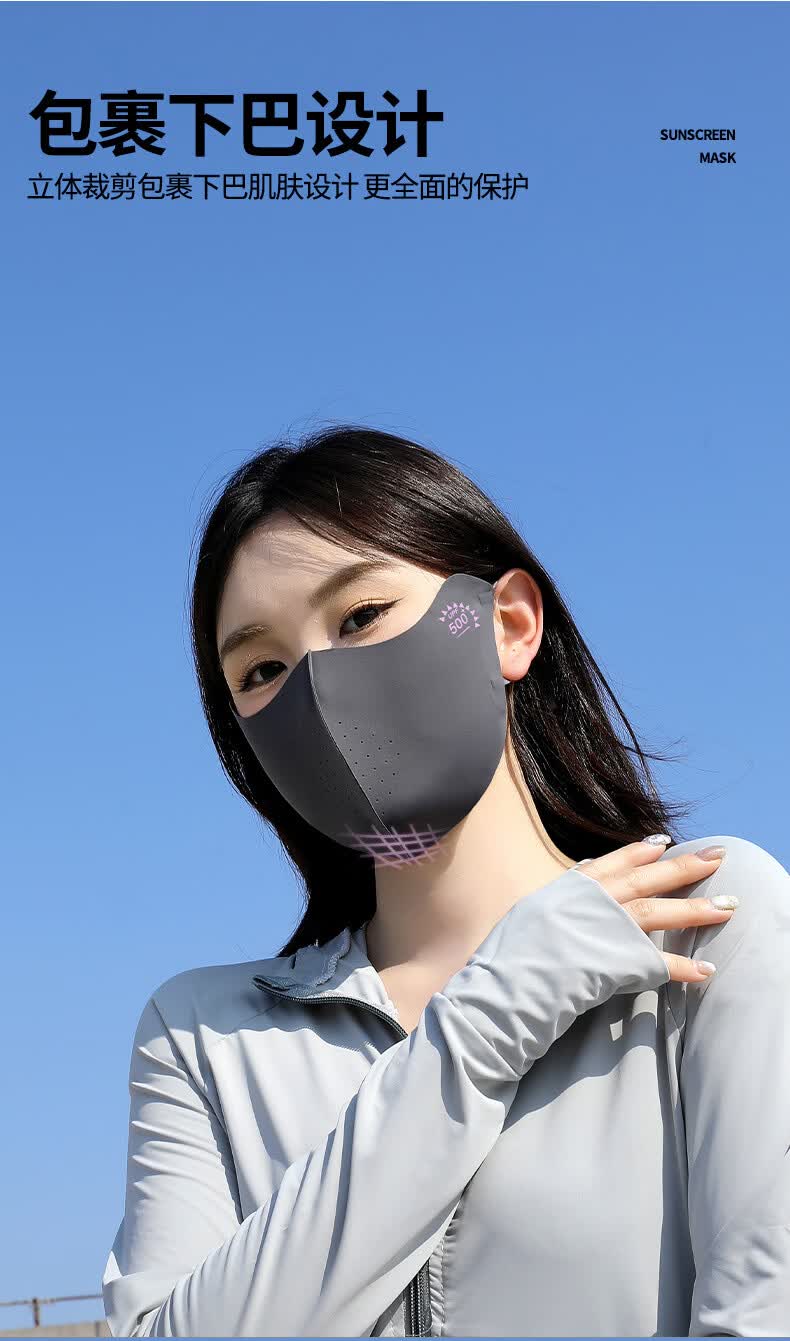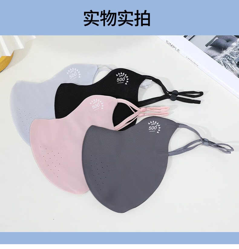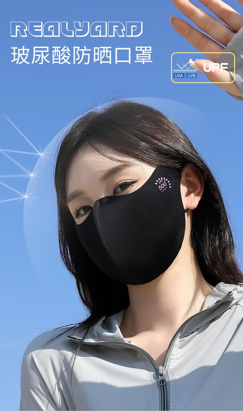 羽小朵面膜防晒口罩女防紫外线高颜值遮阳防护透气骑行冰丝面罩拍1发5 黑色 拍1发5 锦纶原纱/UPF50+