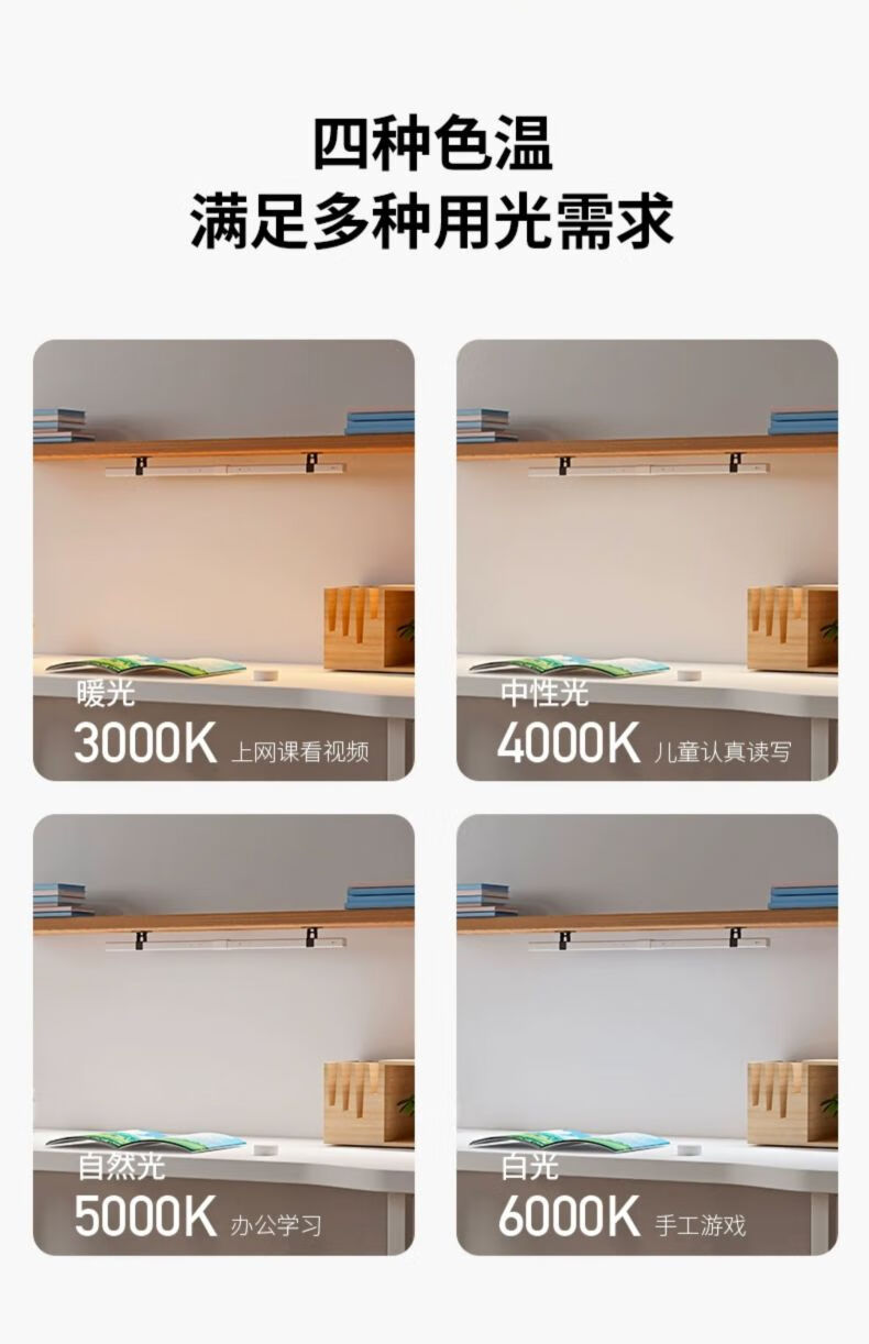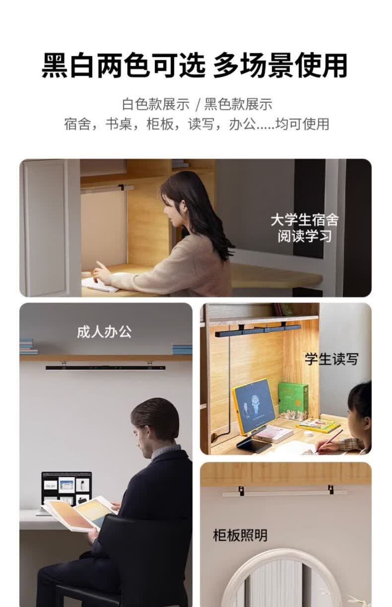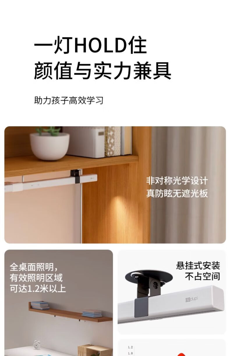 dpdupi德普磁吸悬挂护眼台灯国AA学生寝室书柜橱柜专用全光谱防眩护视力 80CM 白色磁吸悬挂书柜灯【可遥控】