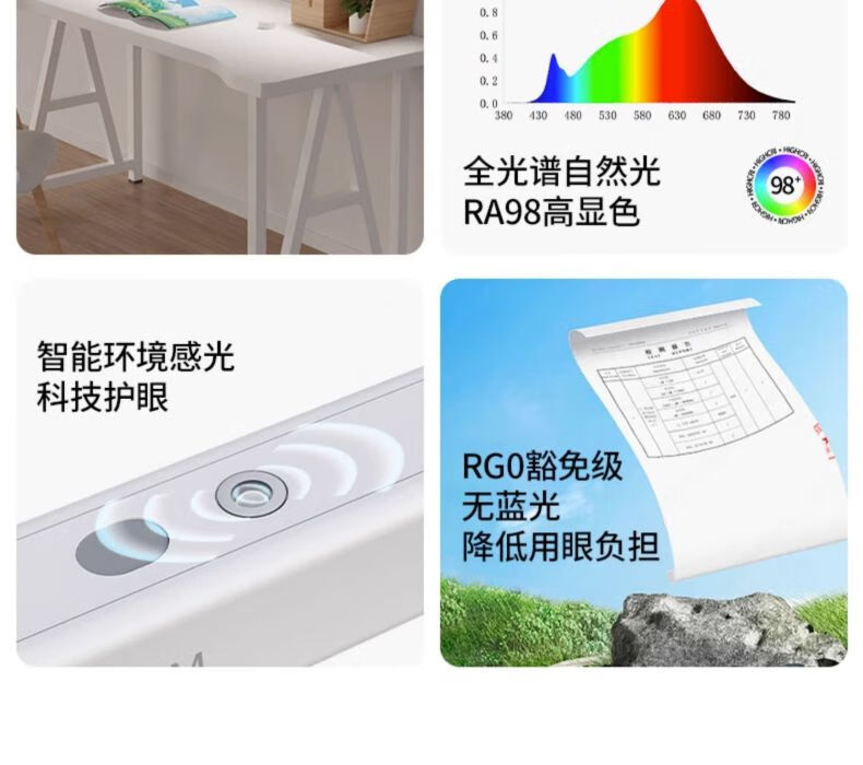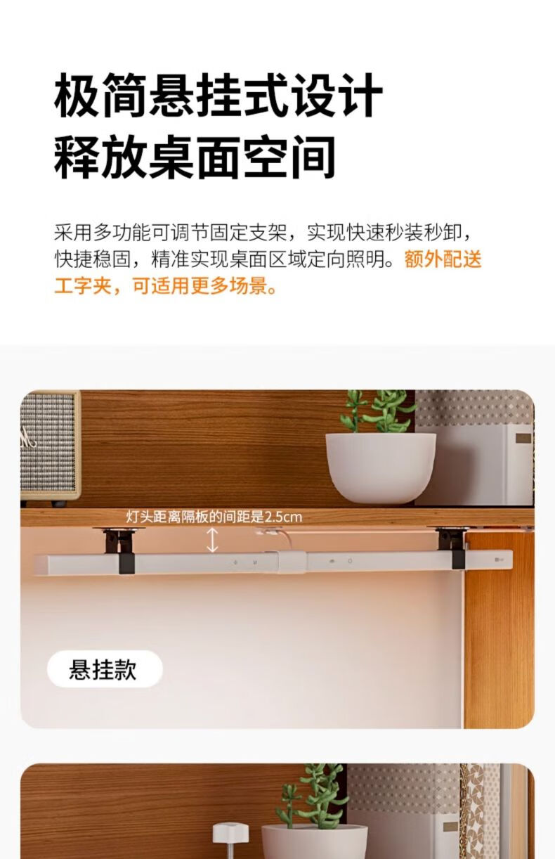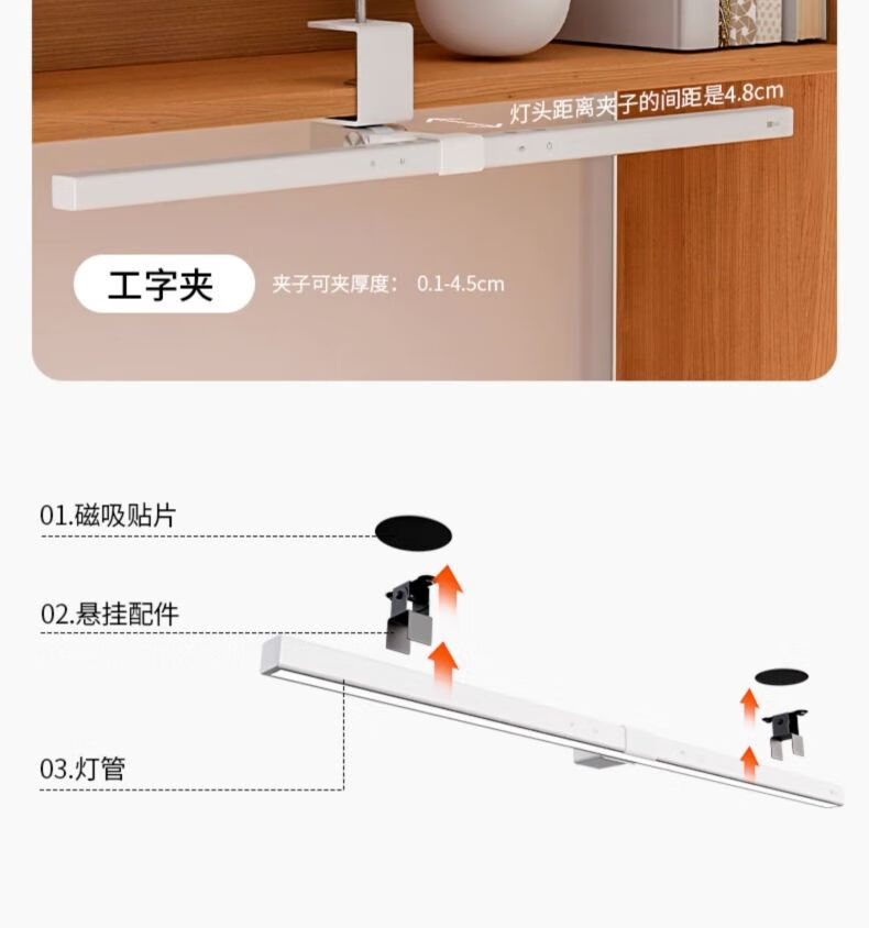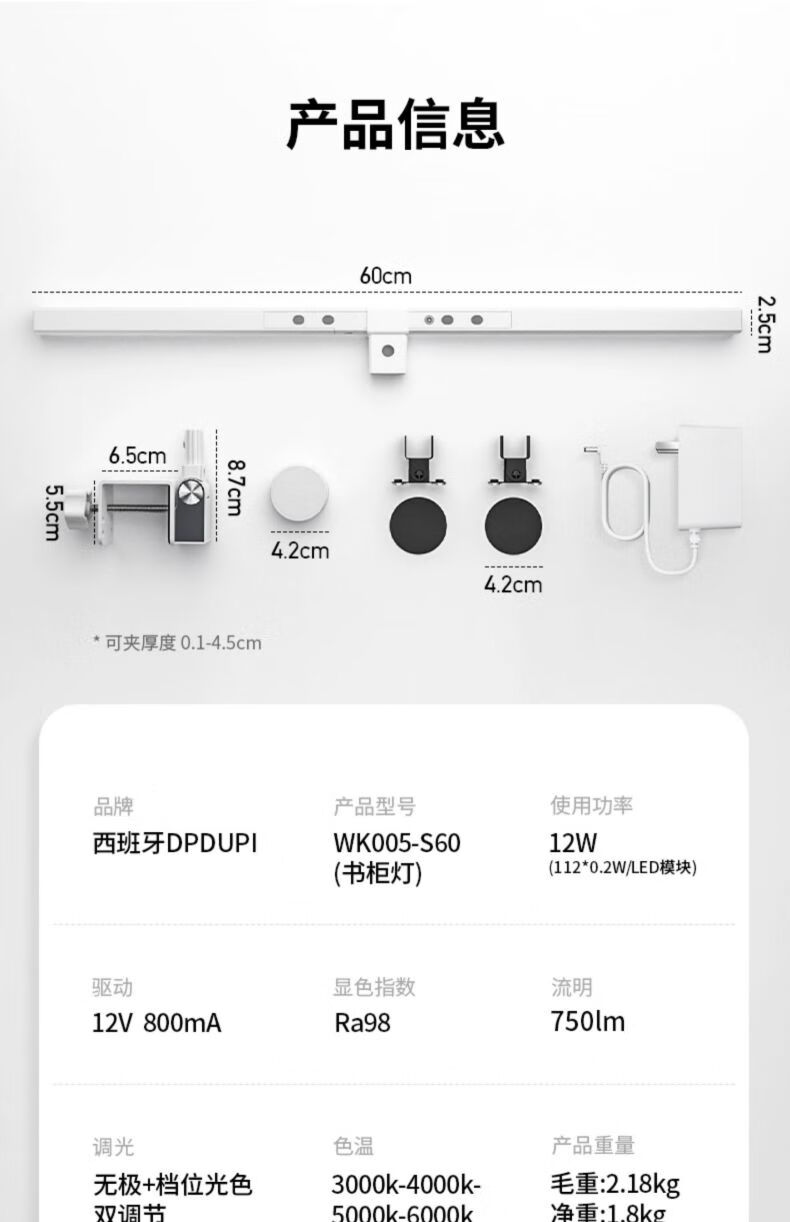 dpdupi德普护眼台灯国AA级儿童学生学习机屏幕阅读书桌全光谱防眩光护视 60CM小白Mini 全光谱护眼台灯 台座/台夹双用款