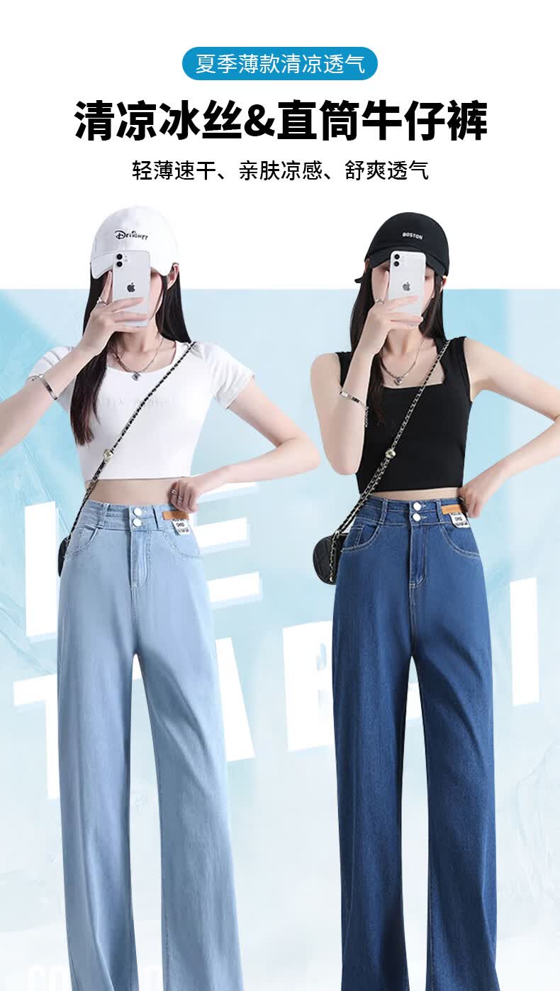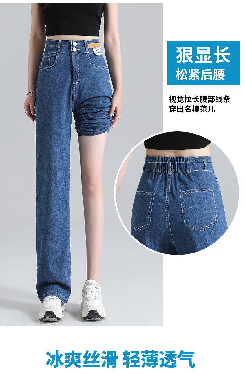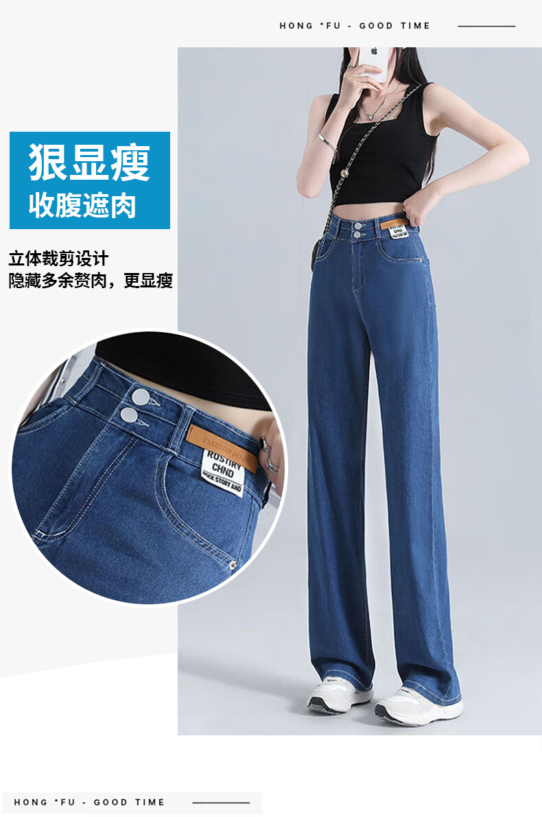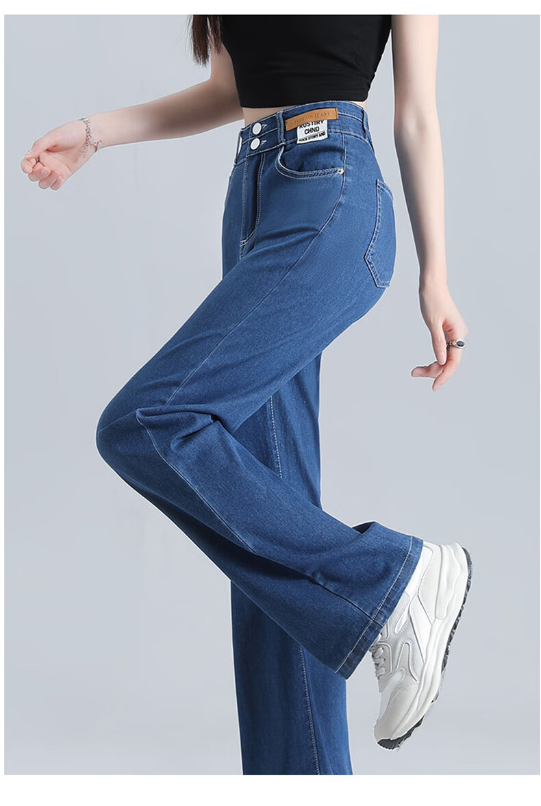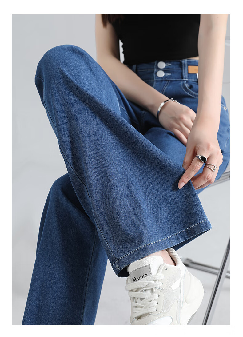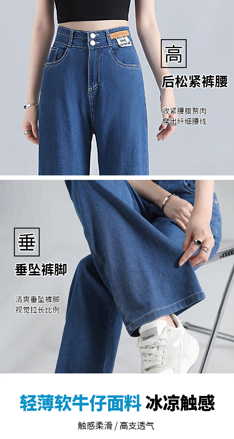 浪莎莱赛尔天丝牛仔裤女夏季高腰垂感冰丝牛仔裤子女宽松休闲阔腿裤女 深复古蓝 2XL (适合130-140斤)