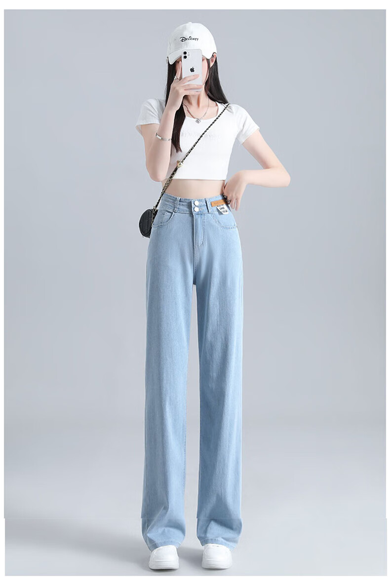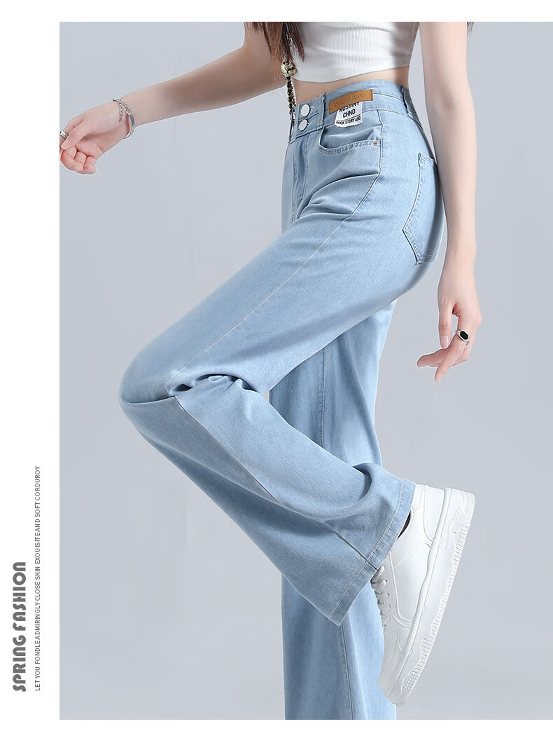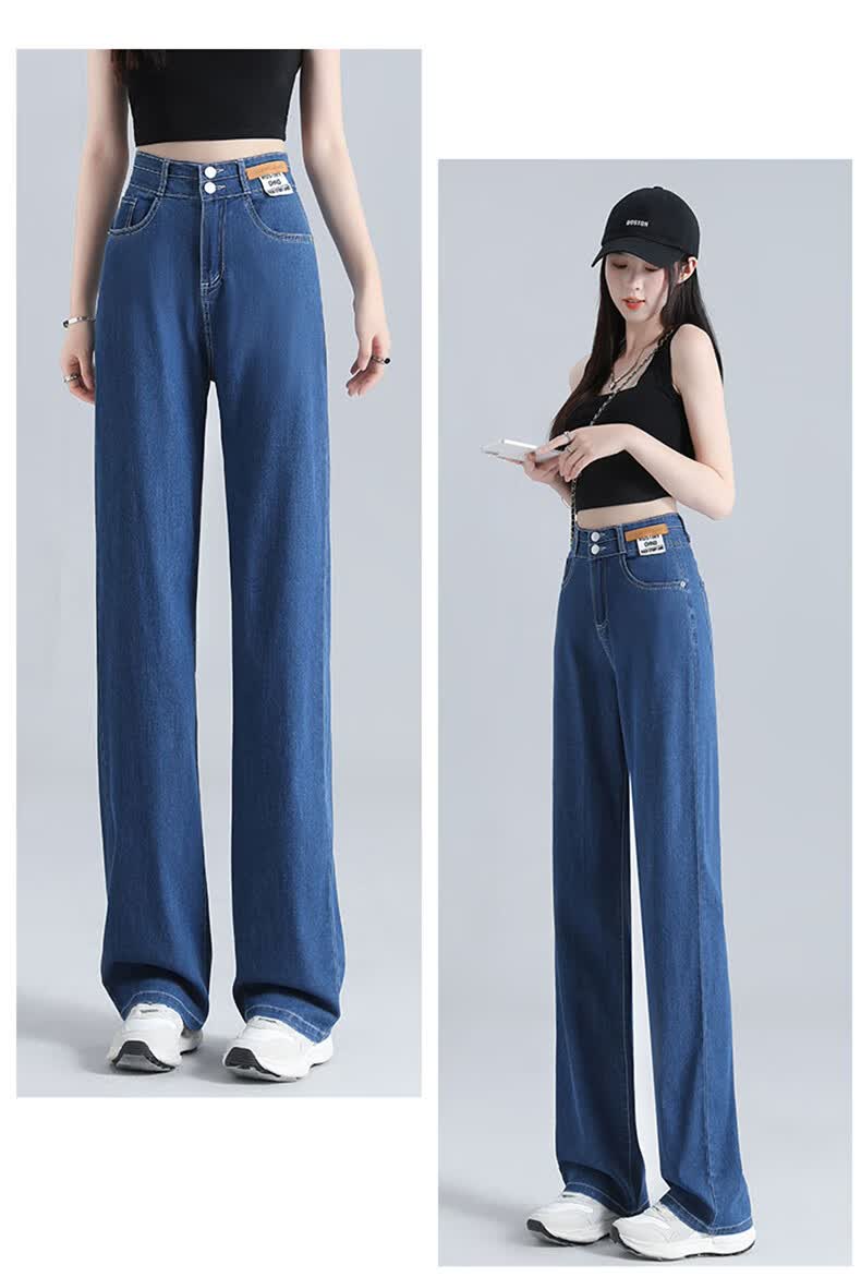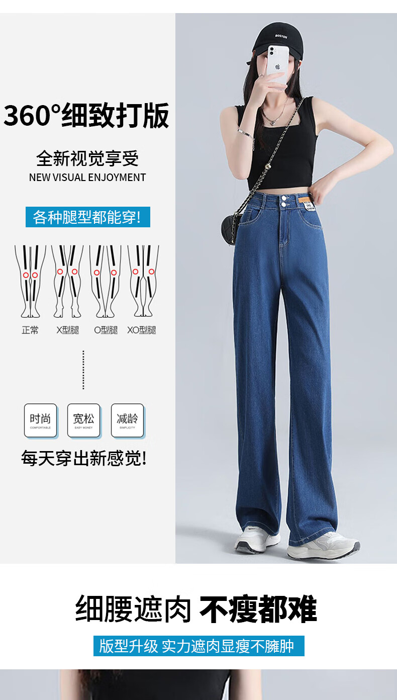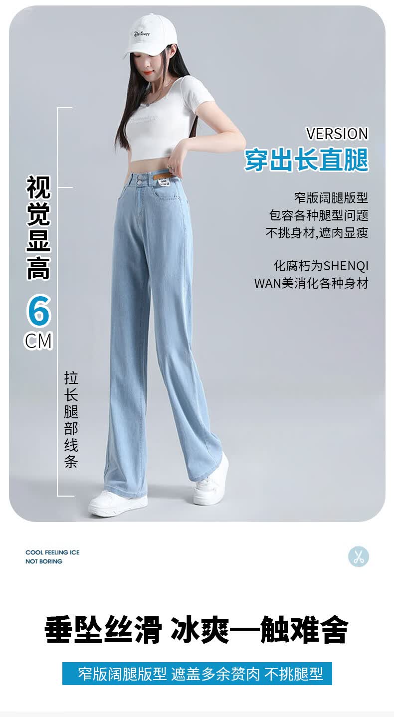 浪莎莱赛尔天丝牛仔裤女夏季高腰垂感冰丝牛仔裤子女宽松休闲阔腿裤女 深复古蓝 2XL (适合130-140斤)
