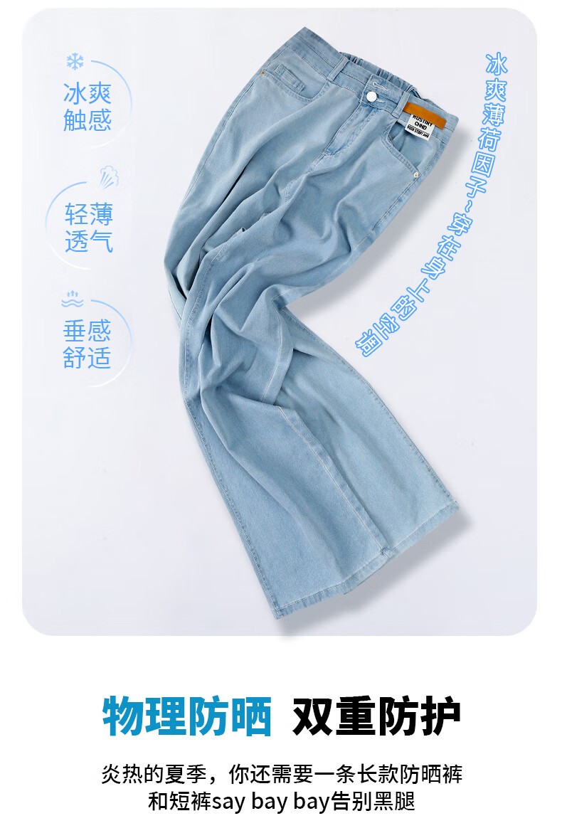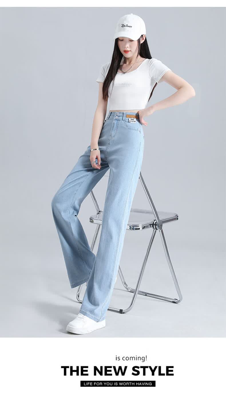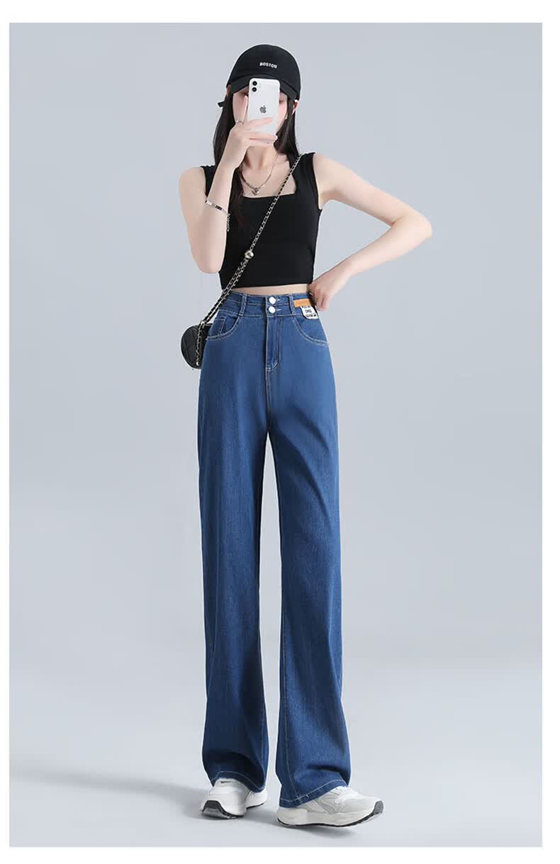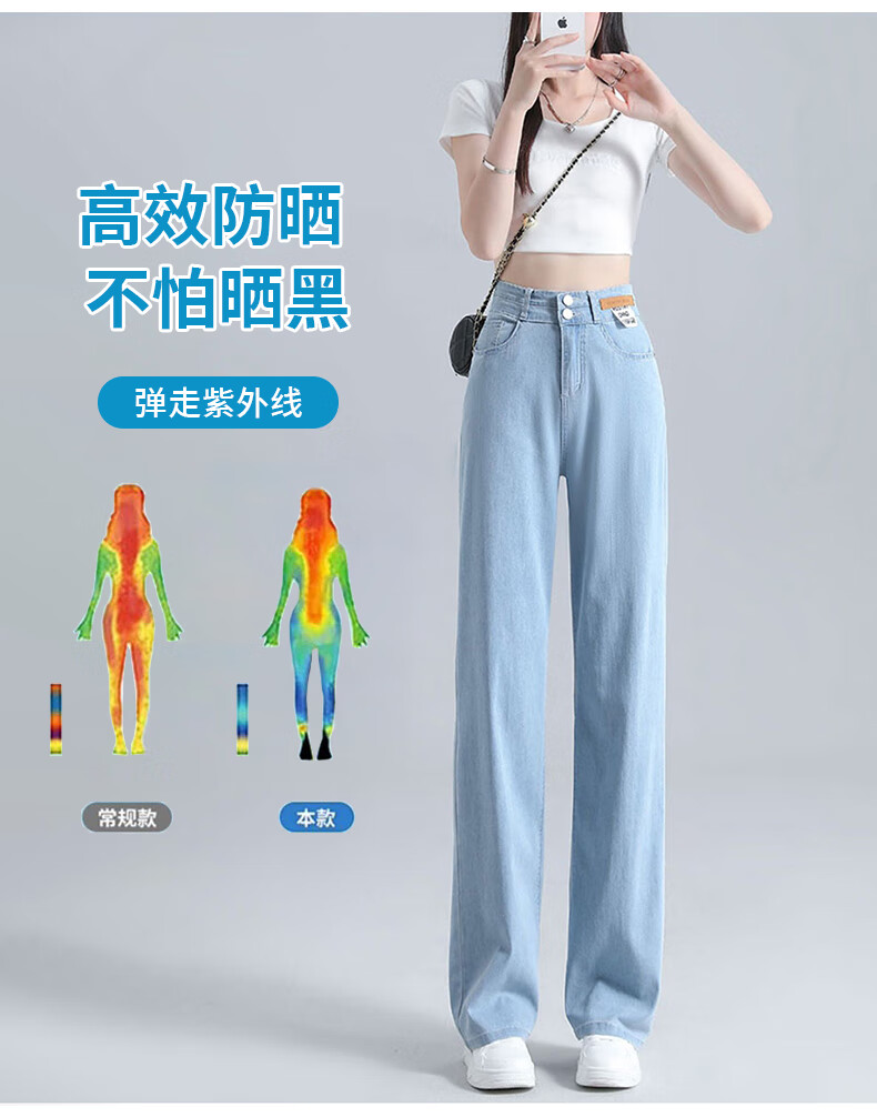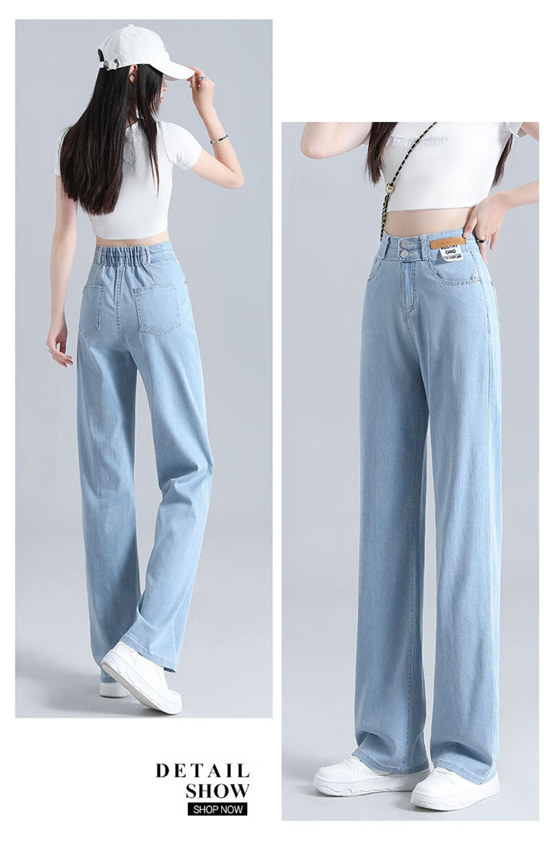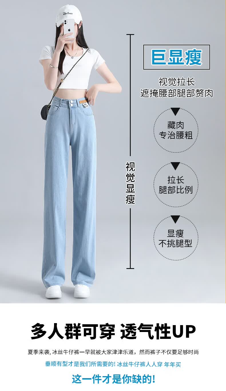 浪莎莱赛尔天丝牛仔裤女夏季高腰垂感冰丝牛仔裤子女宽松休闲阔腿裤女 深复古蓝 2XL (适合130-140斤)