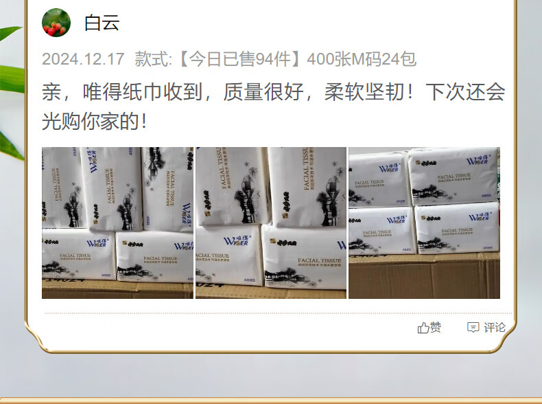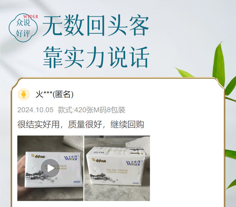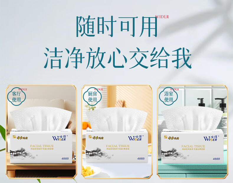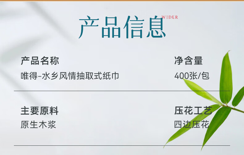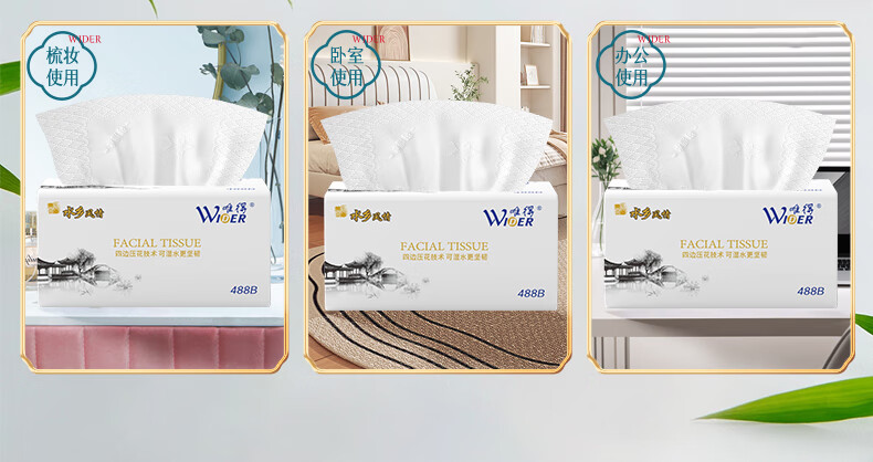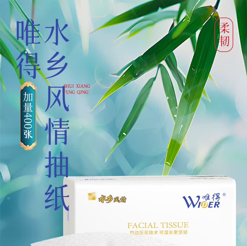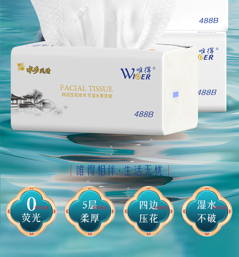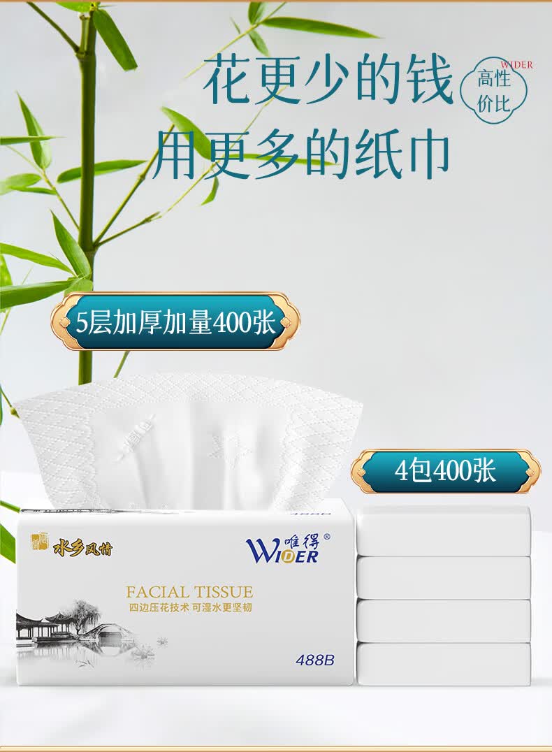 唯得(wider)水乡风情抽纸5层加厚纸巾批发400张加量家用可湿水实惠学生宿舍纸 家用办公 5层 80抽*100包 旅行装