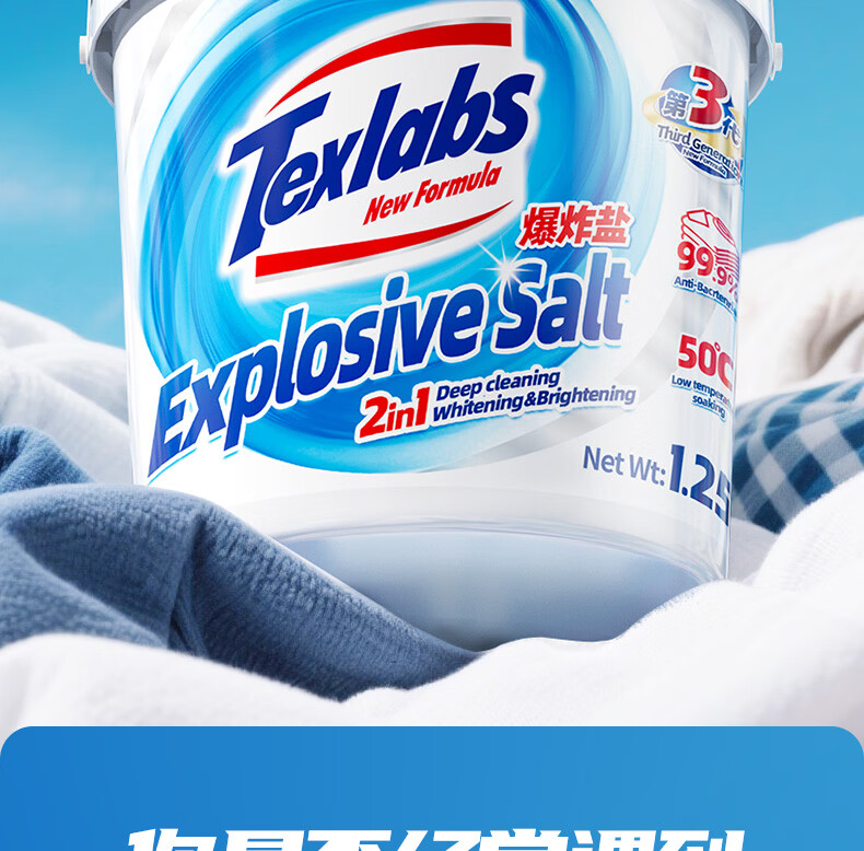 泰克斯乐(Texlabs)彩漂粉爆炸盐1.25kg彩衣白衣漂白剂去黄增艳除菌母婴可用校服净 【泰克斯乐】爆炸盐1.25kg桶装