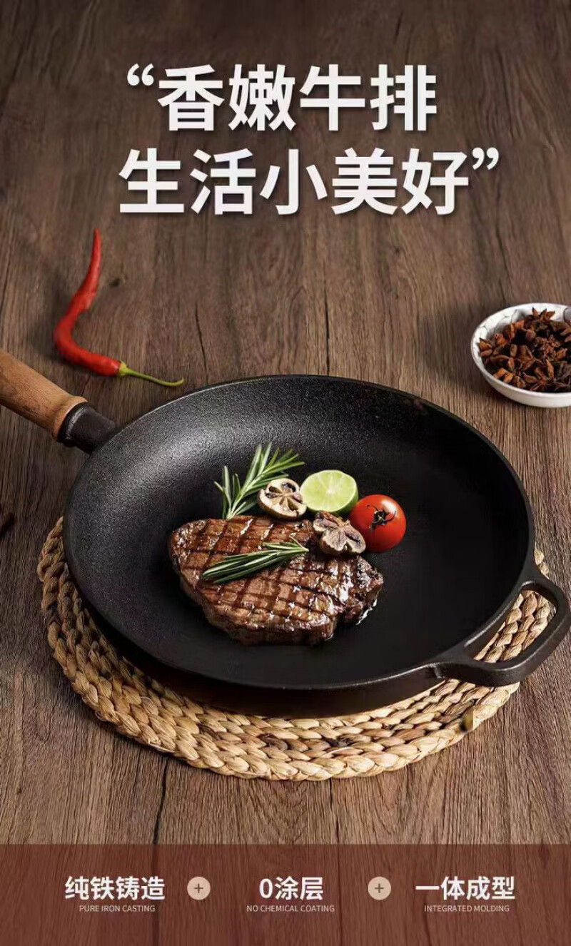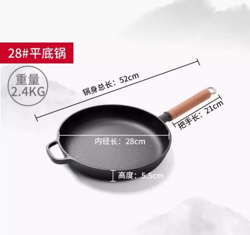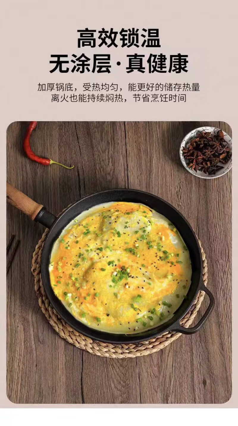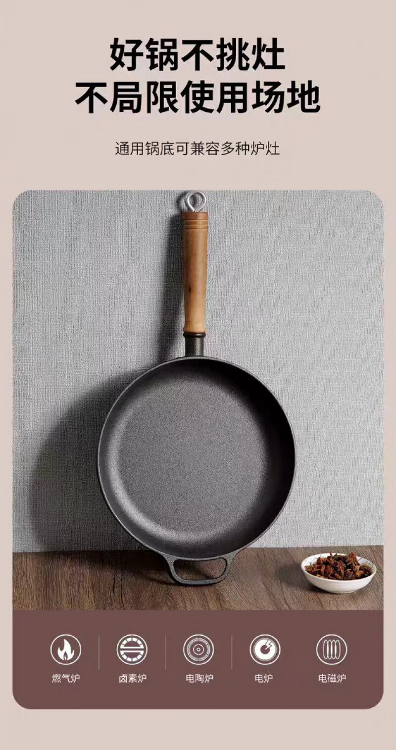 Lovefamily德国平底锅不粘锅无涂层铸铁0涂层0氟烙饼煎锅燃气灶牛排烙饼铁锅 煎锅+玻璃盖+送食用级防烫硅胶油刷 28cm