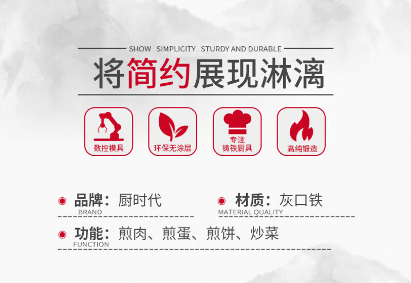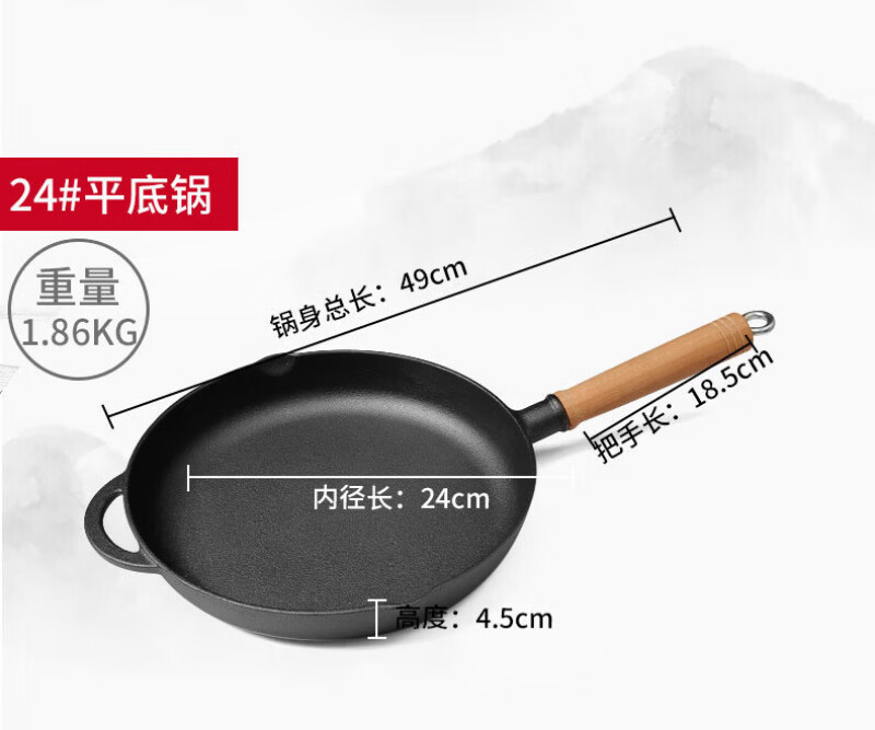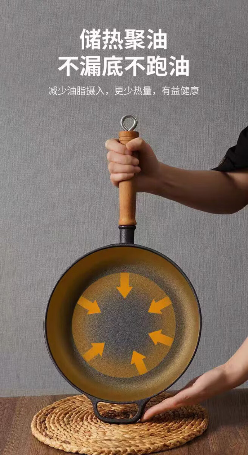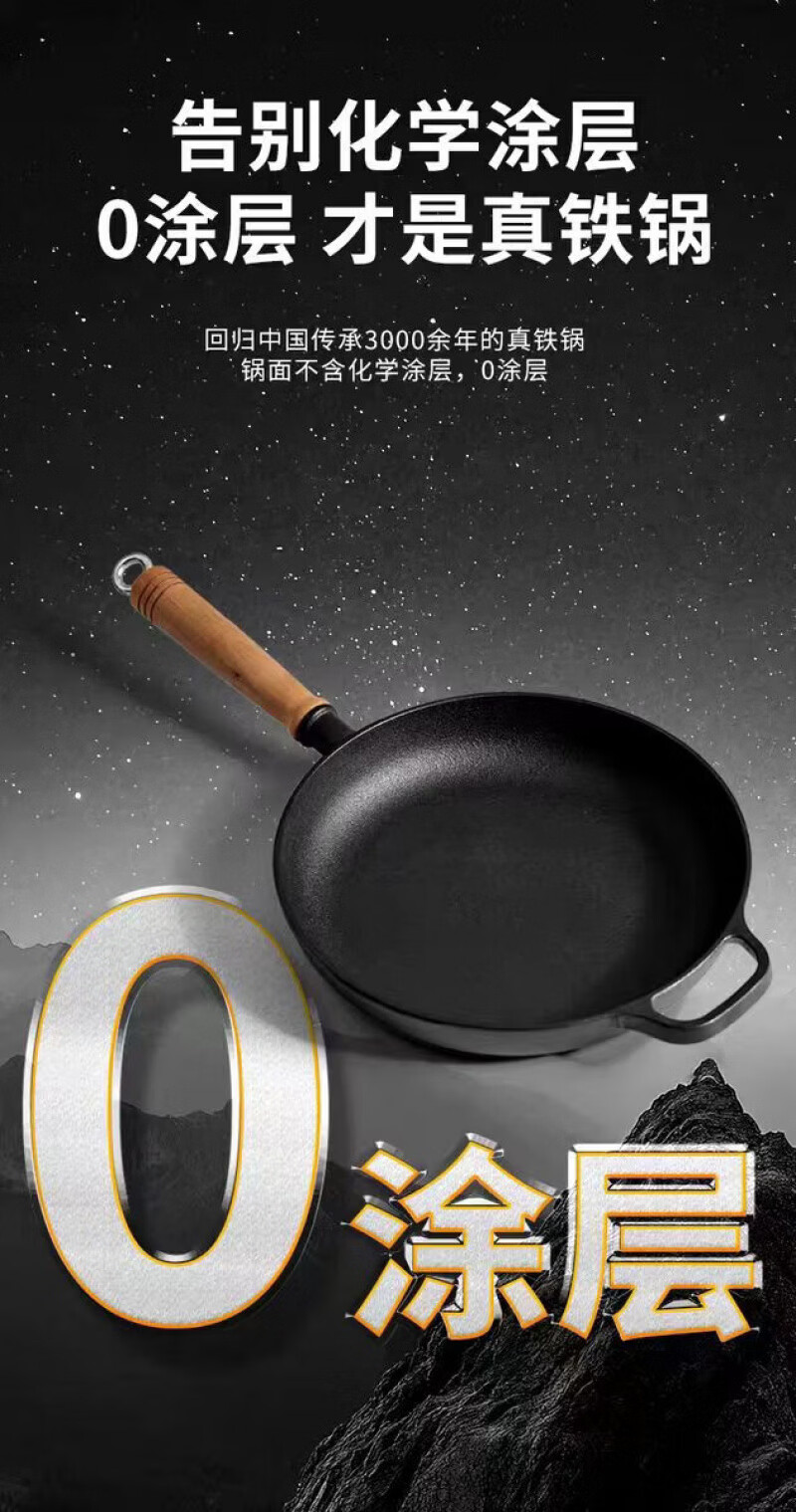 Lovefamily德国平底锅不粘锅无涂层铸铁0涂层0氟烙饼煎锅燃气灶牛排烙饼铁锅 煎锅+玻璃盖+送食用级防烫硅胶油刷 28cm