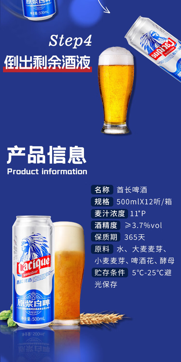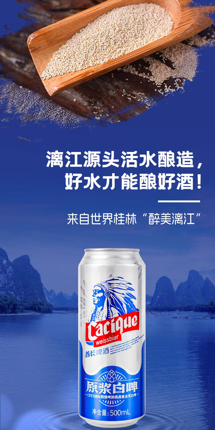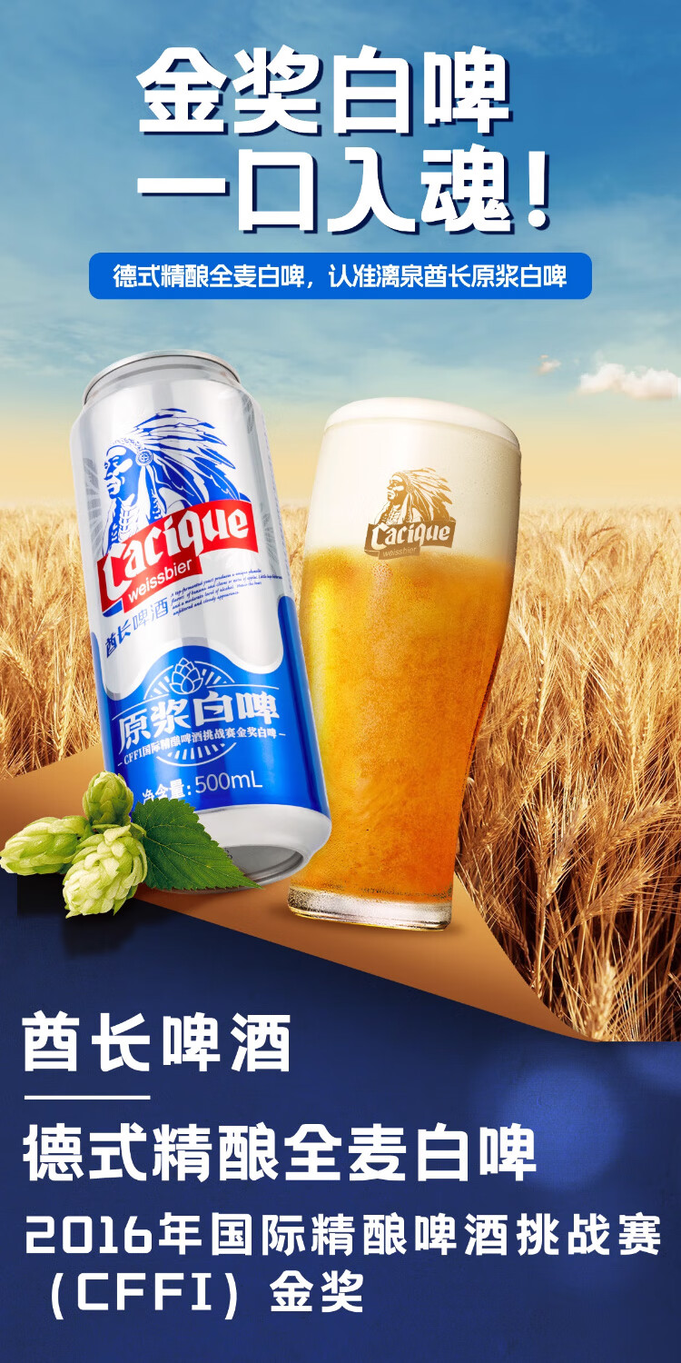 漓泉漓泉啤酒酋长全麦白啤500ml*12听装德式小麦原浆罐装高度艾尔啤酒 500mL 12罐 整箱装 【整箱】500ml*12听装
