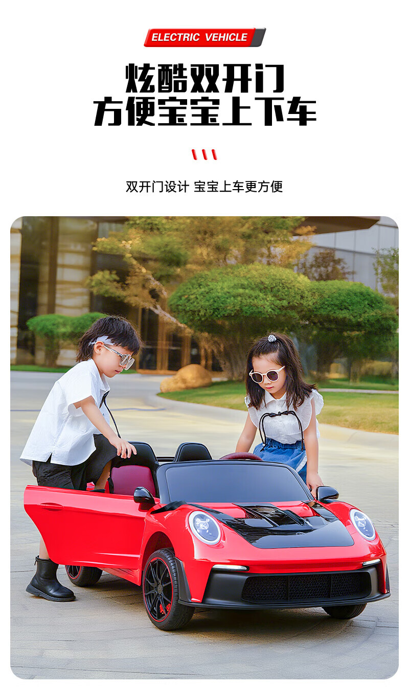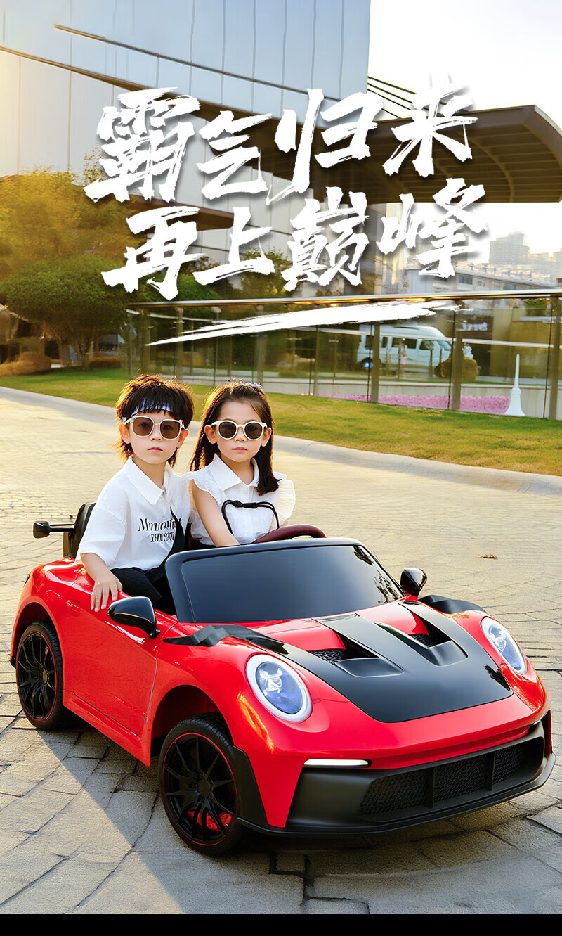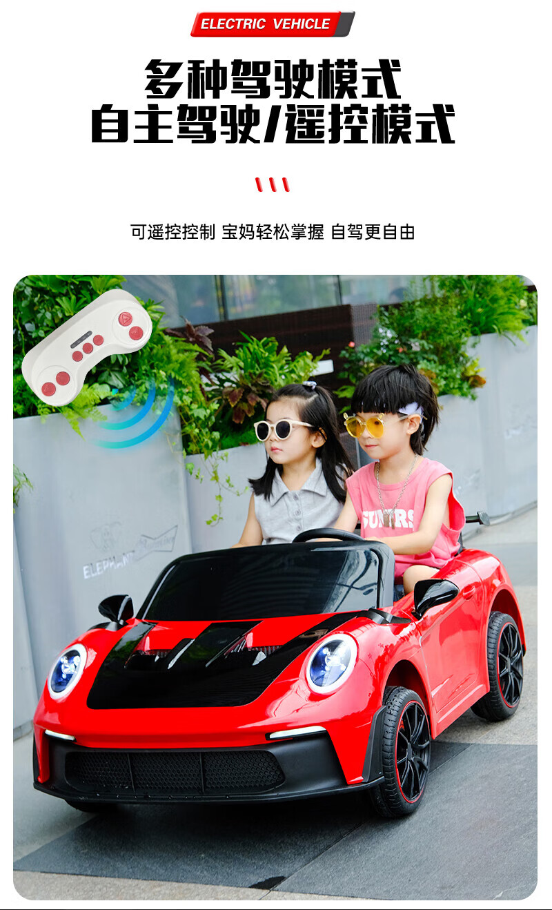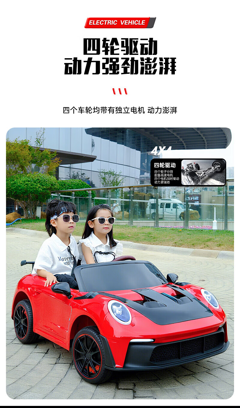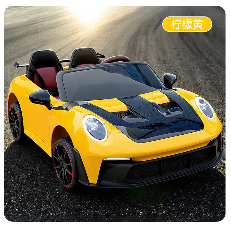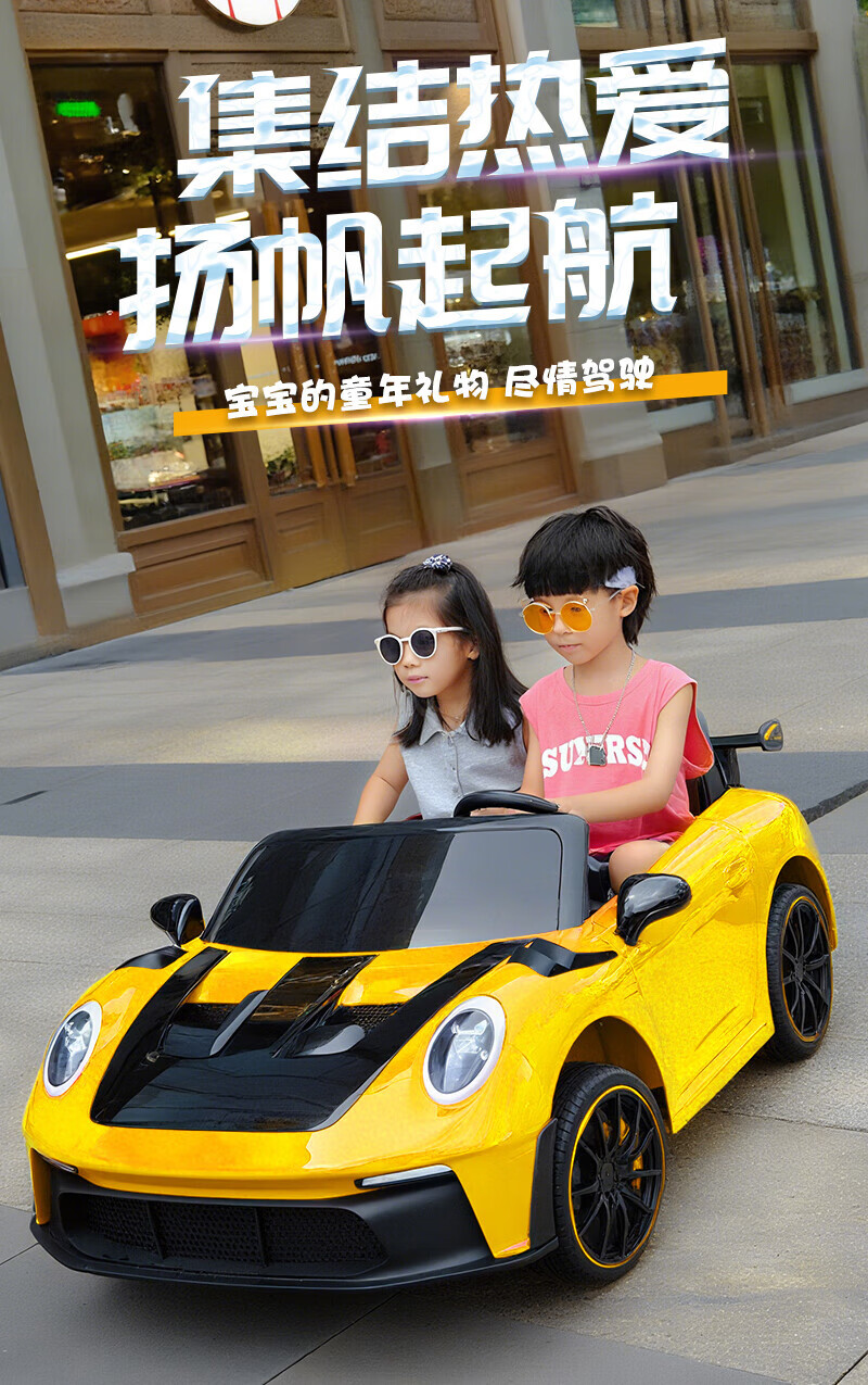 WORK BABY双座儿童电动车四轮可坐双人1-7岁遥控汽车宝宝小孩玩具童车礼物 高配黄色四驱全功能+皮座+软轮 电力驱动+自驾遥控