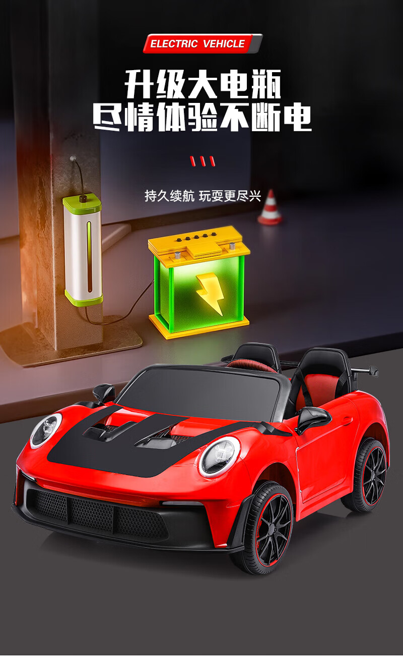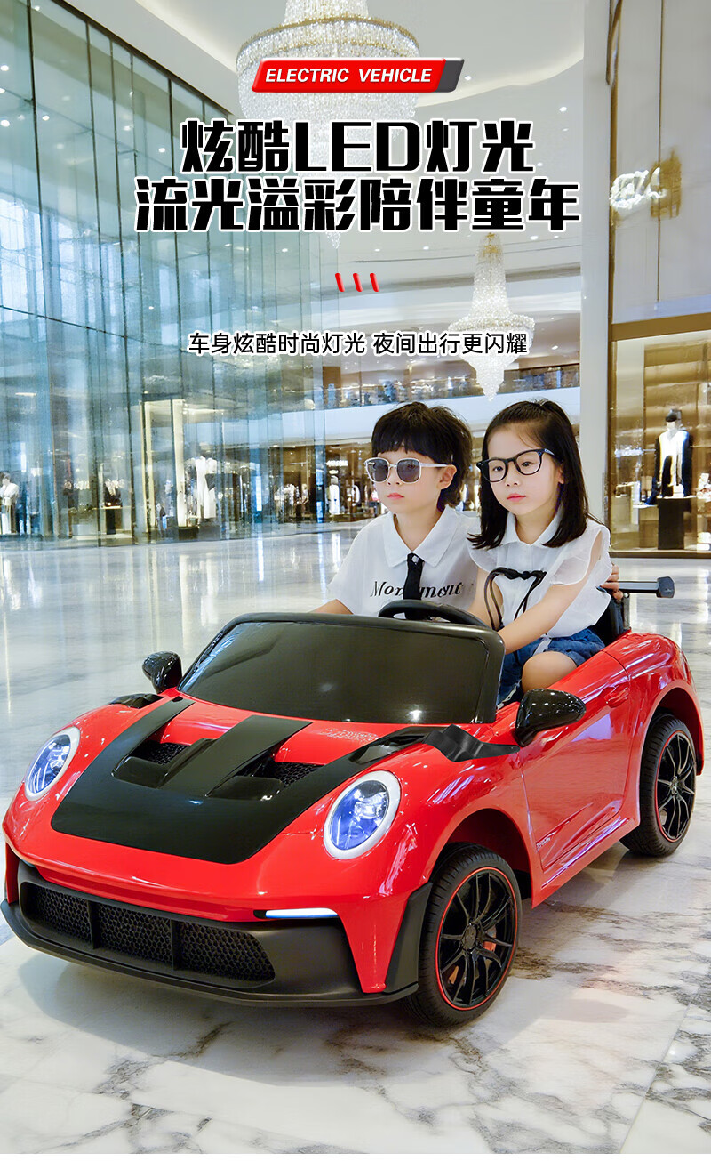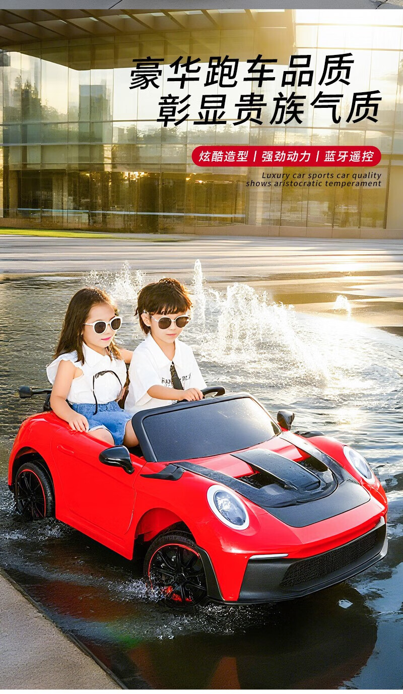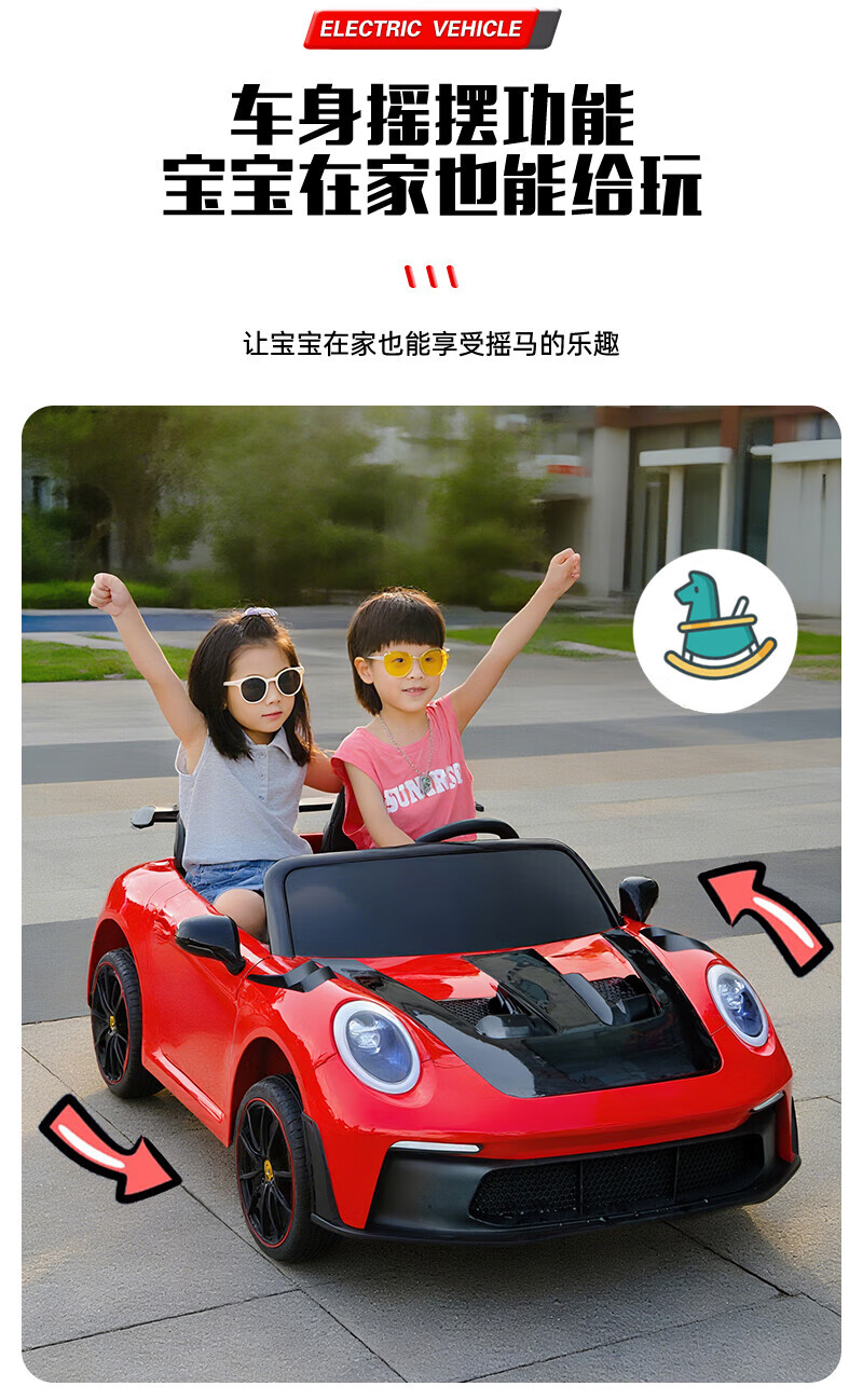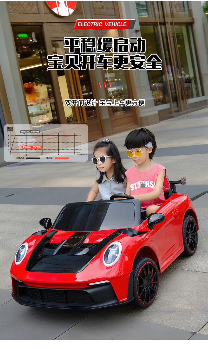 WORK BABY双座儿童电动车四轮可坐双人1-7岁遥控汽车宝宝小孩玩具童车礼物 高配黄色四驱全功能+皮座+软轮 电力驱动+自驾遥控