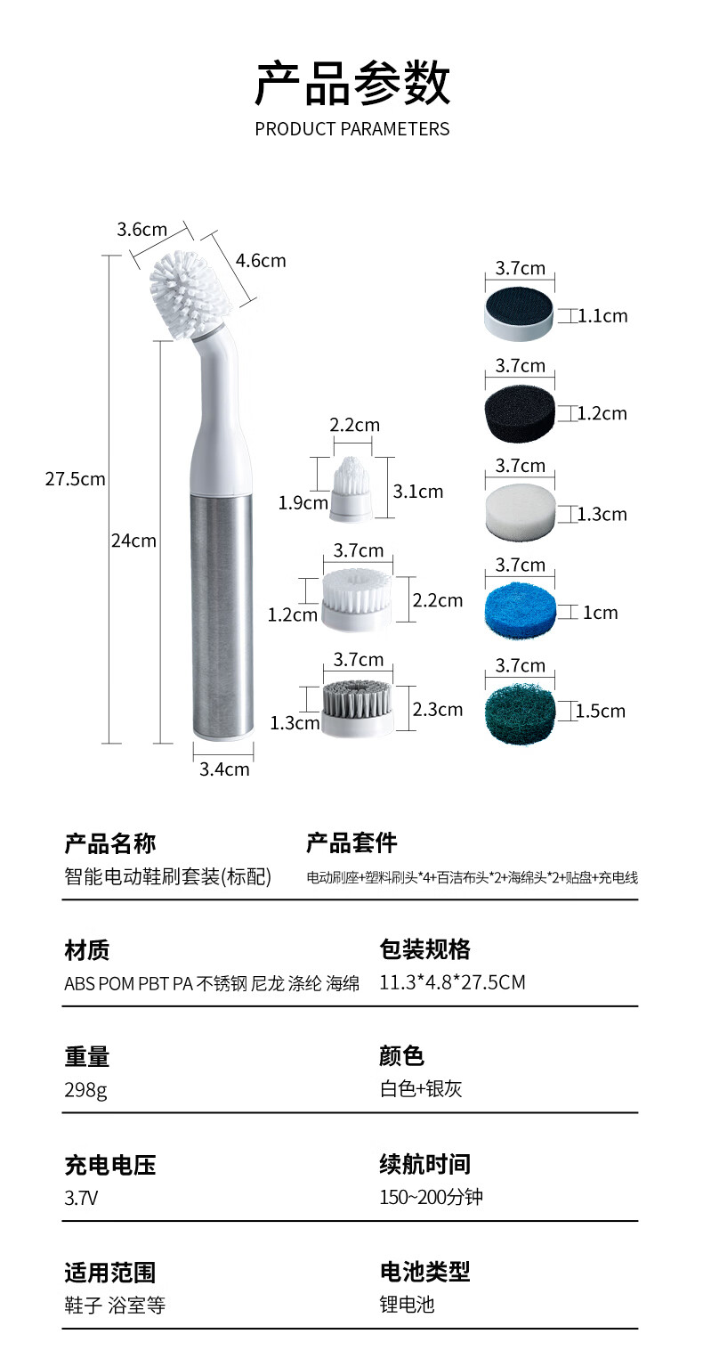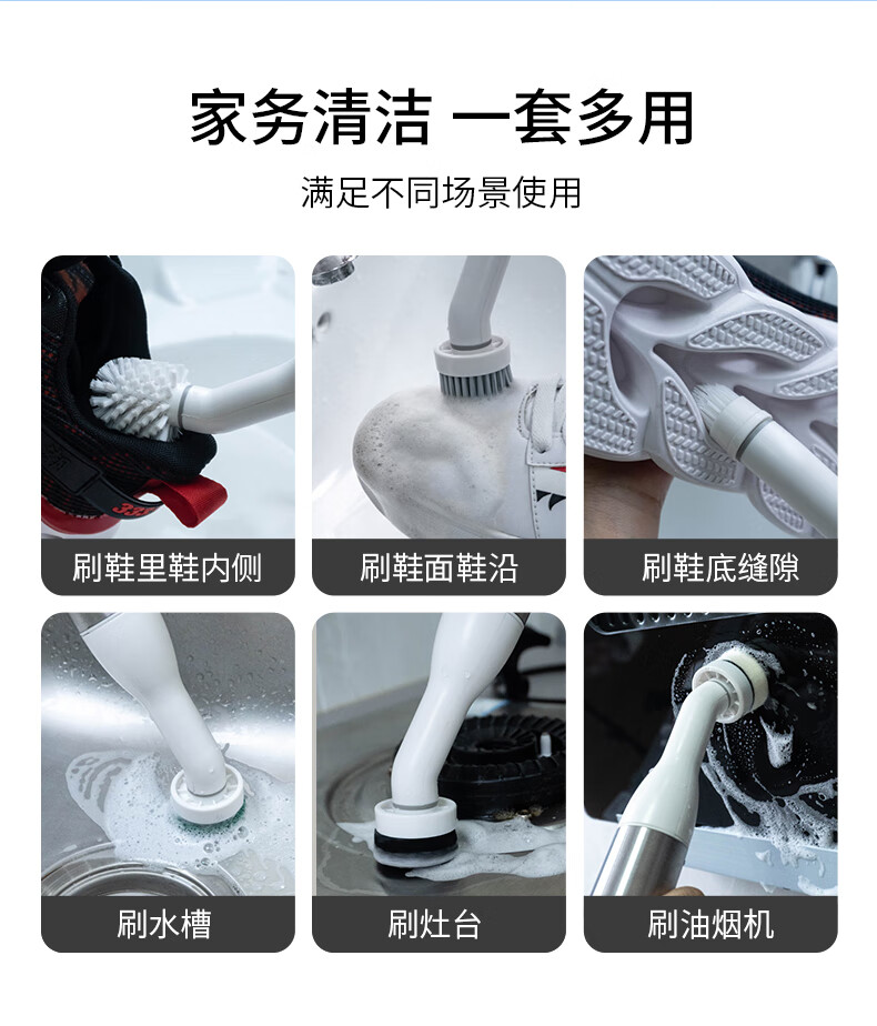 薇瑞格电动鞋刷洗鞋神器小白鞋清洁刷多功能刷鞋机懒人自动擦鞋刷鞋刷子 【干洗+湿洗】4刷头+清洁剂