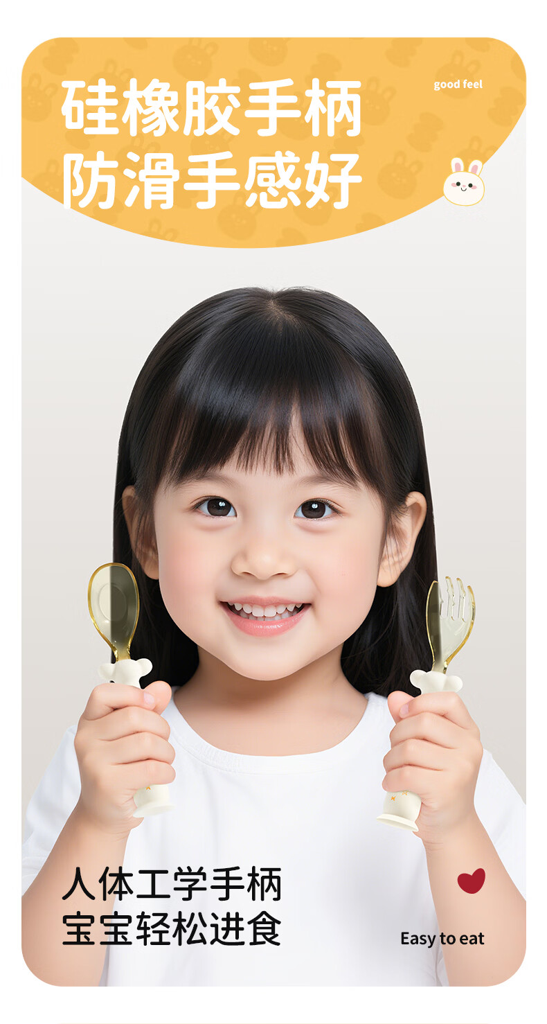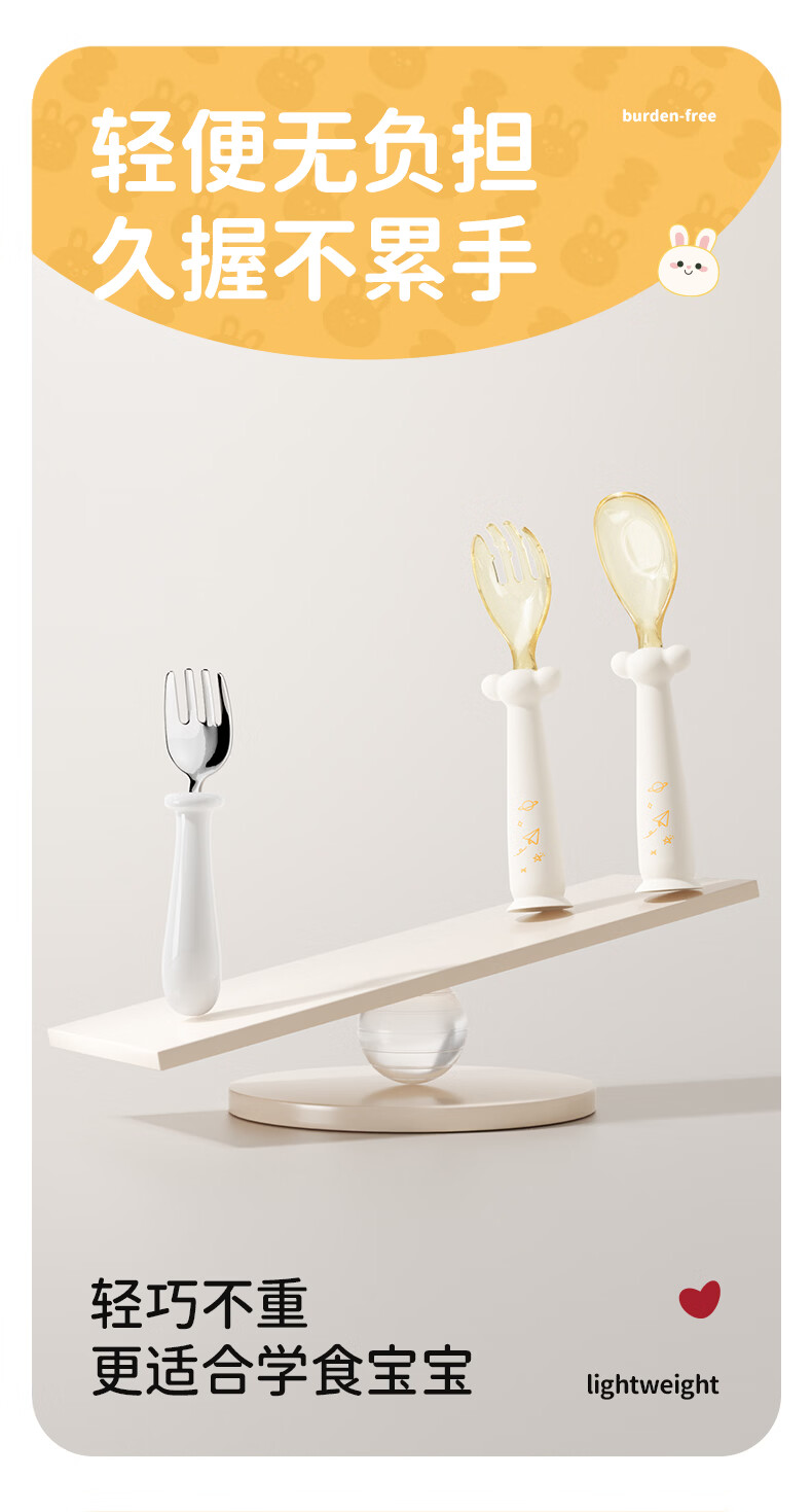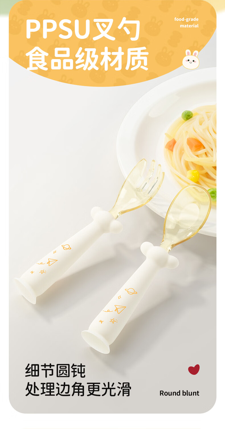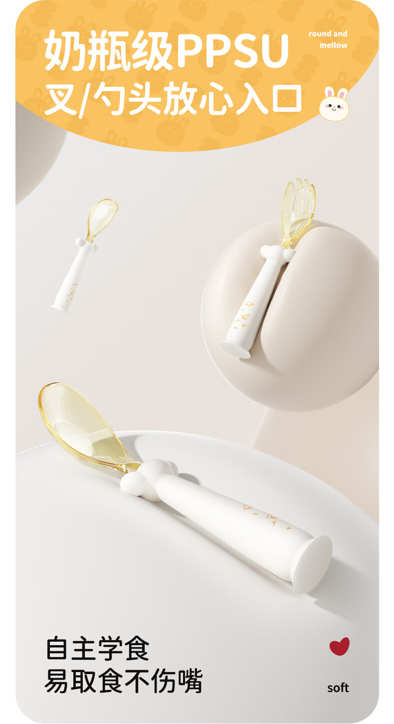 火火兔宝宝辅食勺婴儿学吃饭训练餐具套装食品级PPSU叉勺多功能