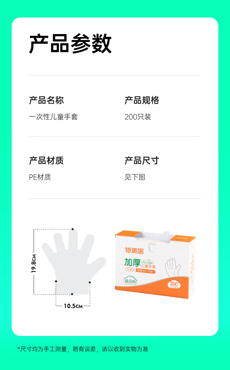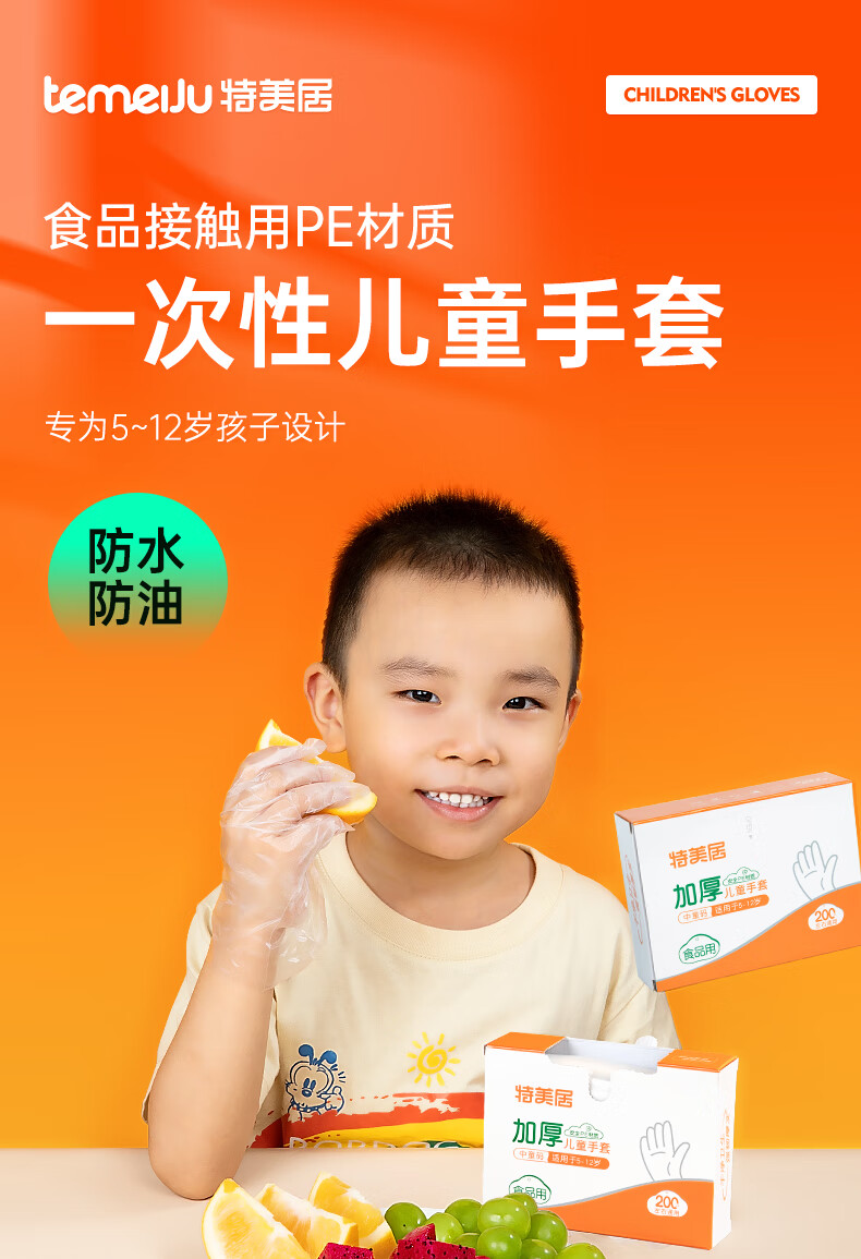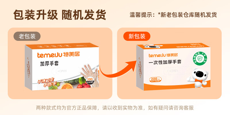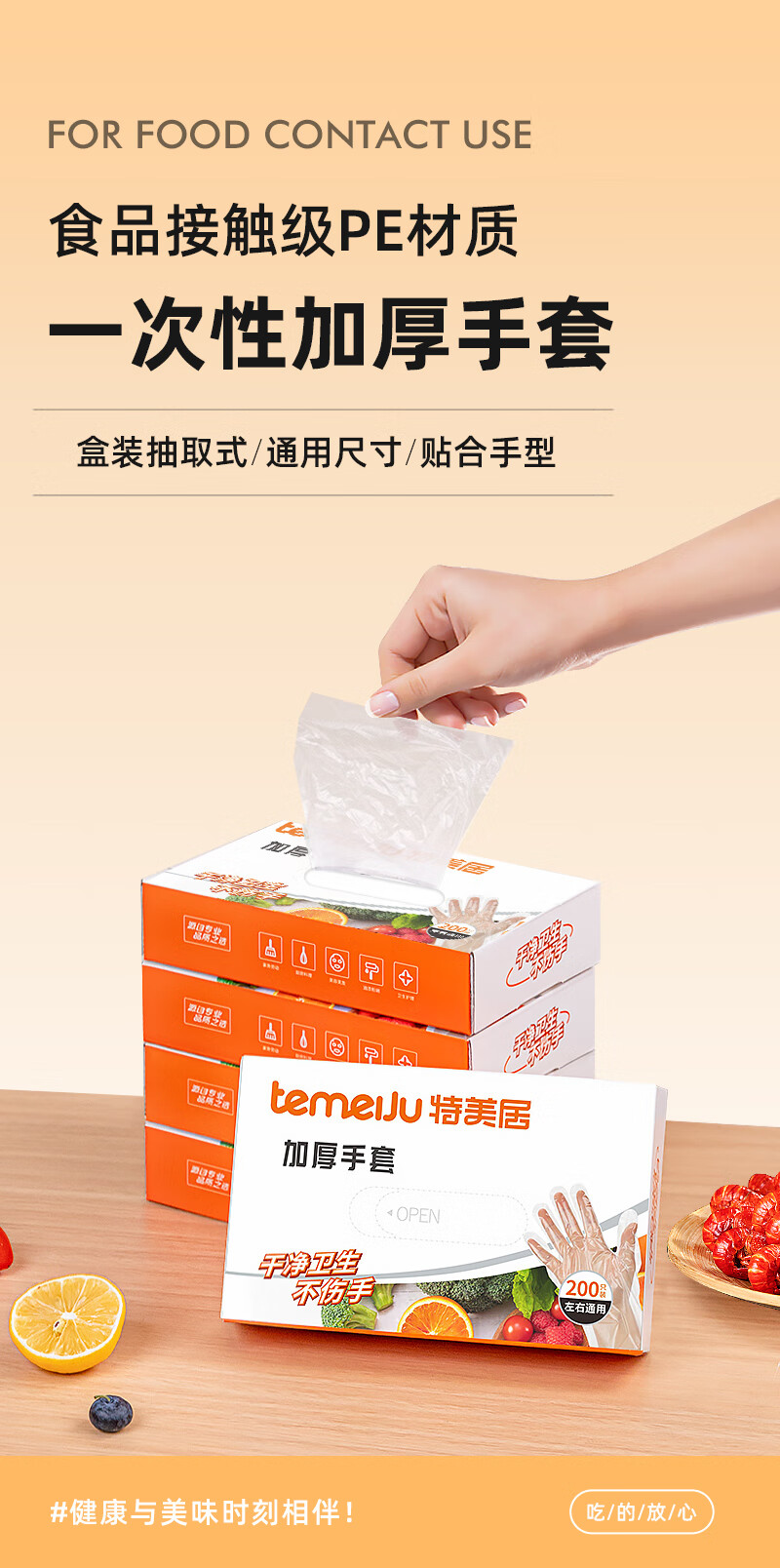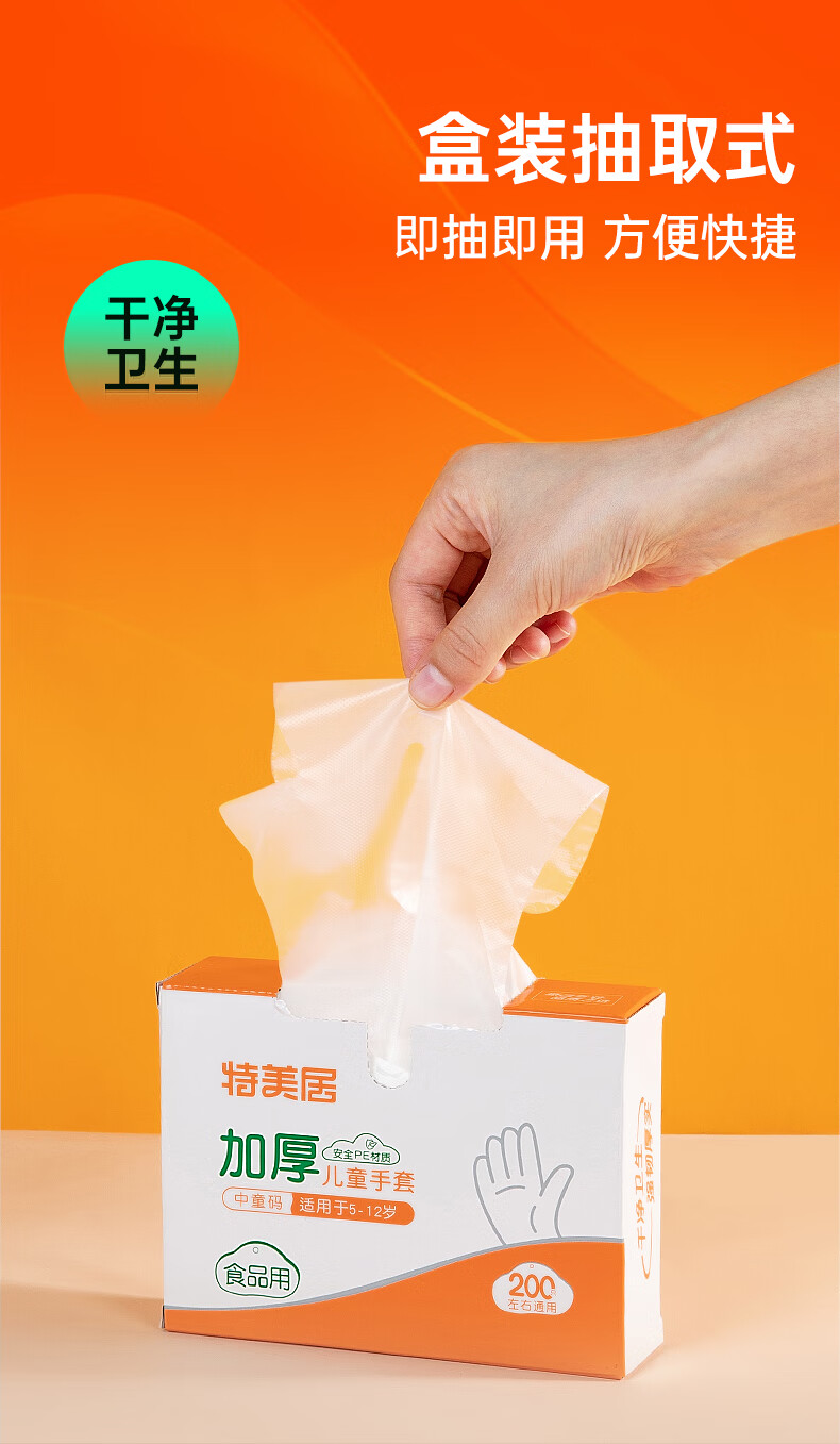 特美居(temeiju)一次性手套盒装抽取式PE塑料透明加厚耐磨防水防油卫生手套食品级 2盒PE手套共 400只装
