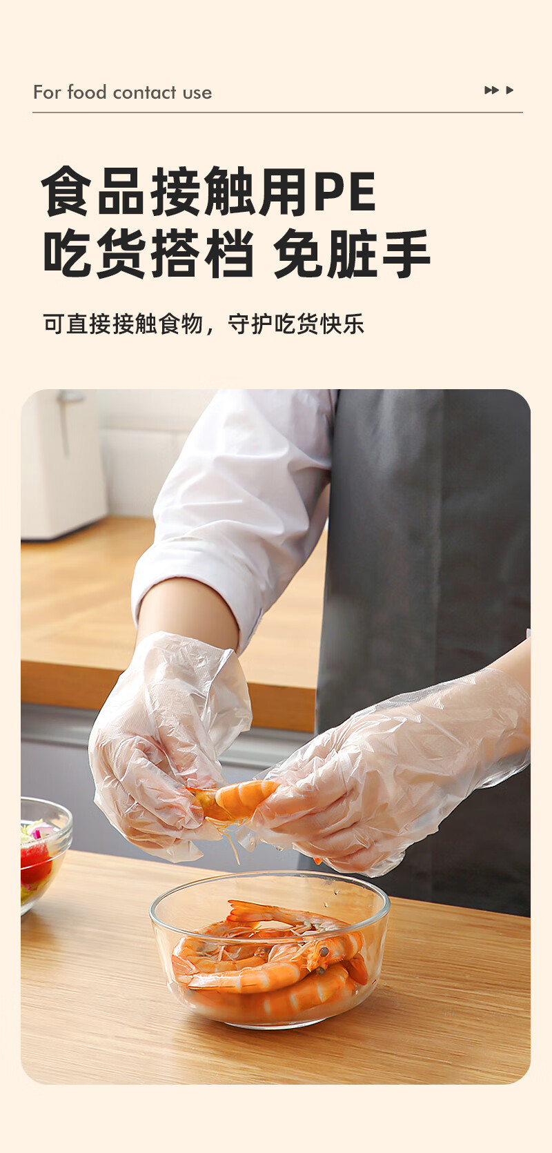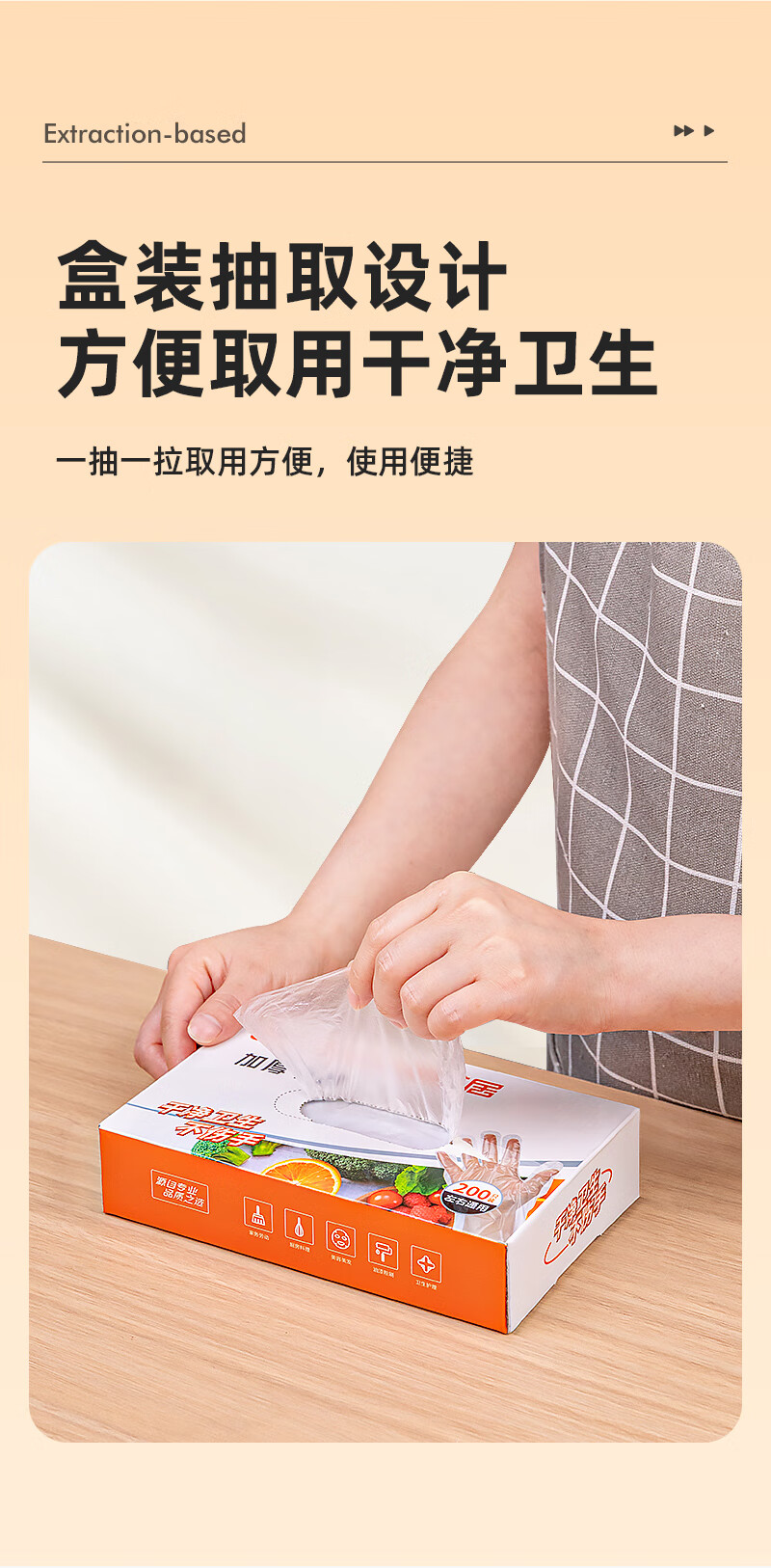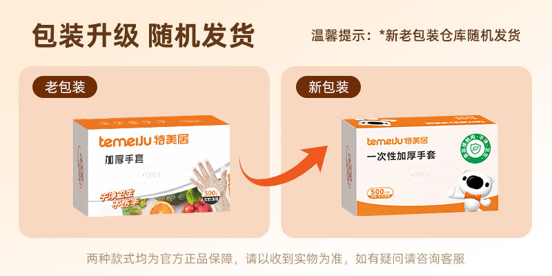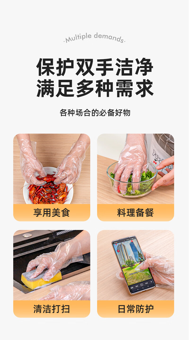 特美居(temeiju)一次性手套盒装抽取式PE塑料透明加厚耐磨防水防油卫生手套食品级 2盒PE手套共 400只装