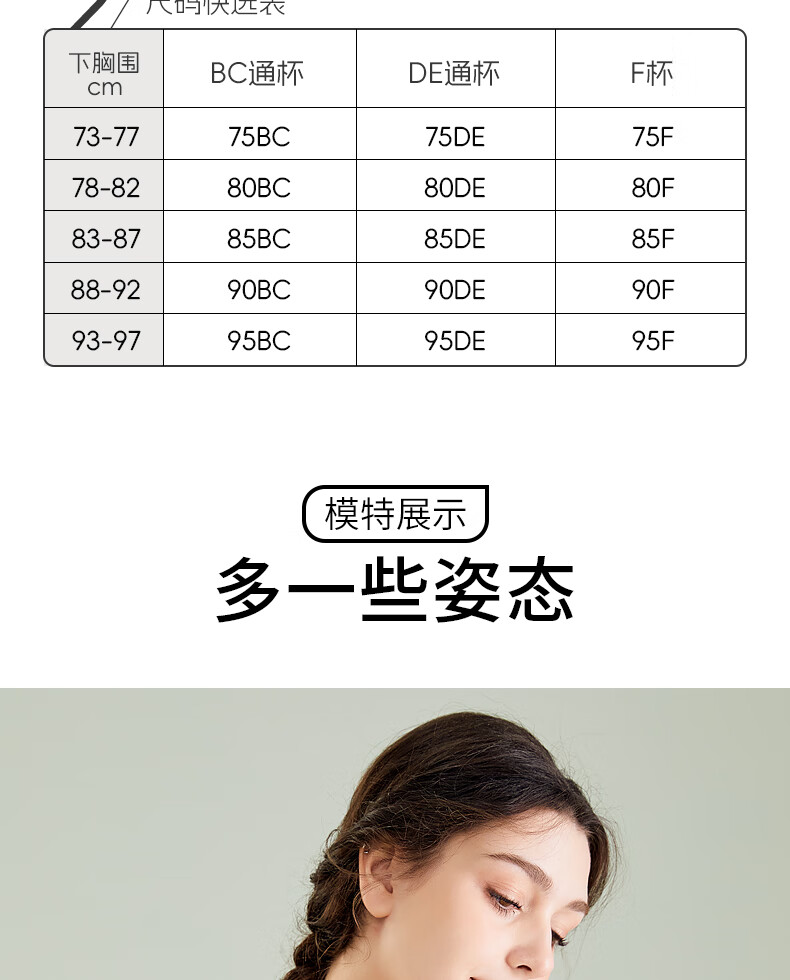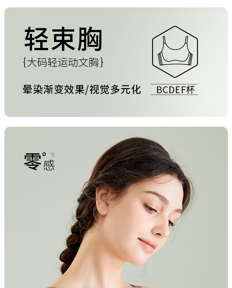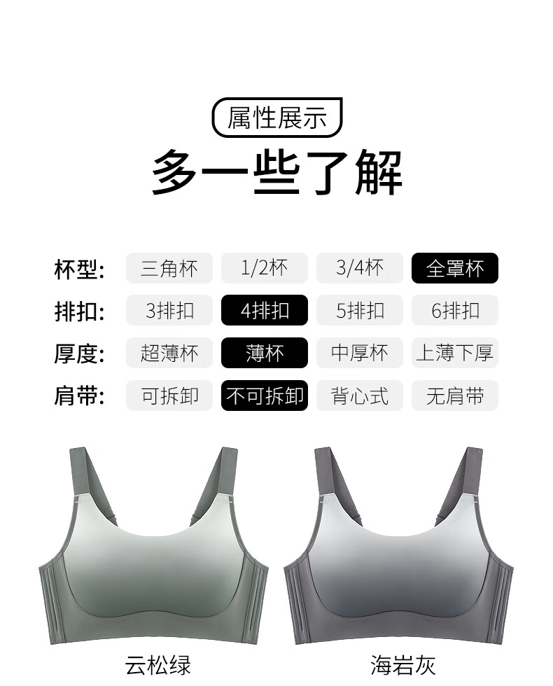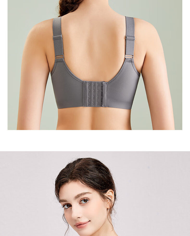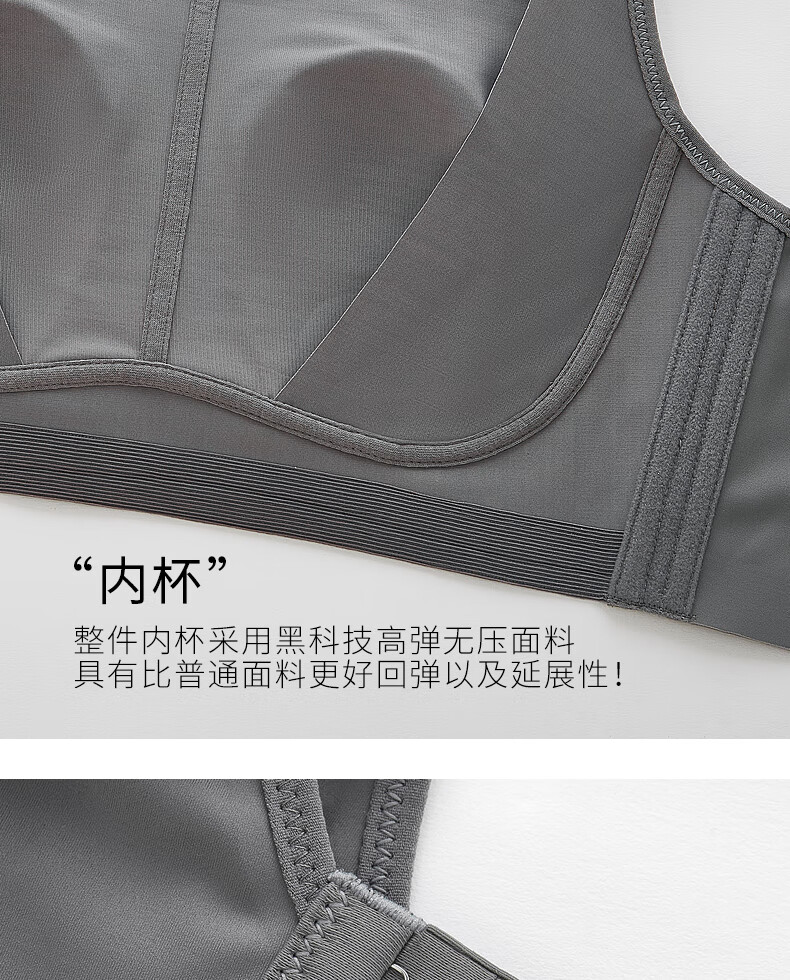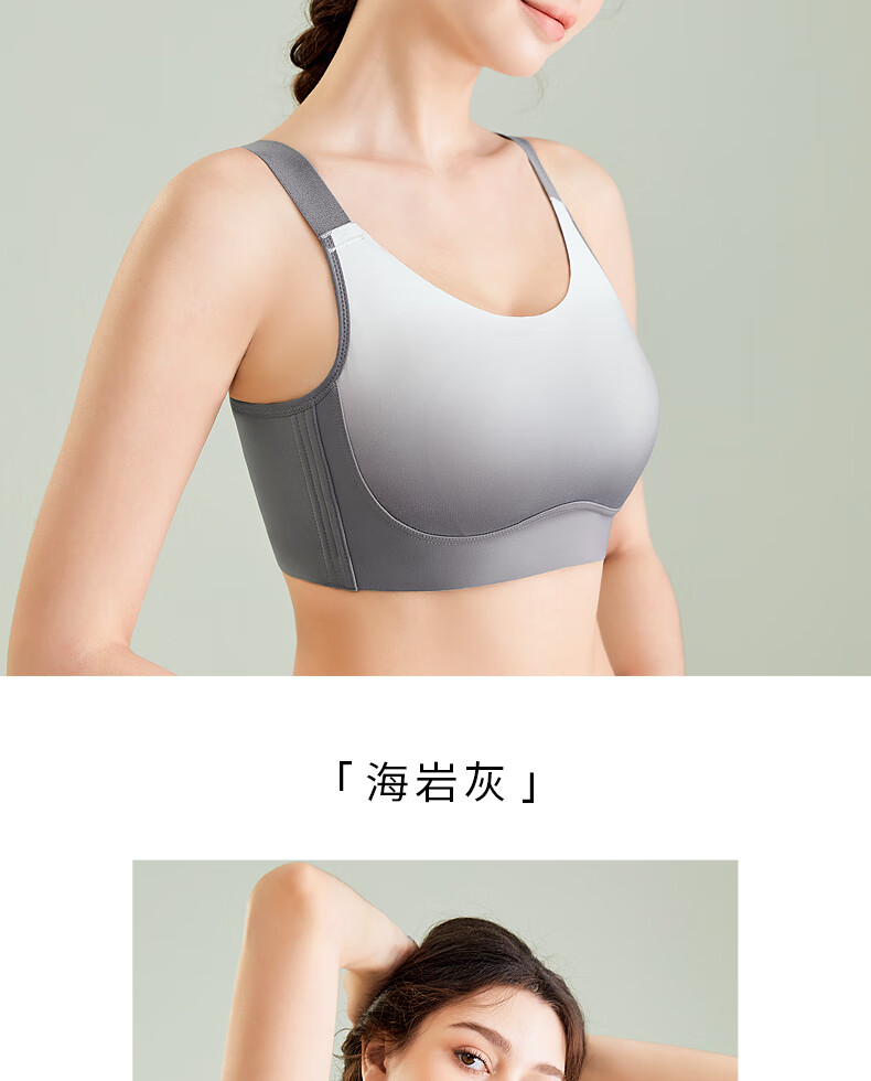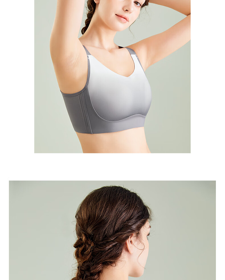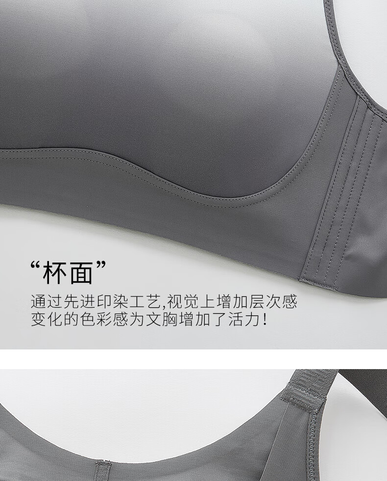 千奈美渐变色无痕无钢圈大码内衣提拉聚拢防下垂薄杯胸罩 海岩灰 85B C