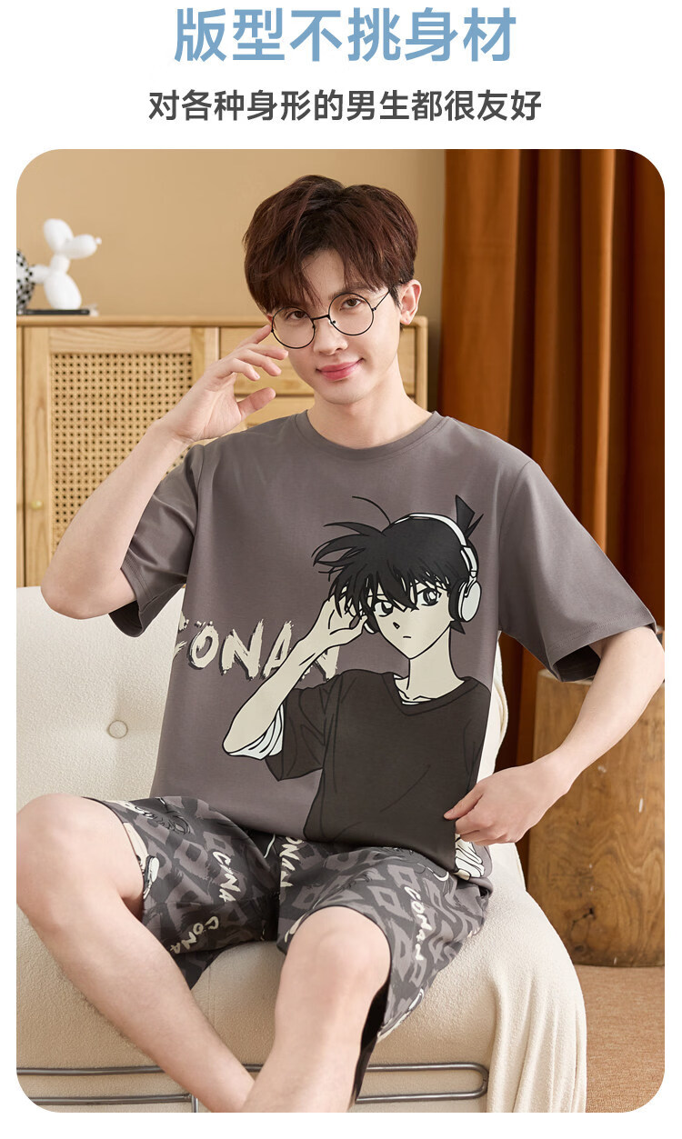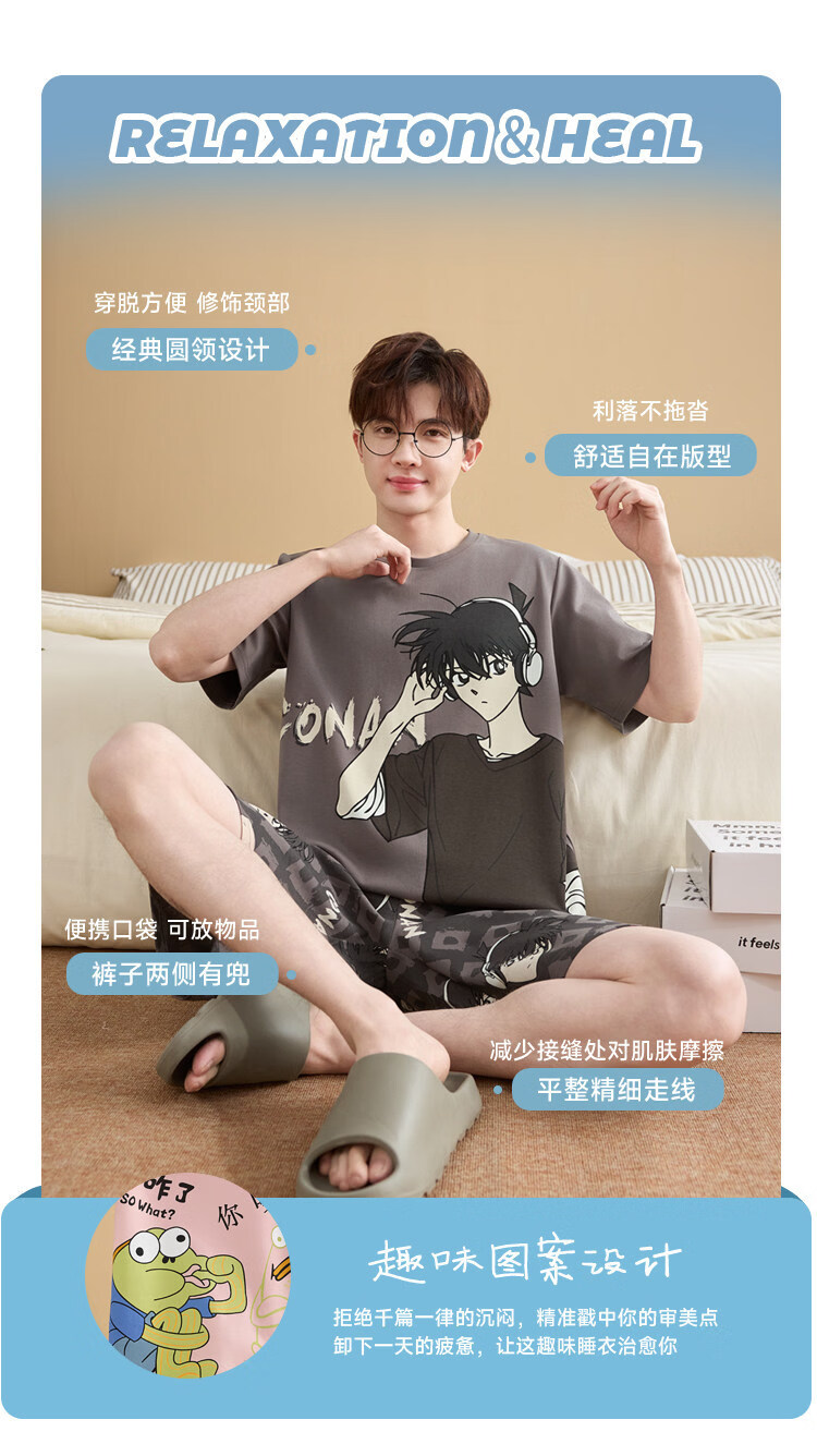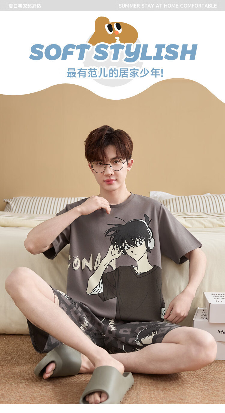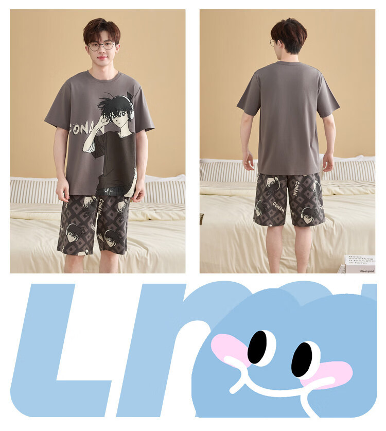 起润猴睡衣男士夏季纯棉短袖卡通学生青少年全棉薄款大码男孩家居服套装 LML1873# 5XL 标准【建议身高188CM左右,体重220-250斤】