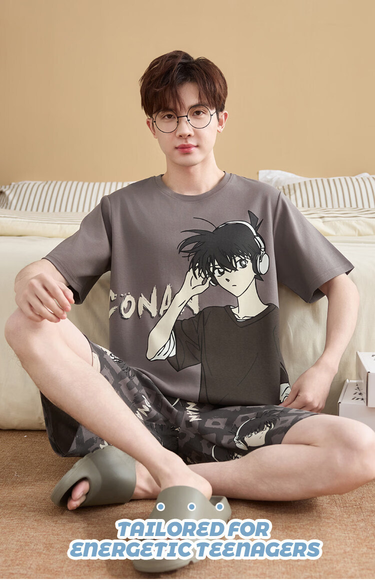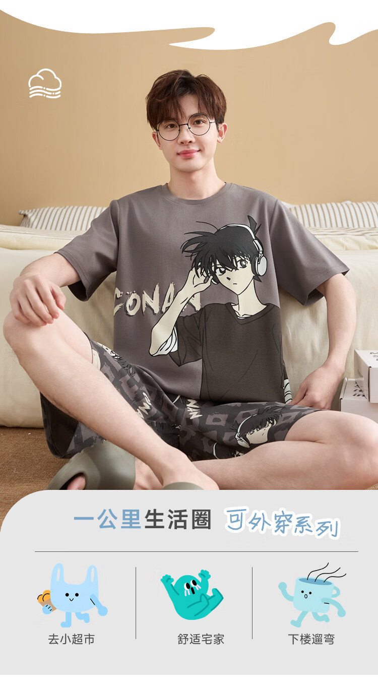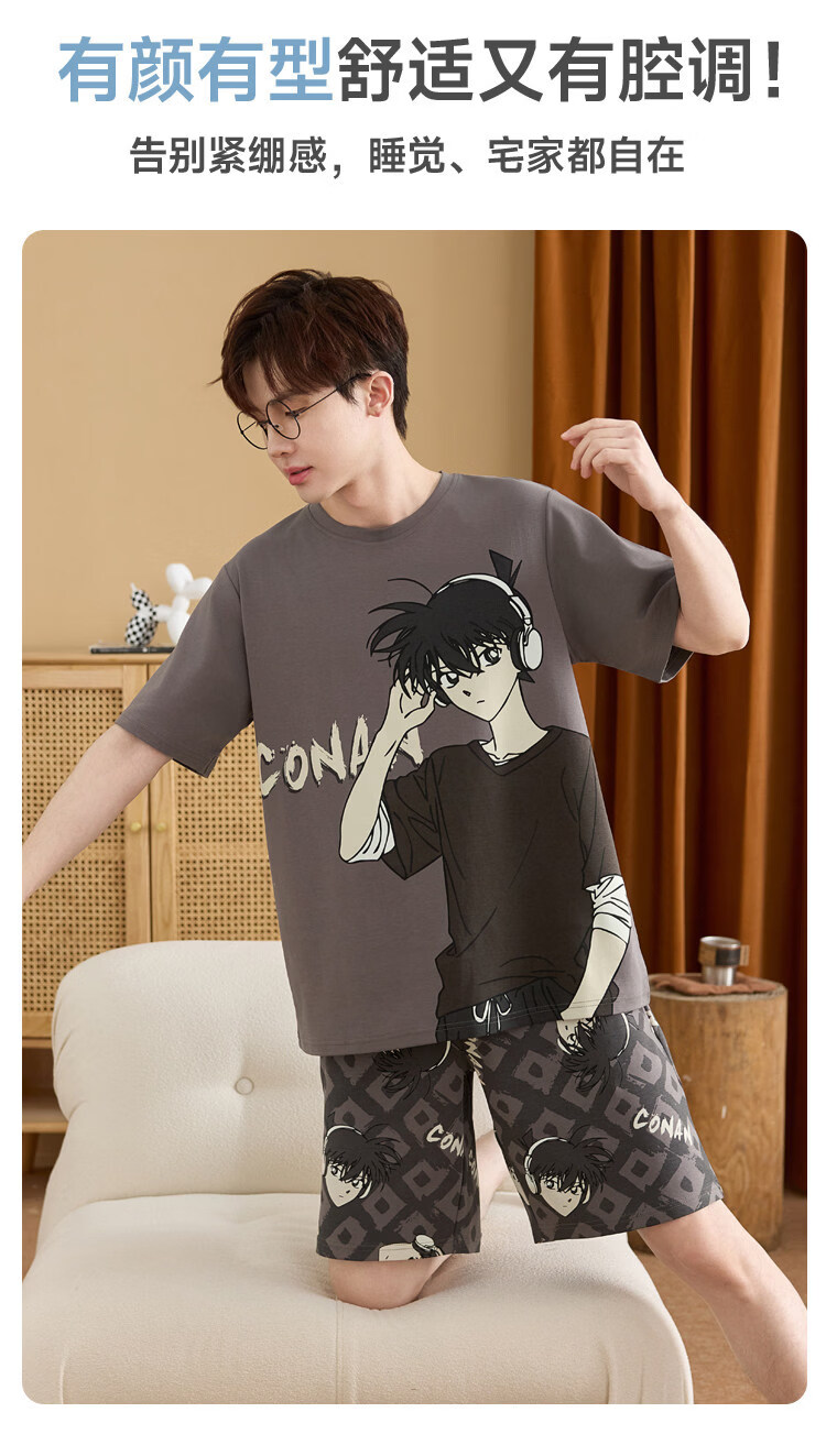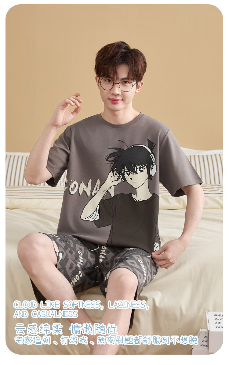 起润猴睡衣男士夏季纯棉短袖卡通学生青少年全棉薄款大码男孩家居服套装 LML1873# 5XL 标准【建议身高188CM左右,体重220-250斤】