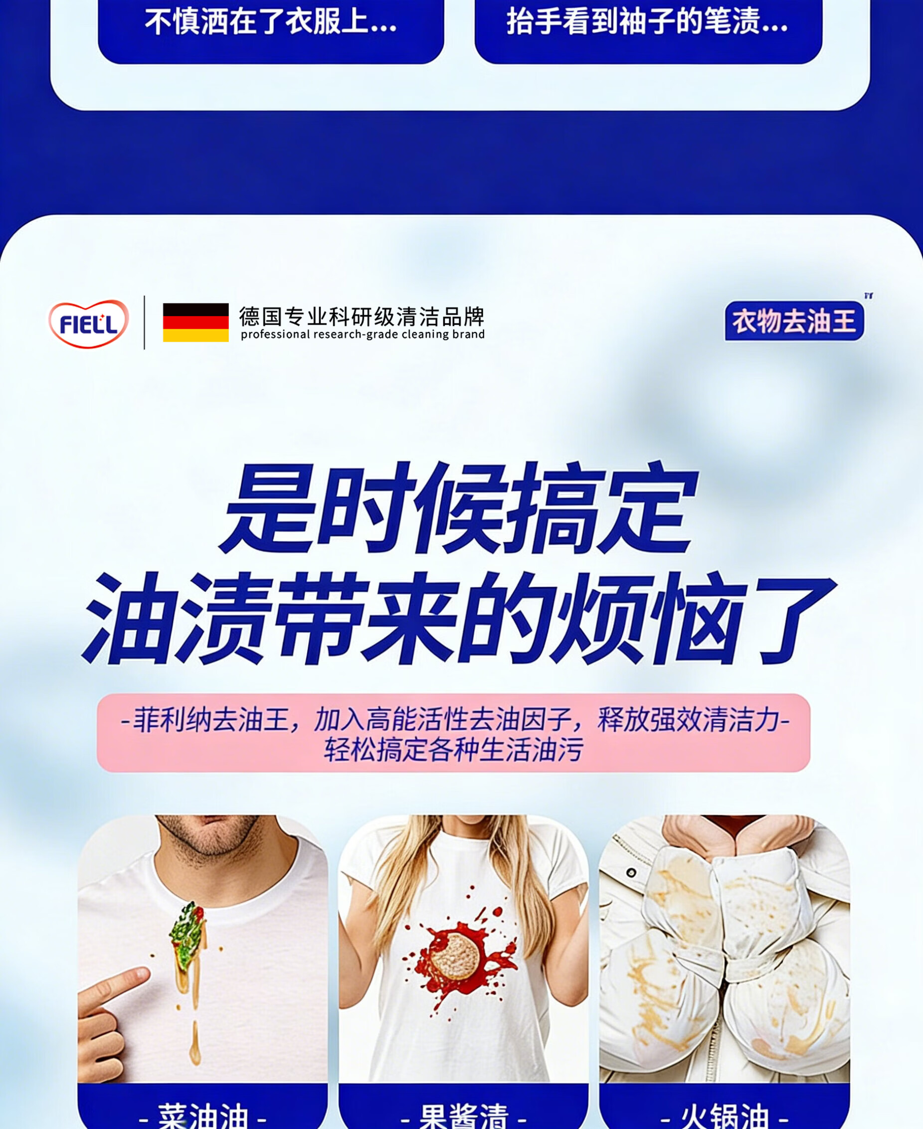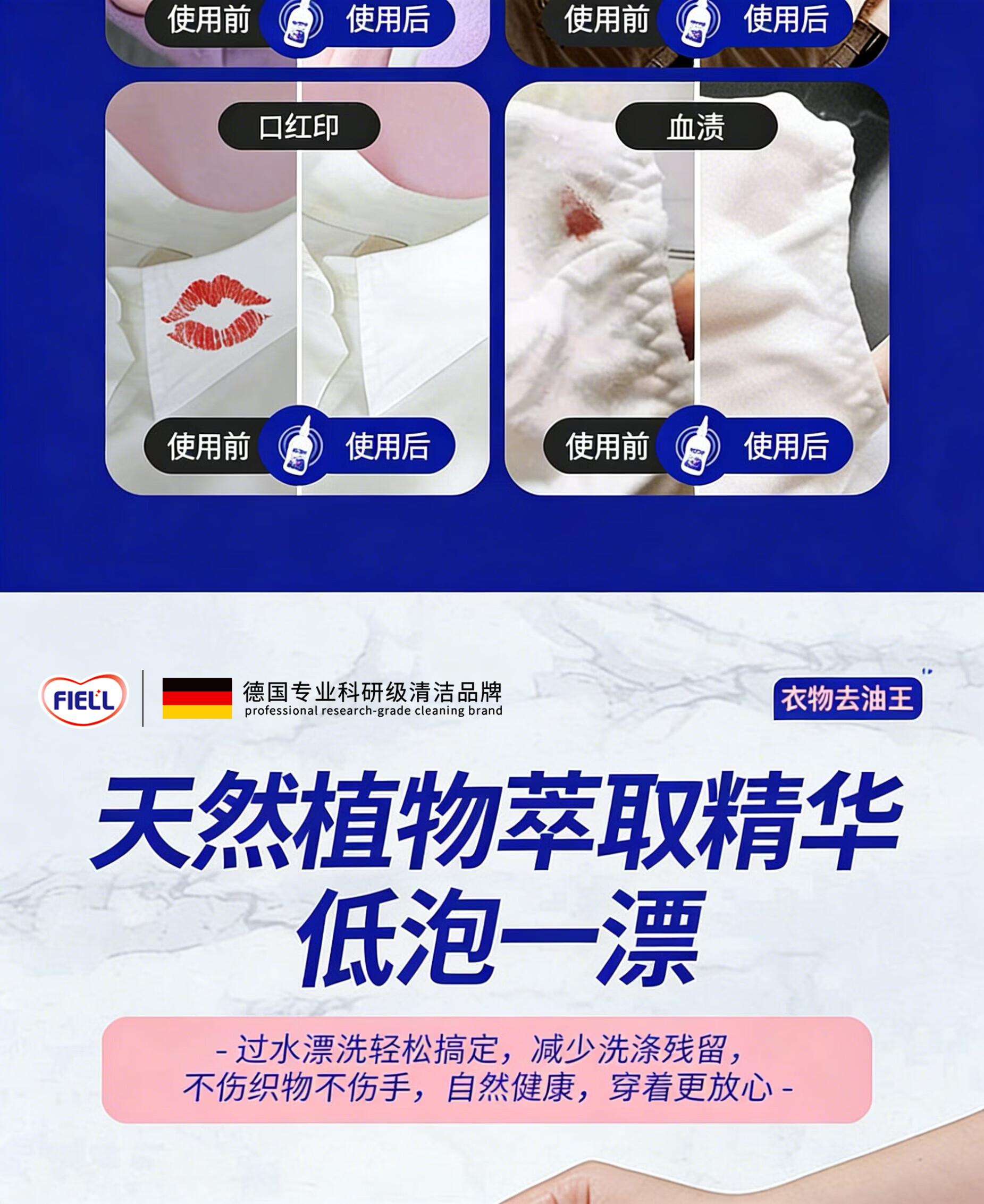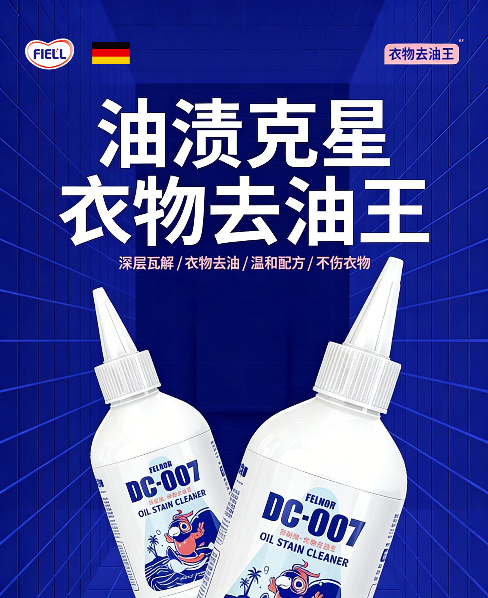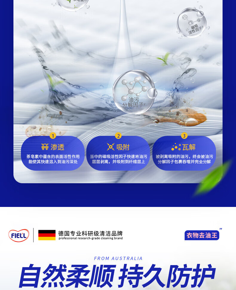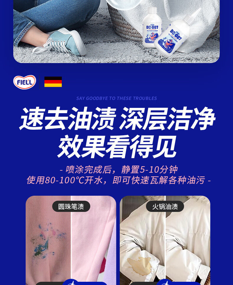 FIELL【德国】去油王衣服强力油渍清洁去黄污渍神器清洗剂顽固油迹清 200ml 5瓶【囤货钜惠装】强力渗透 快速洁净 温和配方 衣服去油渍污渍去油王衣物去污剂渗透剂清洁剂强力油渍