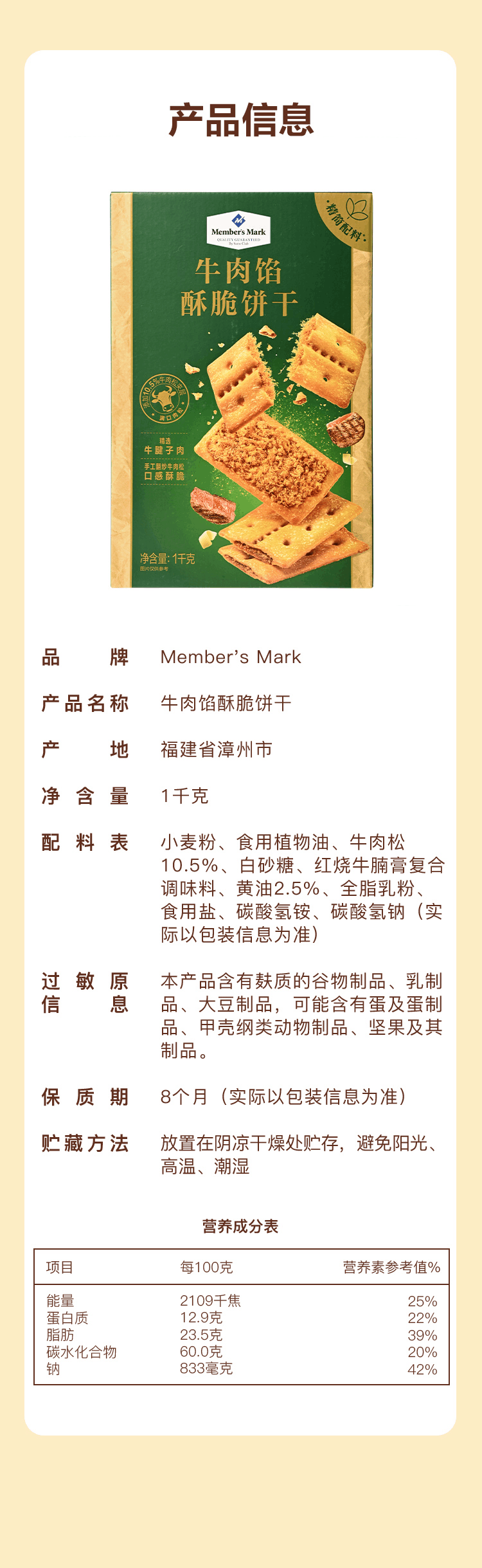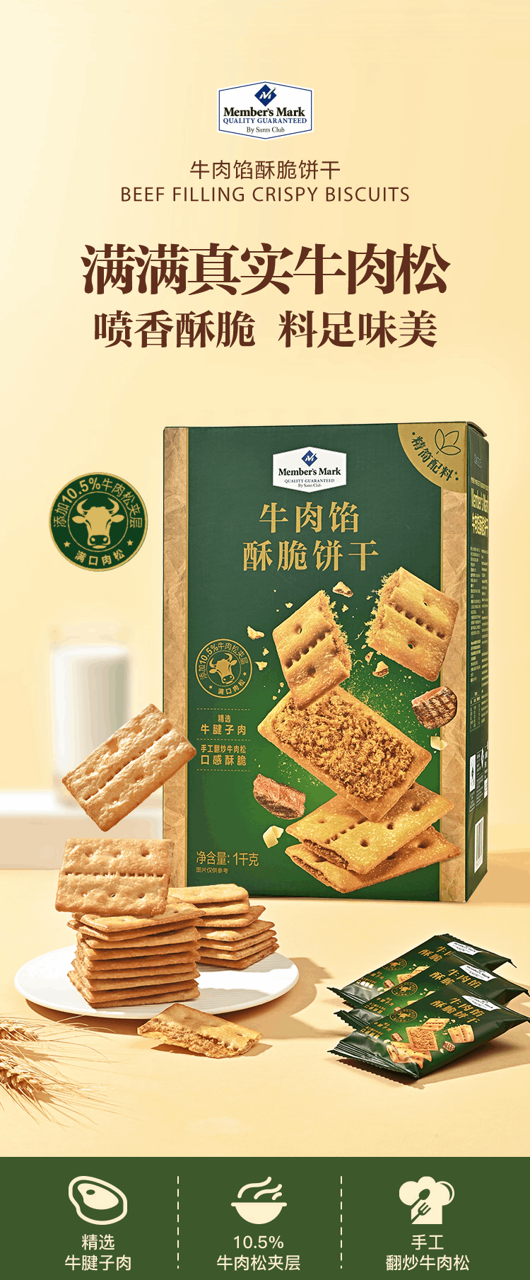 MEMBER'S MARK山姆代购会员超市牛肉馅酥脆饼干夹心韧性咸味饼干早餐办公室 整箱约78小包1kg【最划算】