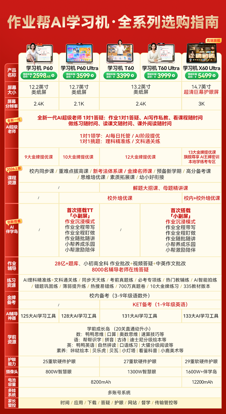作业帮学习机T60 8+256G 全新一代AI超级老师 1对1名师大招课平板电脑小学到高中学练辅导家教