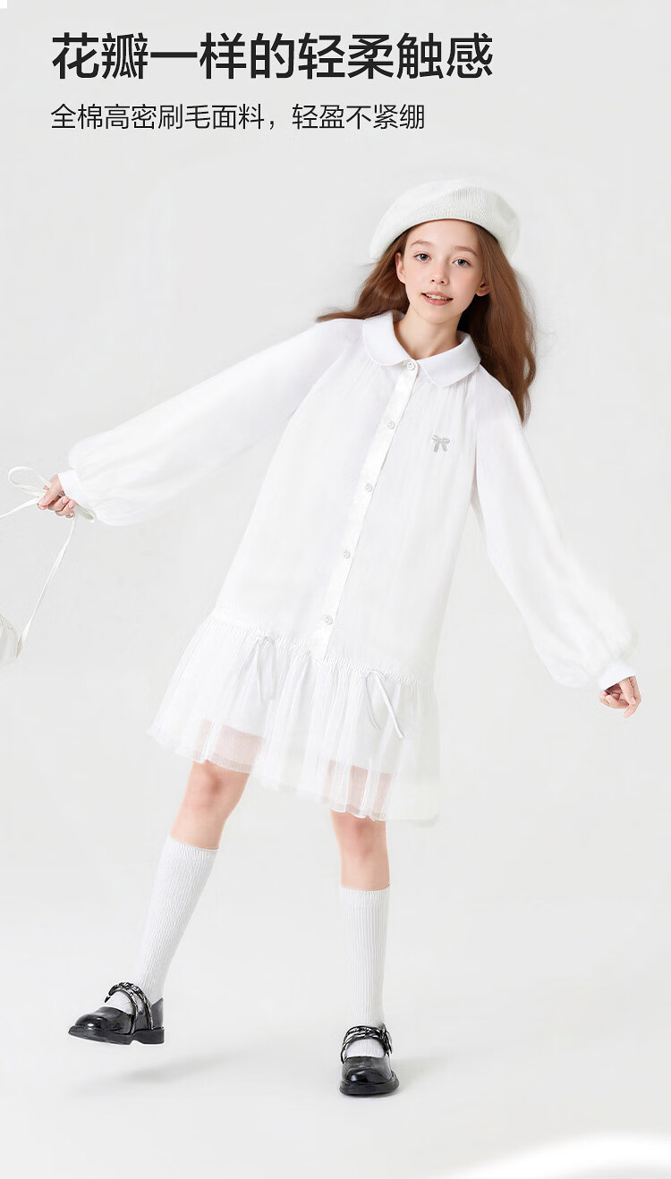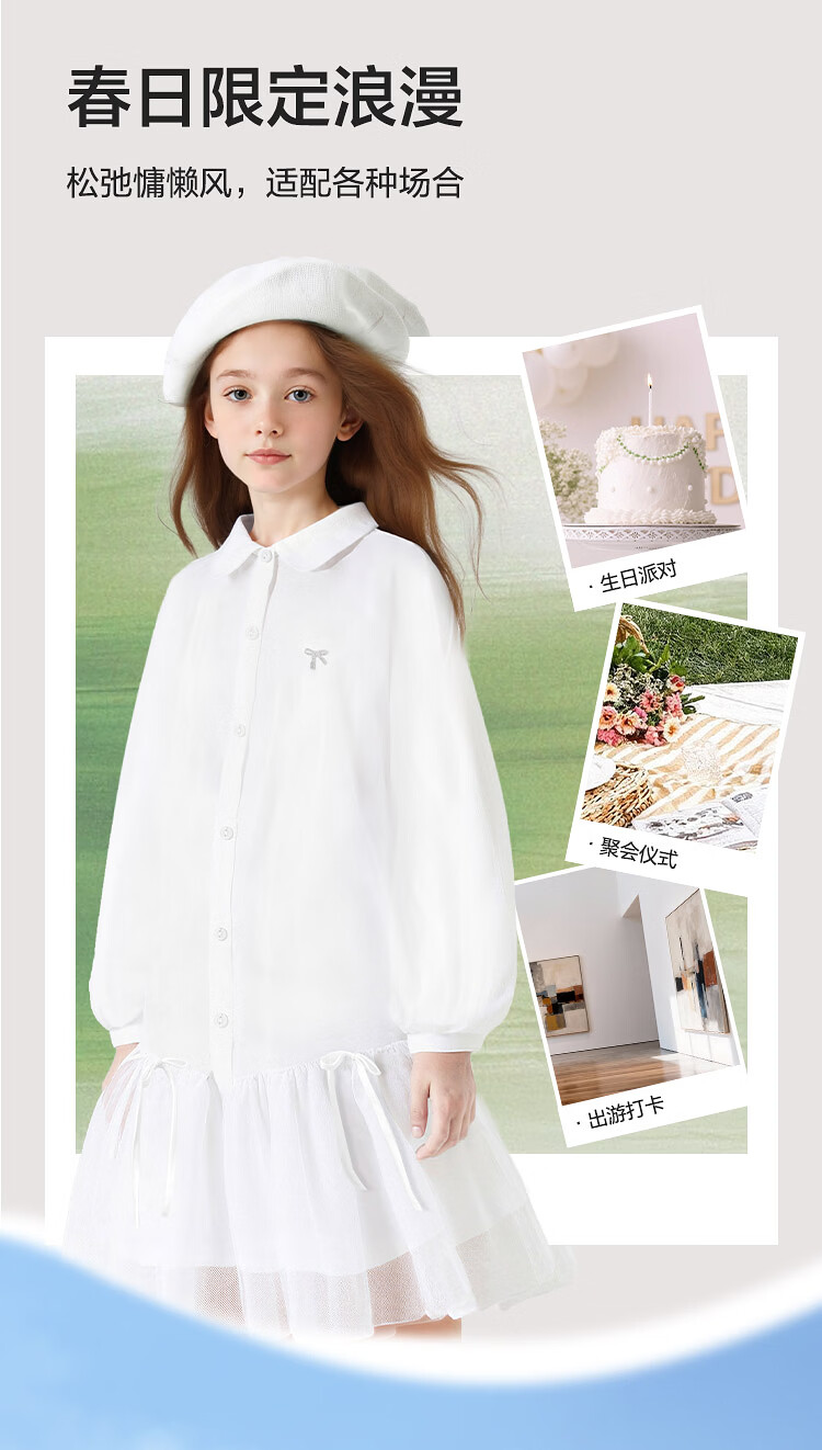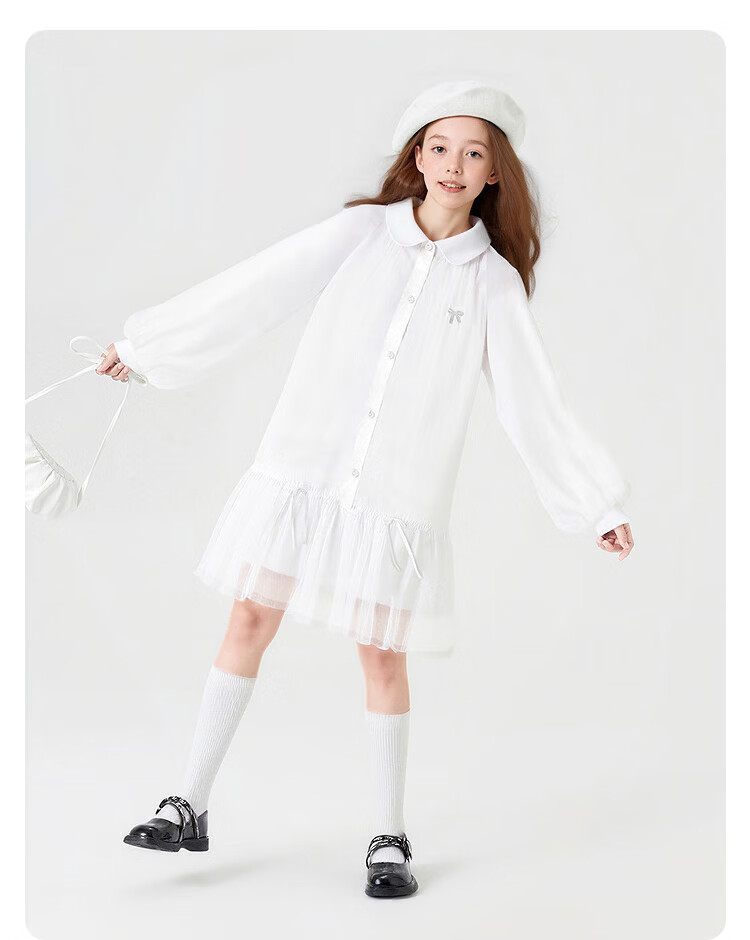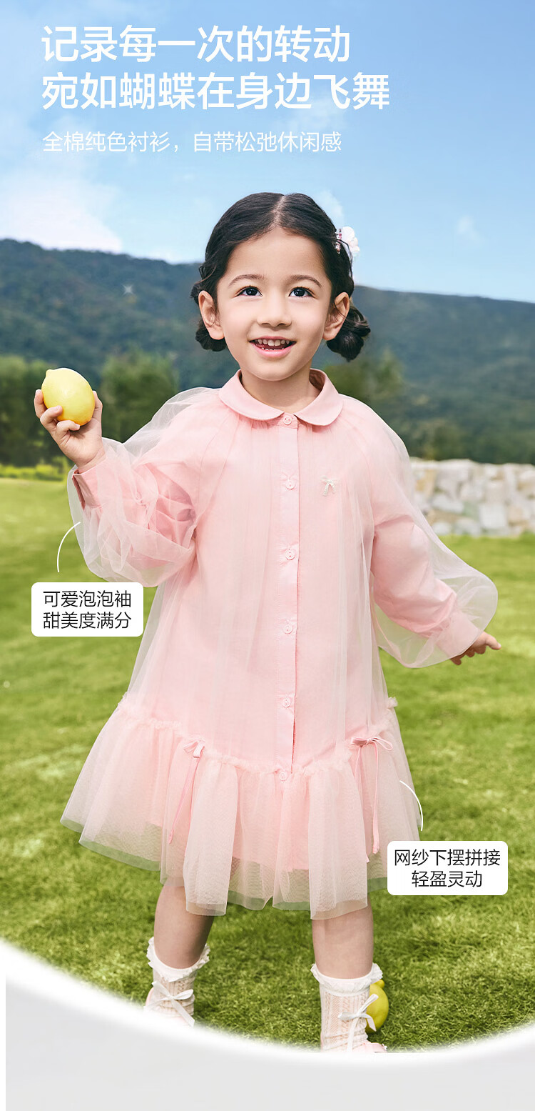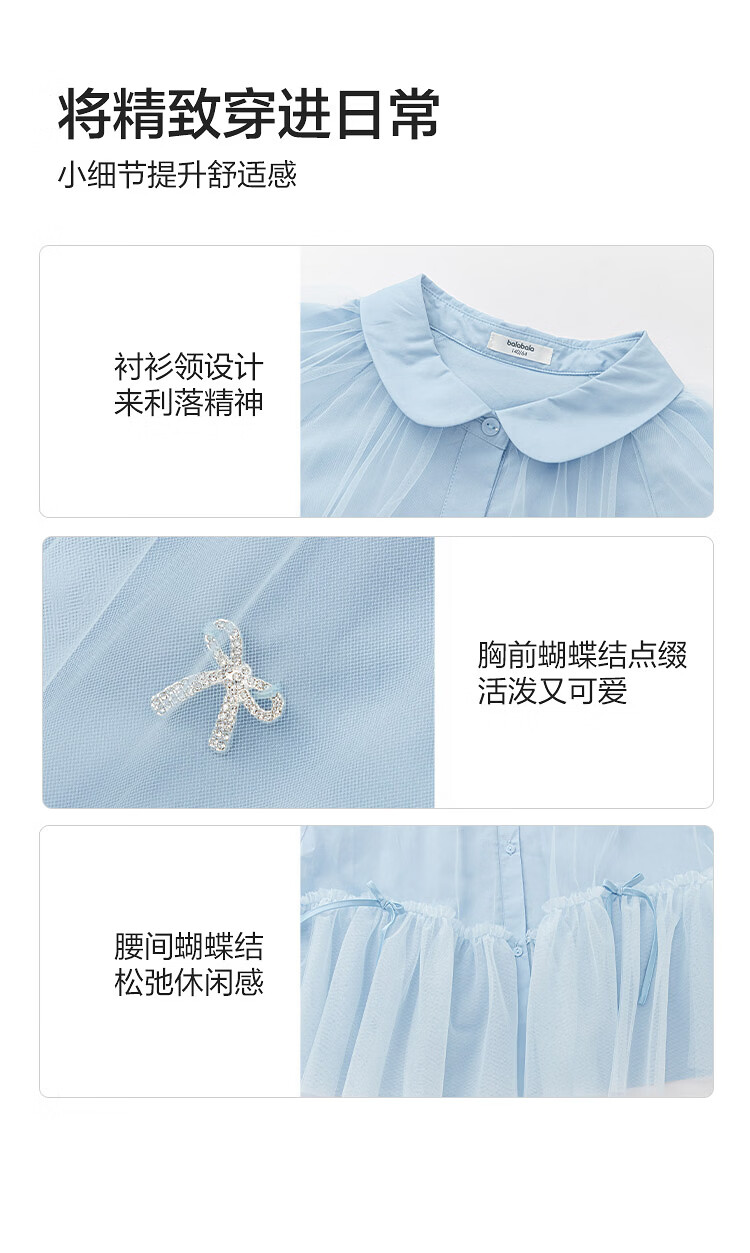 巴拉巴拉【balaOne】童装儿童连衣裙女童2026新款春装衬衫网纱裙短裙