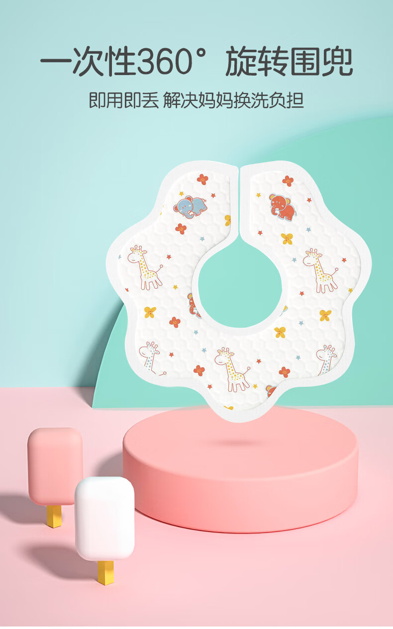 好伊贝(HOY BELL)婴儿一次性围兜30片360度可旋转宝宝围嘴口水巾免洗饭兜独立包装