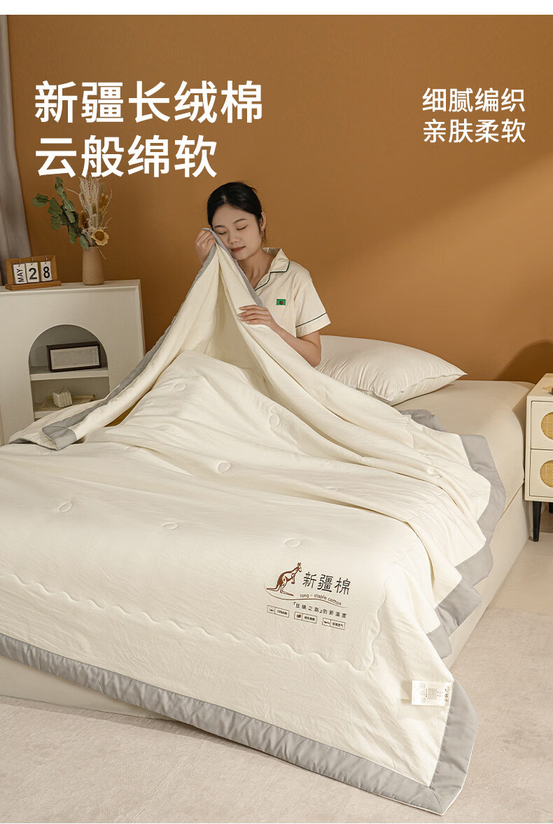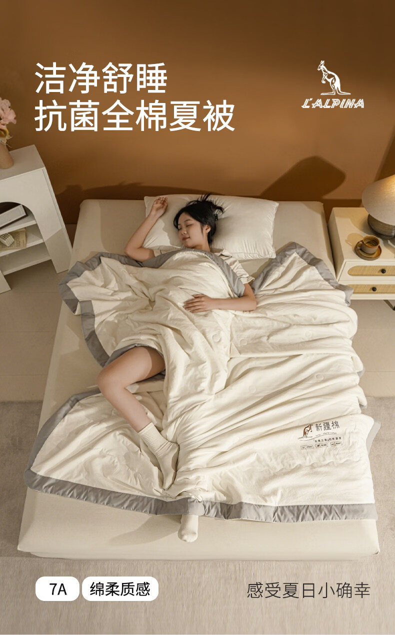 阿尔皮纳袋鼠夏凉被纯棉全棉抗菌可机洗夏季单人棉花夏被空调被子四季宿舍被褥 LALPINA专款_袋鼠白 儿童夏凉被:110x150cm【100%新疆棉花填充更柔软】