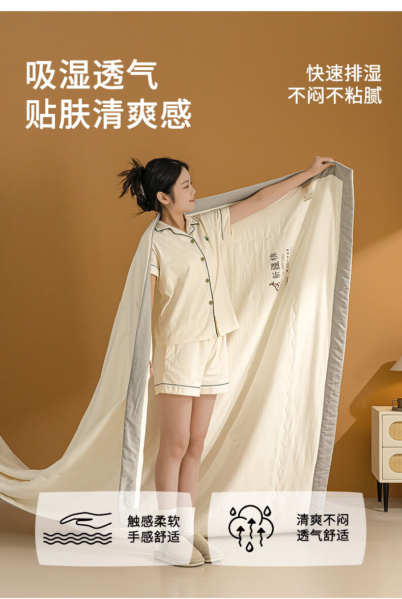 阿尔皮纳袋鼠A类提花泡泡纱大豆纤维夏被可机洗水洗空调被夏凉被单双人薄被子 奶油白【超柔大提花透气不压身】 110*150cm单夏被