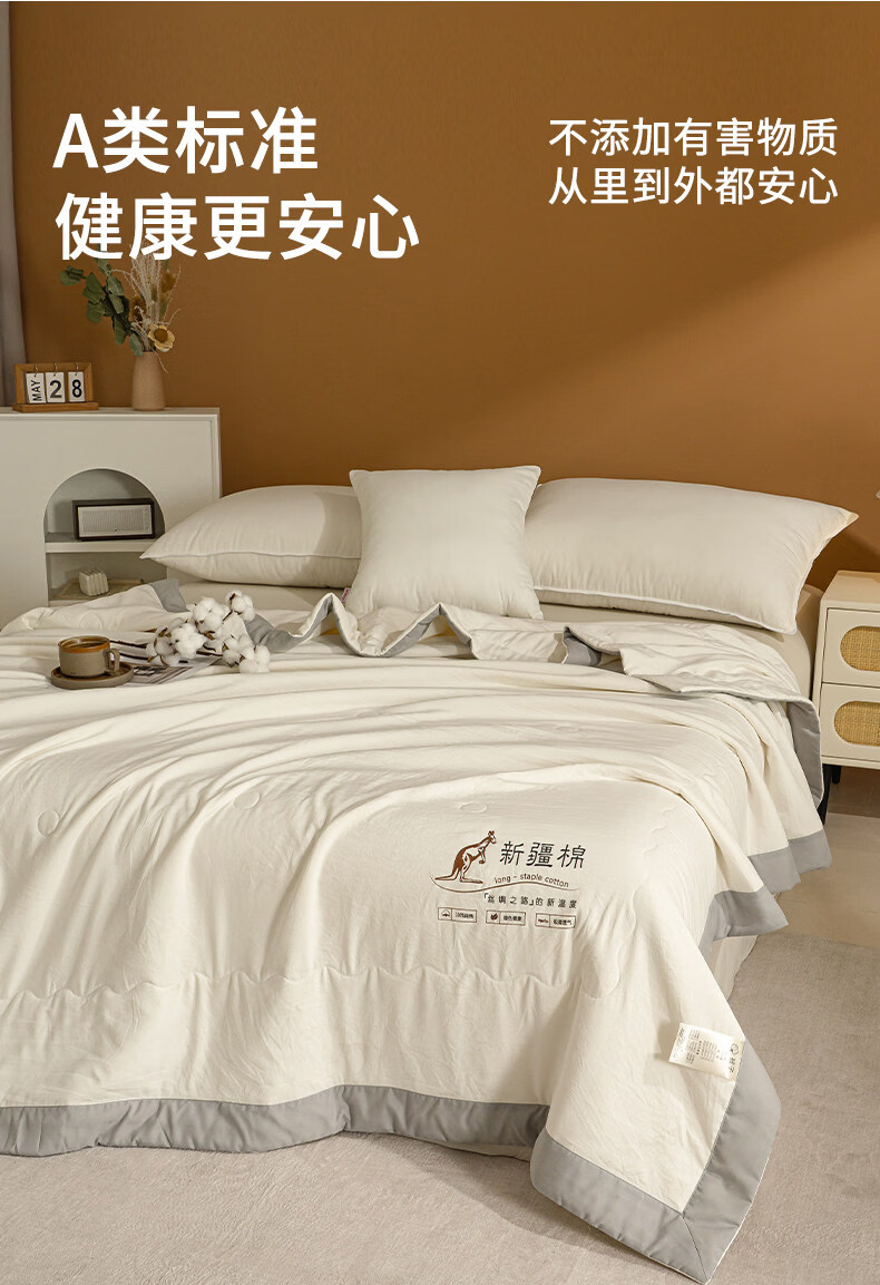 阿尔皮纳袋鼠A类牛奶针织棉夏被空调被夏天薄款被子被芯单双人学生宿舍夏凉被 牛奶白【超柔针织棉面料】 120*150cm儿夏被