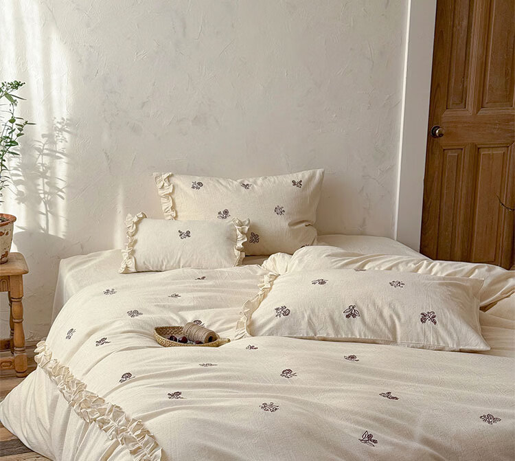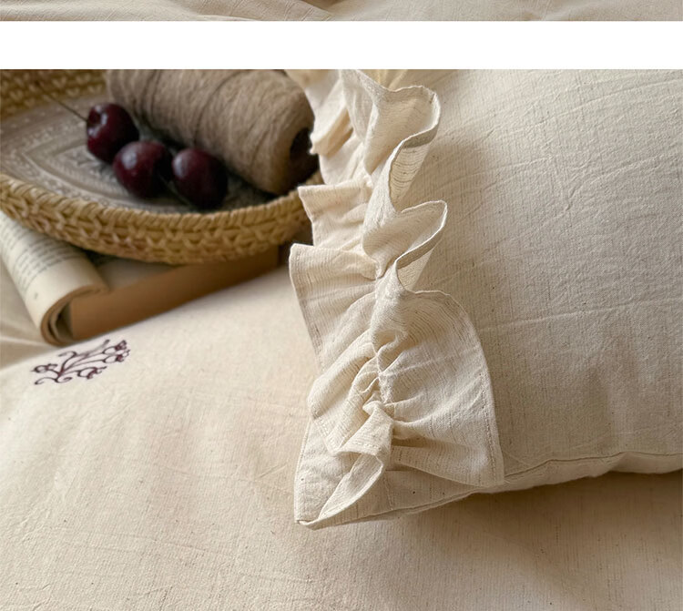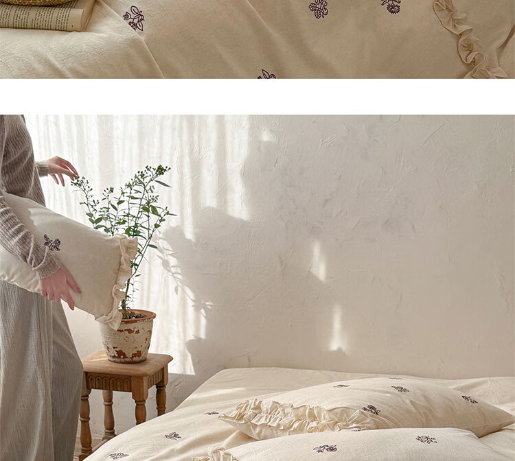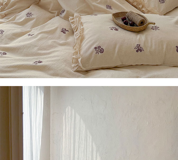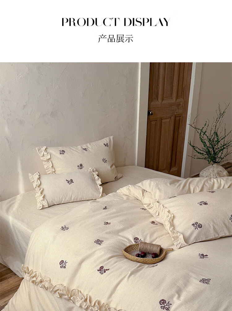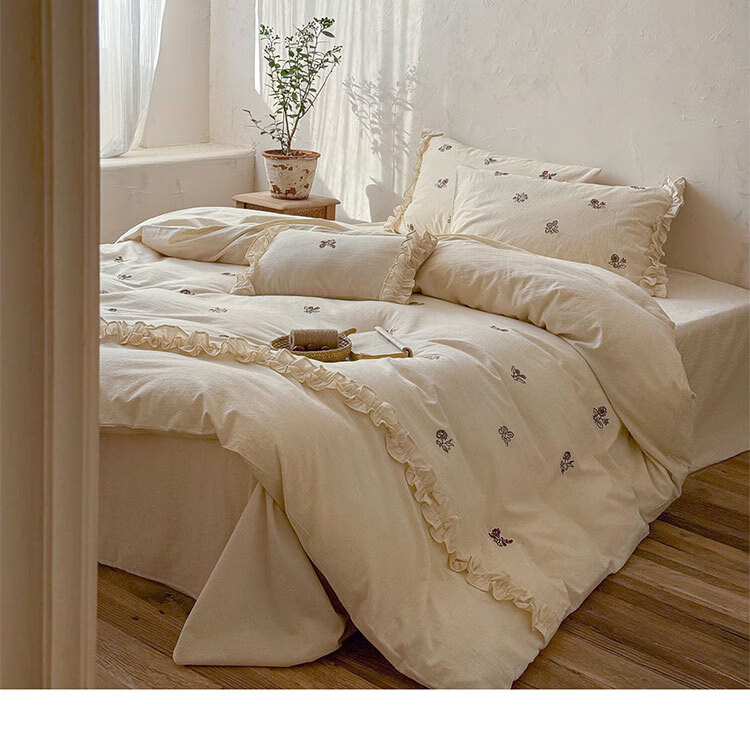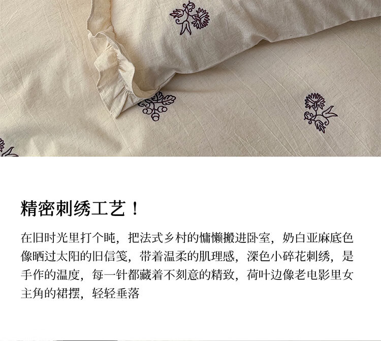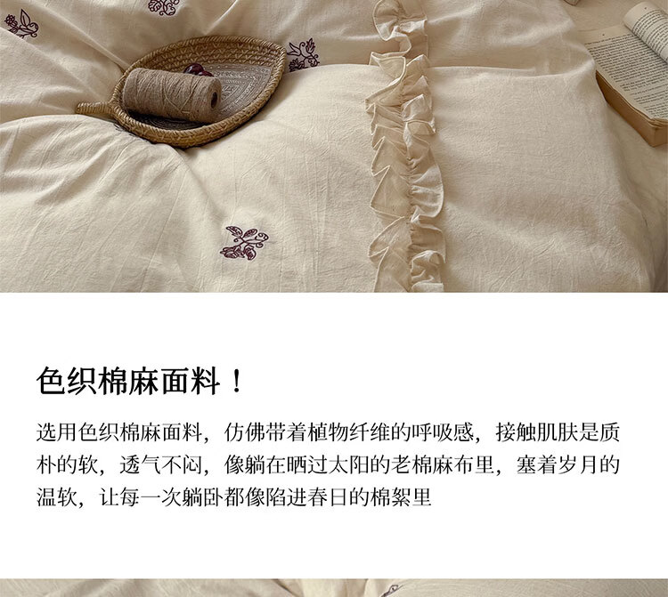 ROLAND LIVE春夏裸睡透气色织棉麻刺绣四件套简约风被套床单家用宿舍三件套 LB 色织棉麻套件-归野 1.2米床 床单款 【被套150*200cm】