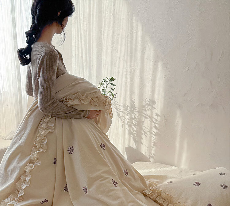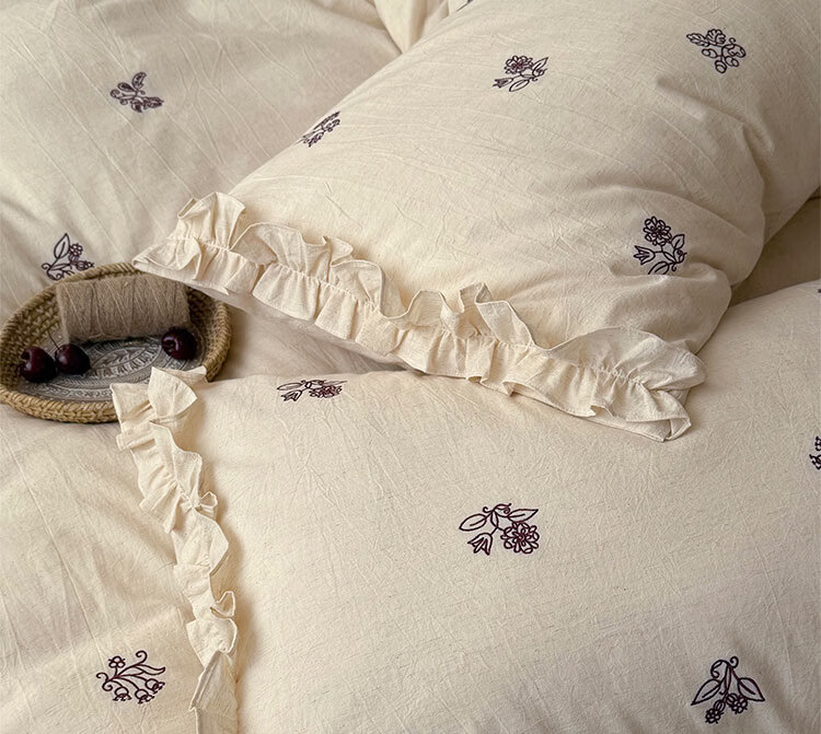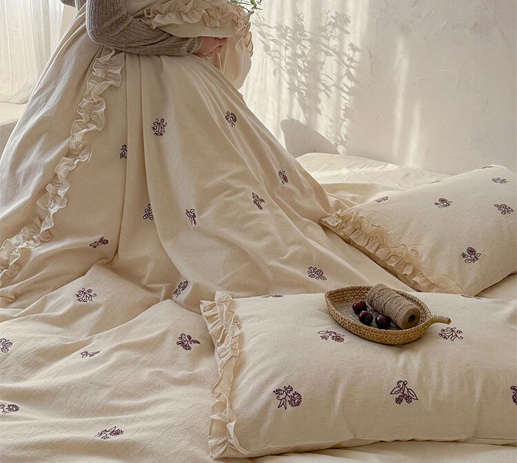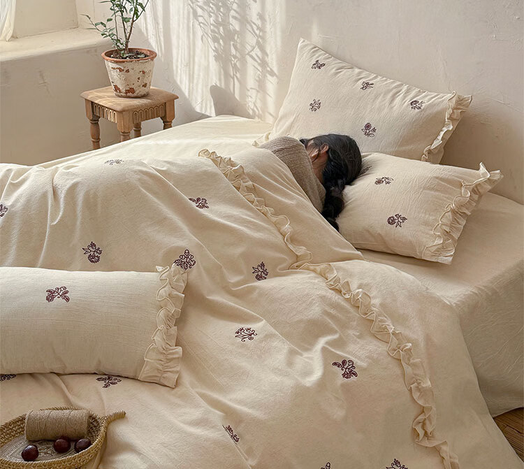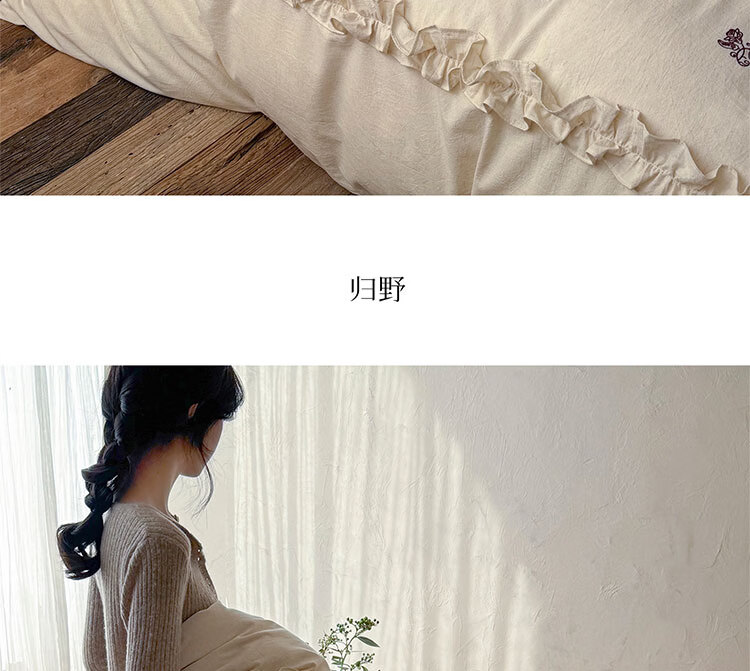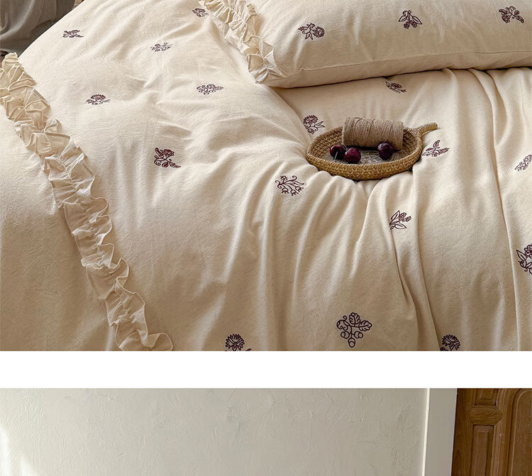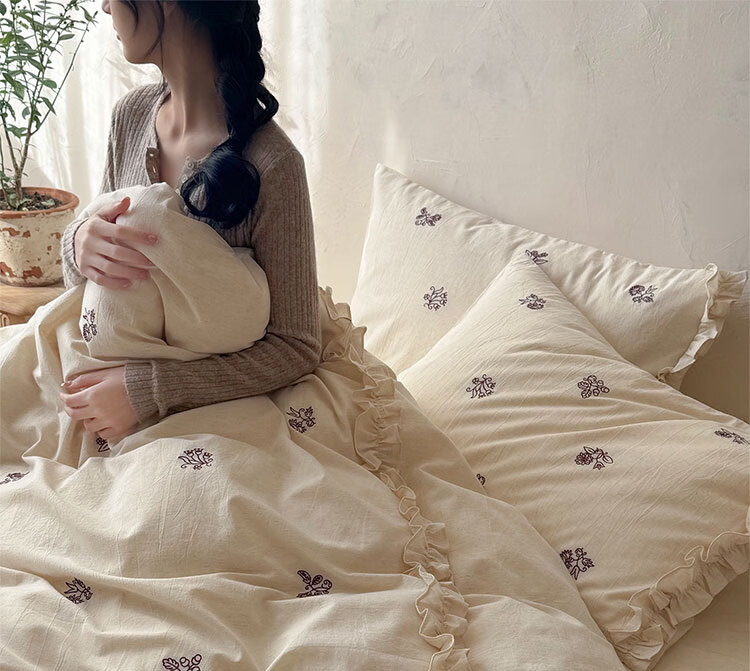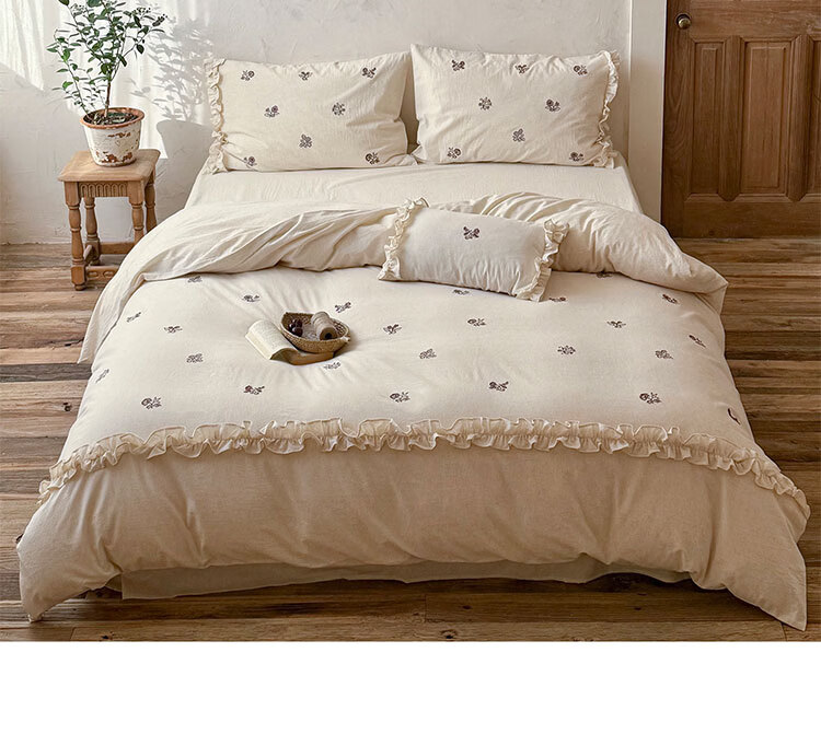 ROLAND LIVE春夏裸睡透气色织棉麻刺绣四件套简约风被套床单家用宿舍三件套 LB 色织棉麻套件-归野 1.2米床 床单款 【被套150*200cm】