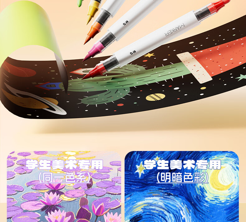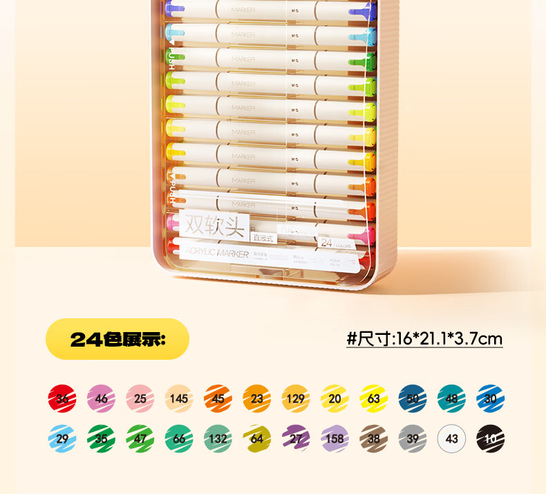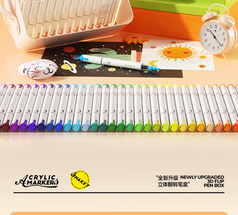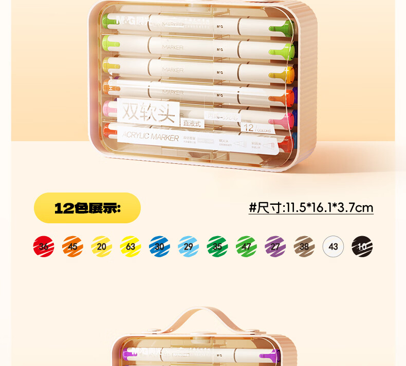 晨光文具&美院36色翻转直液式双头丙烯马克笔儿童学生画笔记号笔荧光笔涂鸦开学礼物APMUC203