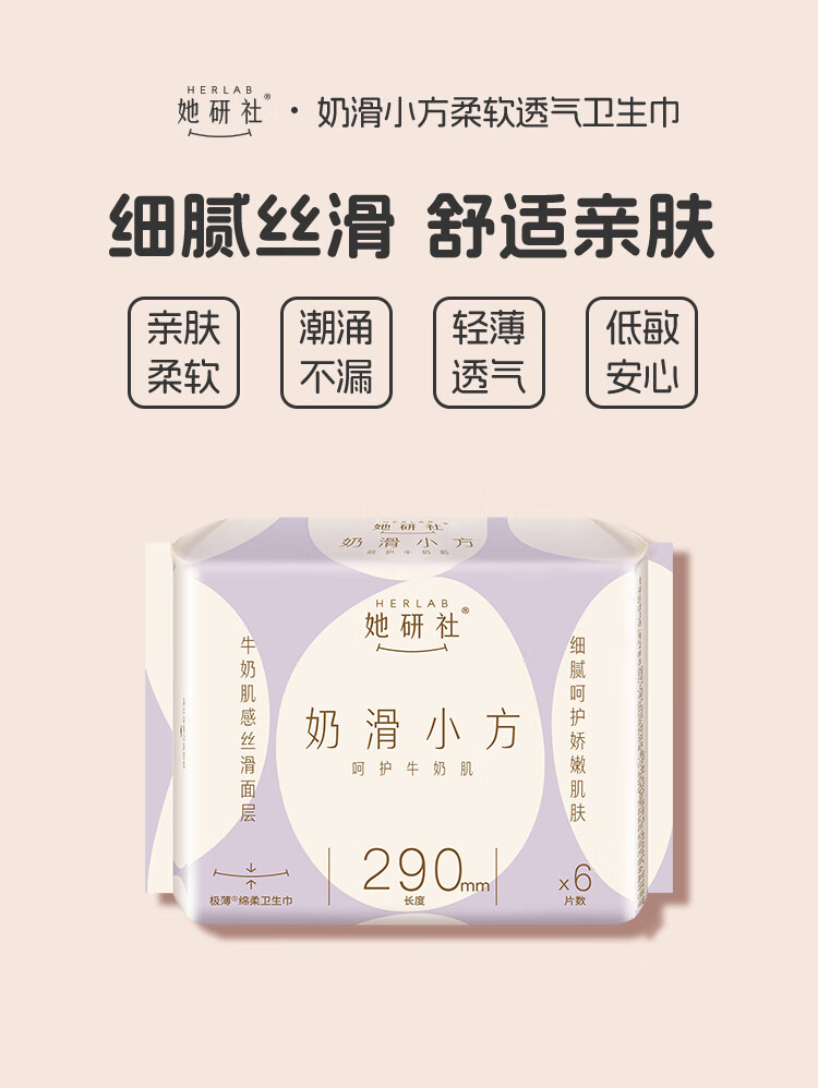 她研社经期卫生巾姨妈巾日用夜用奶滑小方绵柔超薄透气柔软 240mm*2包+290mm*2包 共28片