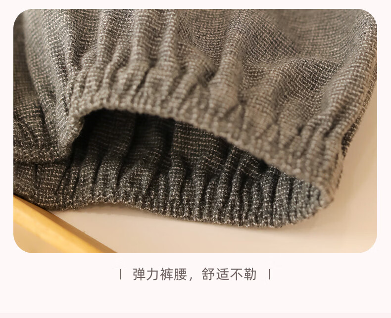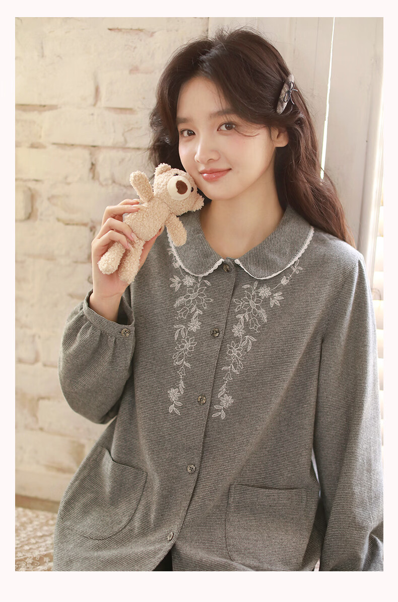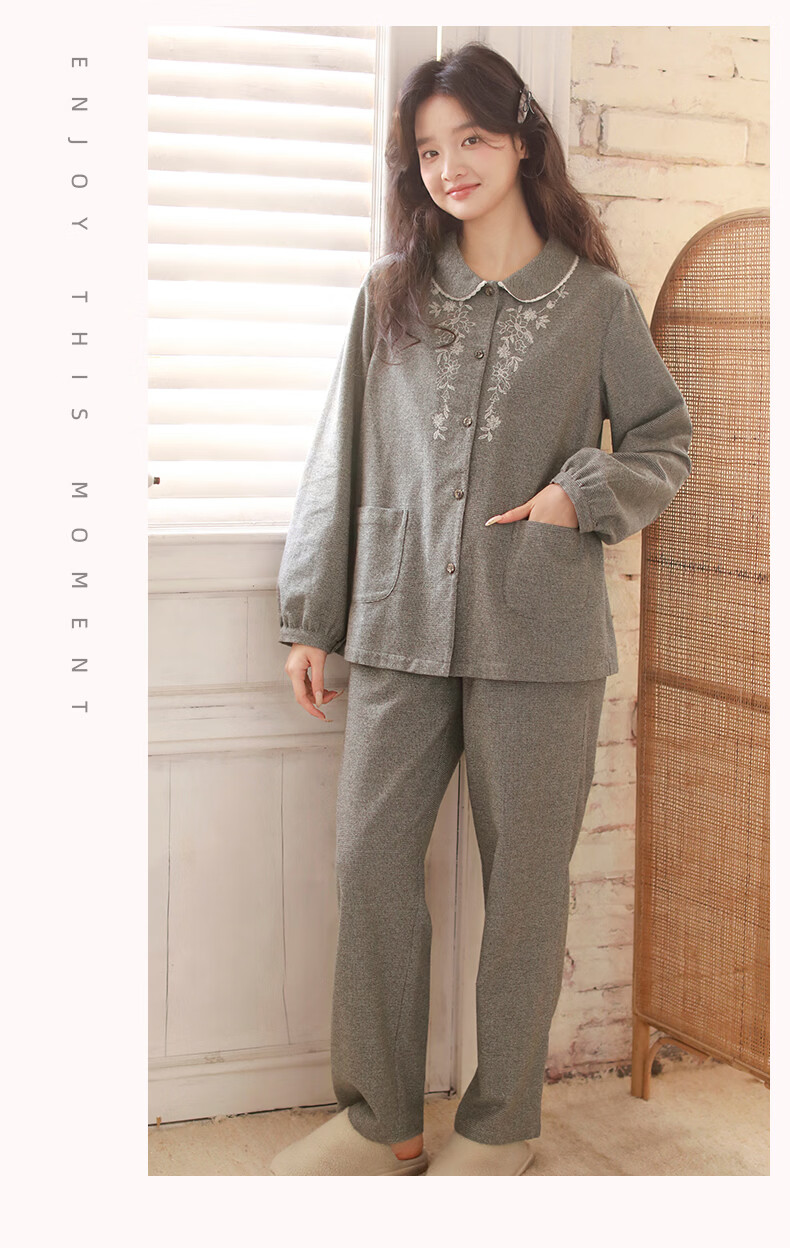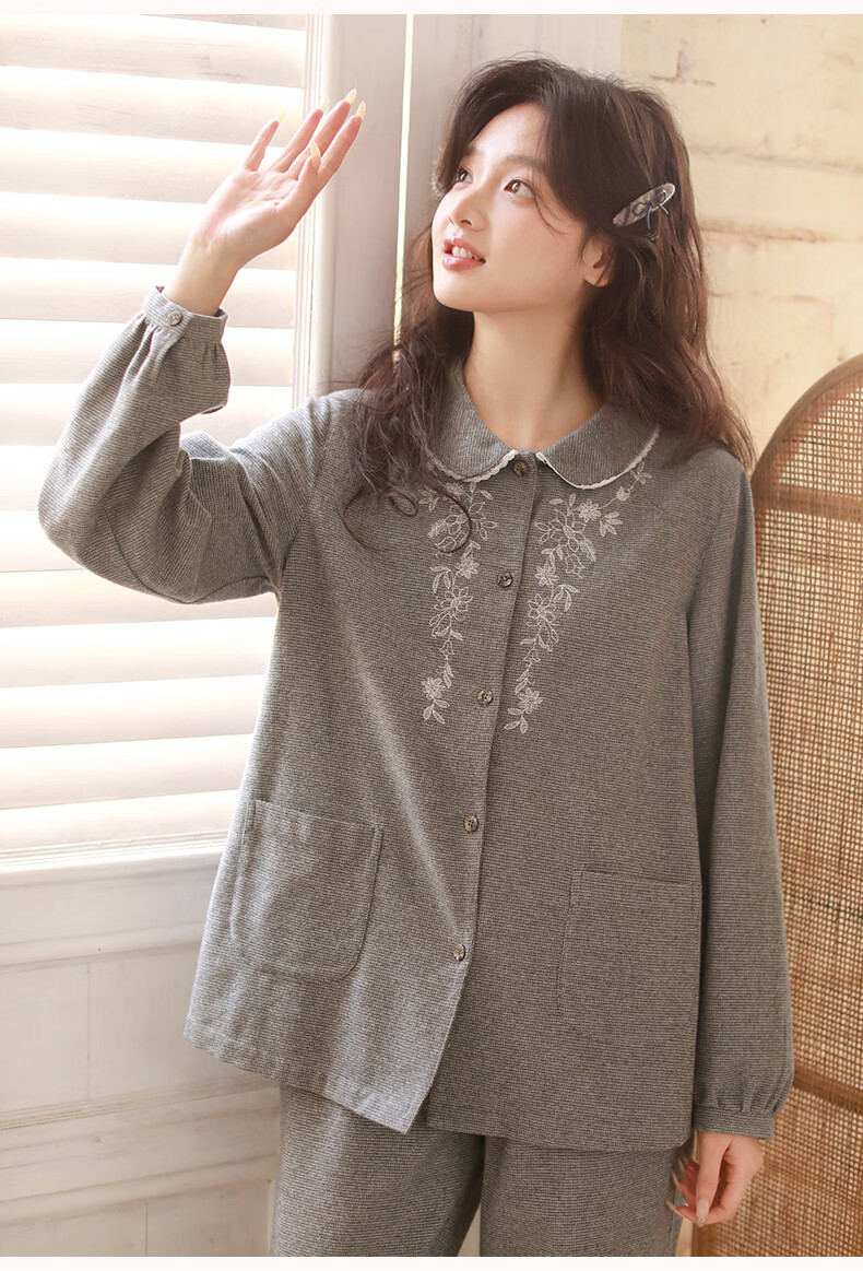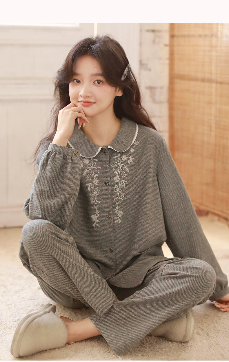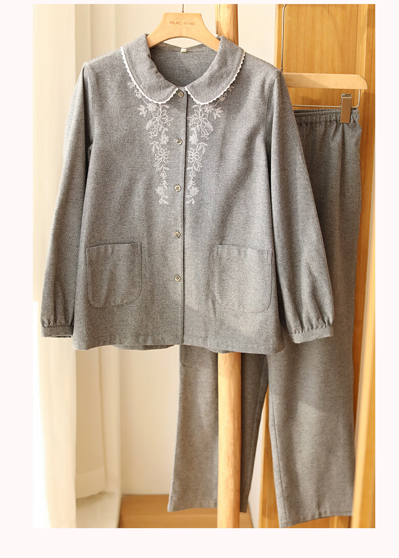 蔓秋 MEJU色织圆领长袖长裤套装家居服 灰色 S 95斤以后
