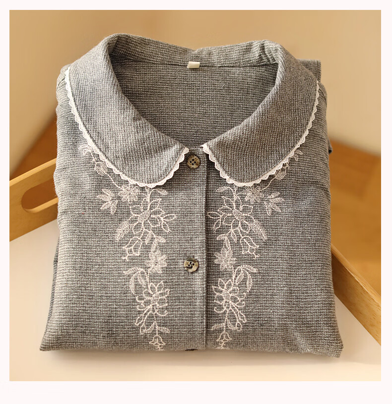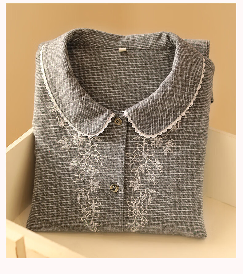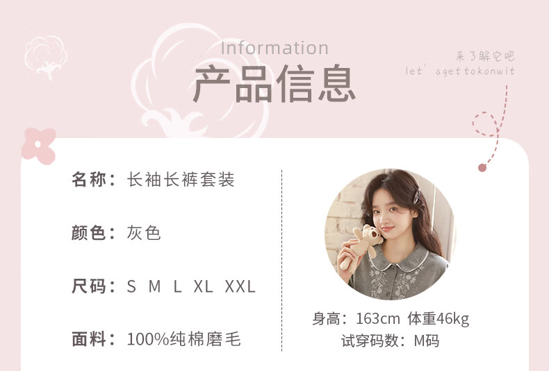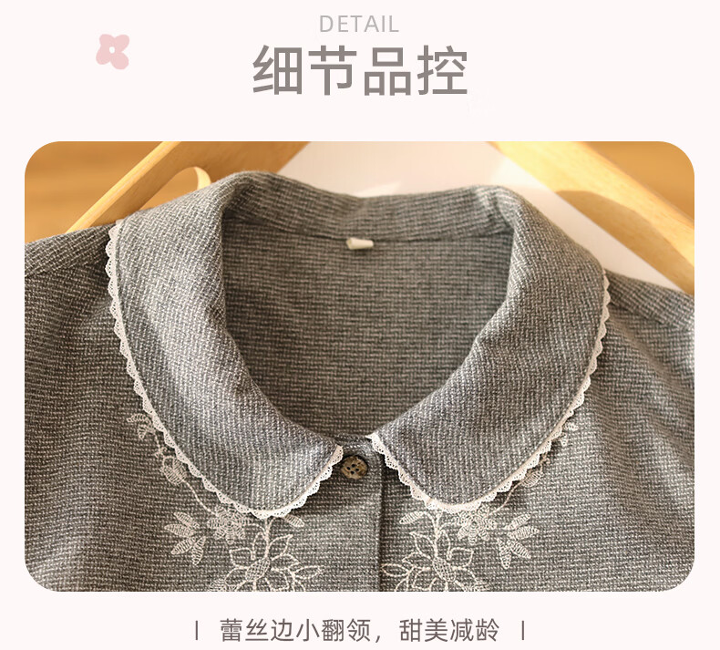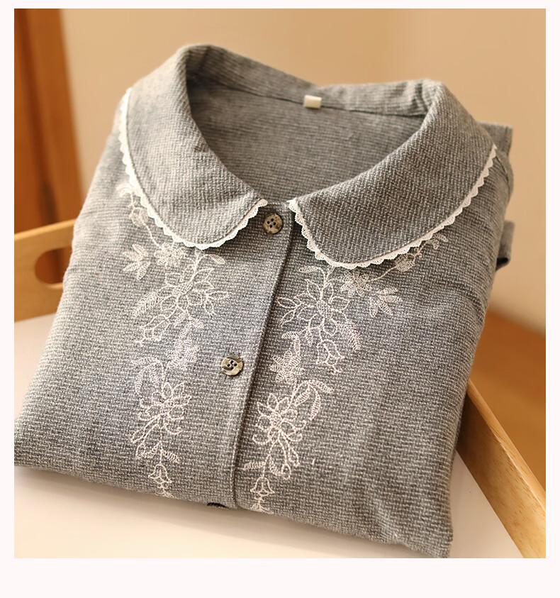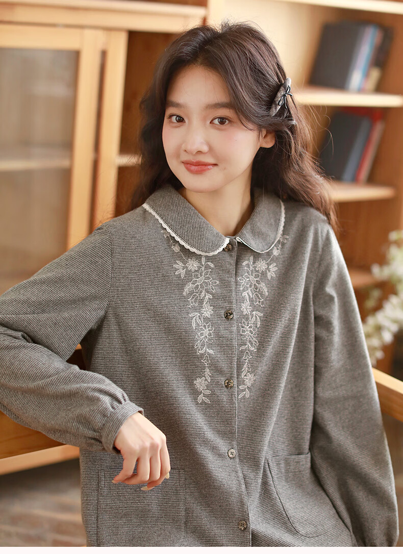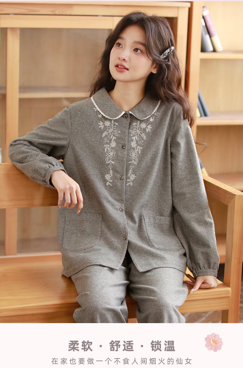 蔓秋 MEJU色织圆领长袖长裤套装家居服 灰色 S 95斤以后