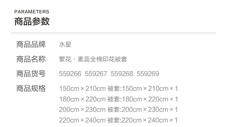 水星家纺繁花·素蕊全棉印花被套 繁花·素蕊全棉印花被套 150cm*210cm