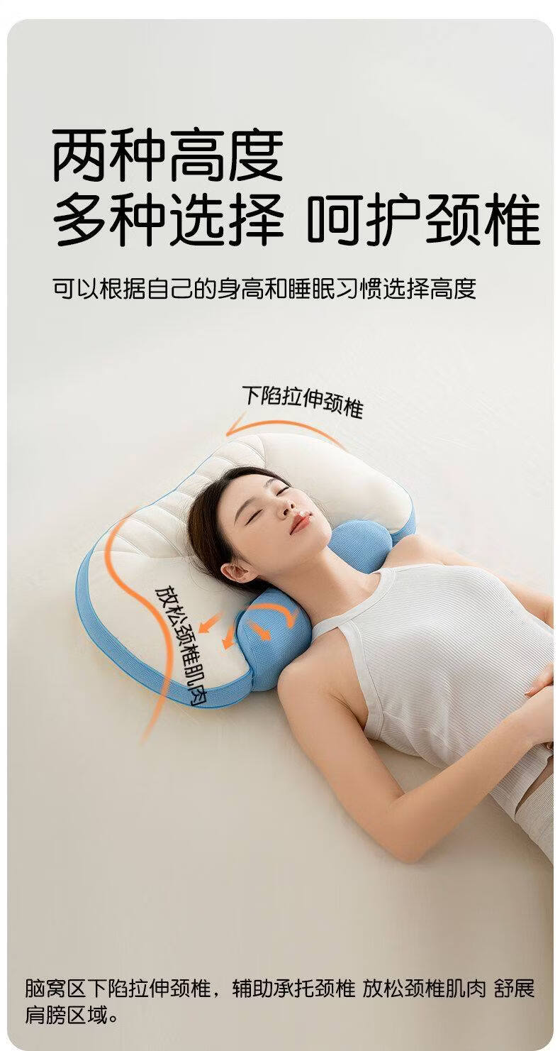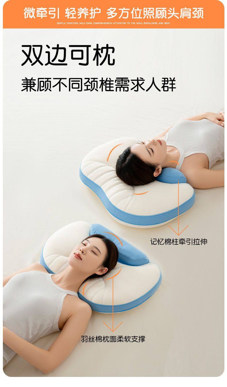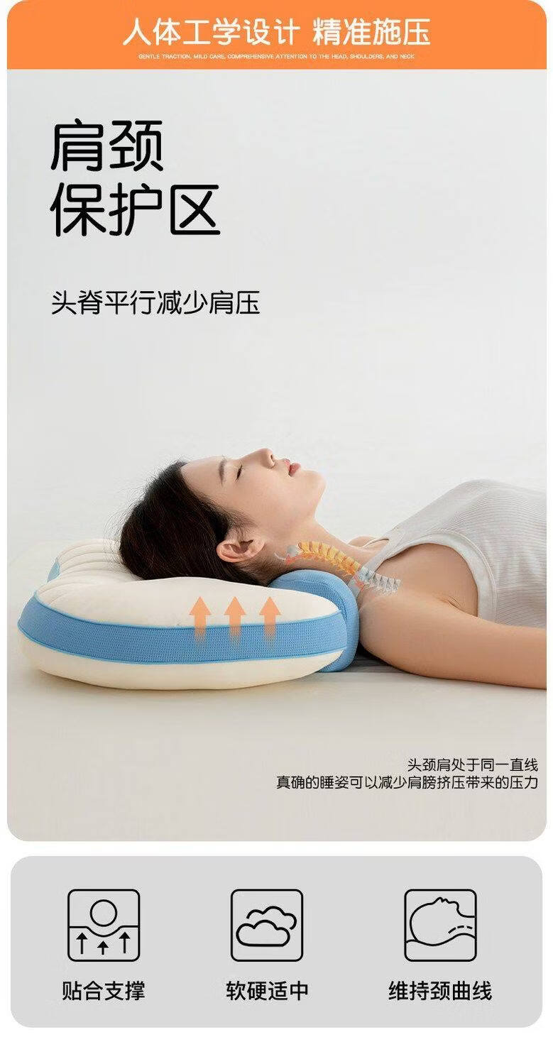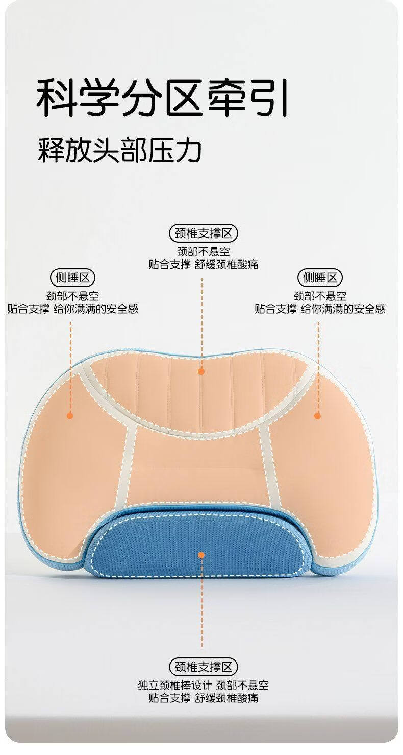 猫人枕头家用记忆棉护颈分区枕护颈椎助睡眠枕芯单人装侧睡整头男 天空蓝【单只装】双核承托|记忆棉慢回弹|护颈承托 无规格