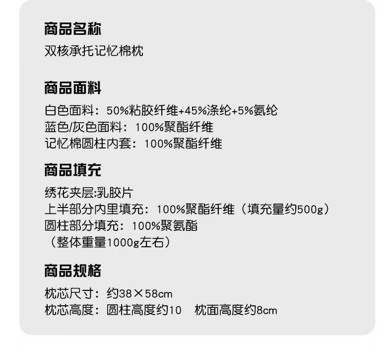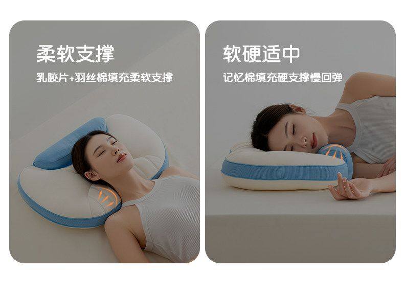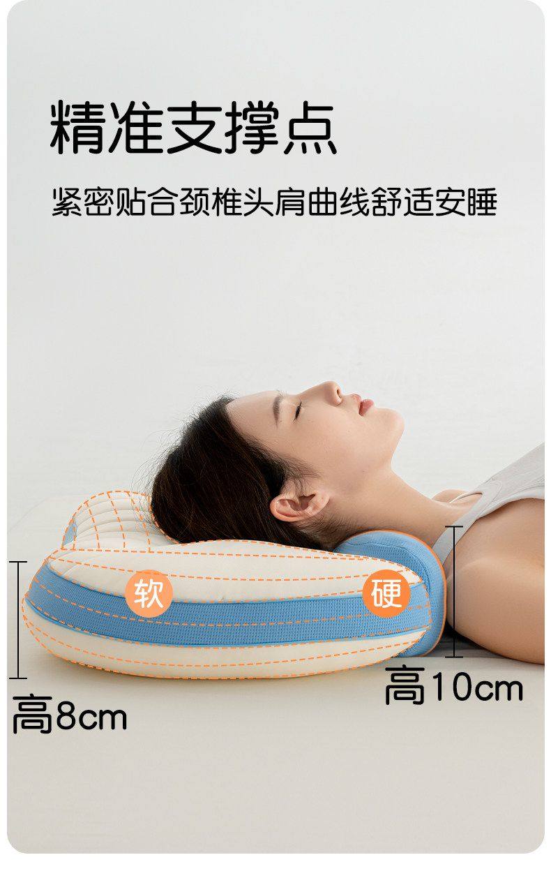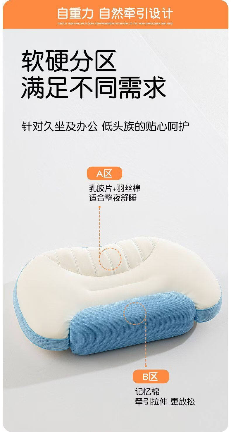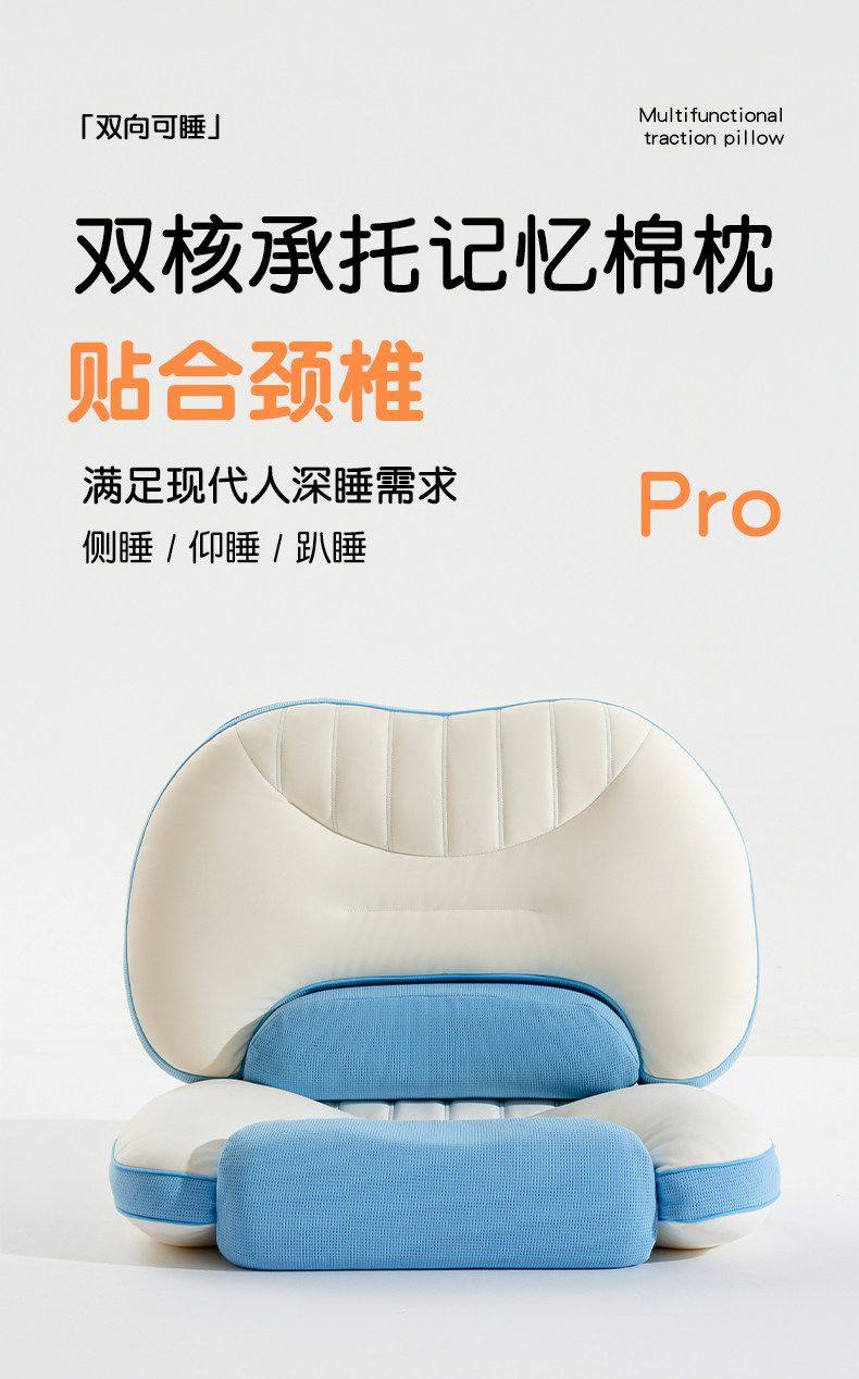 猫人枕头家用记忆棉护颈分区枕护颈椎助睡眠枕芯单人装侧睡整头男 天空蓝【单只装】双核承托|记忆棉慢回弹|护颈承托 无规格