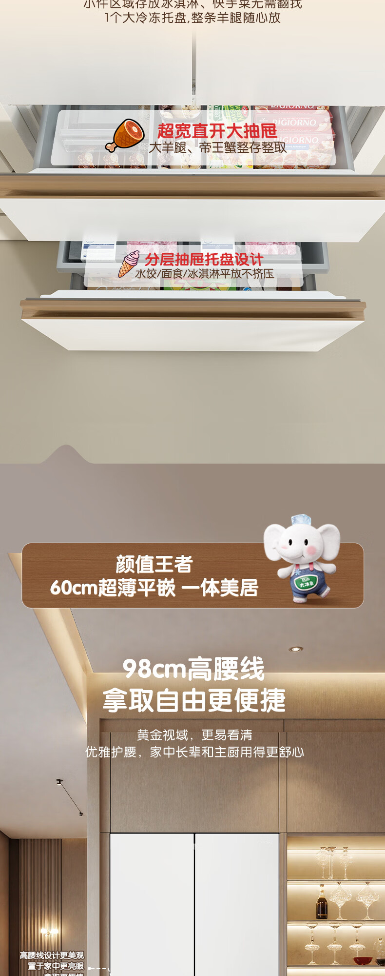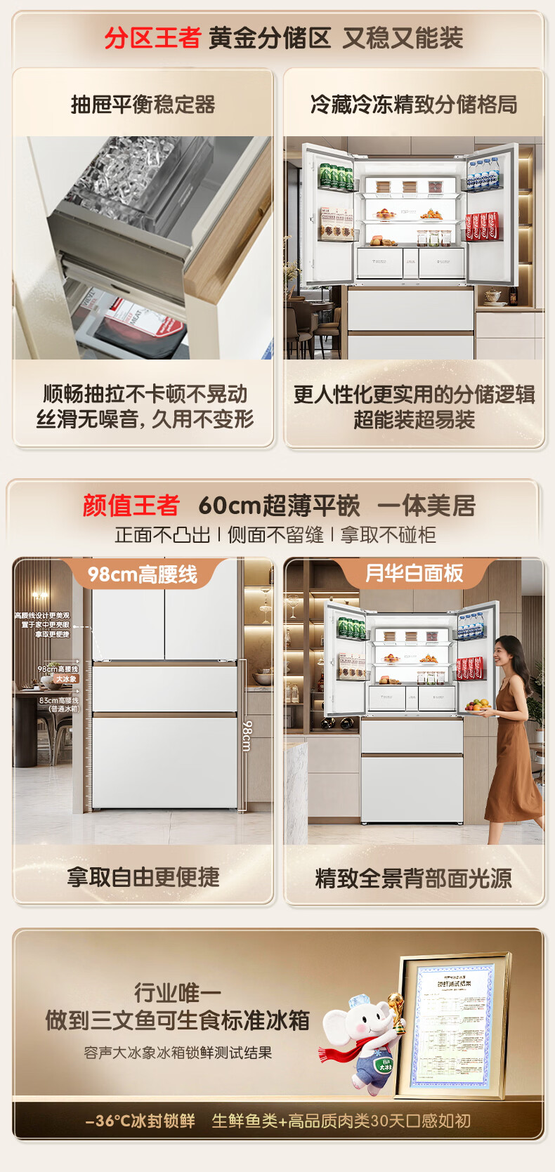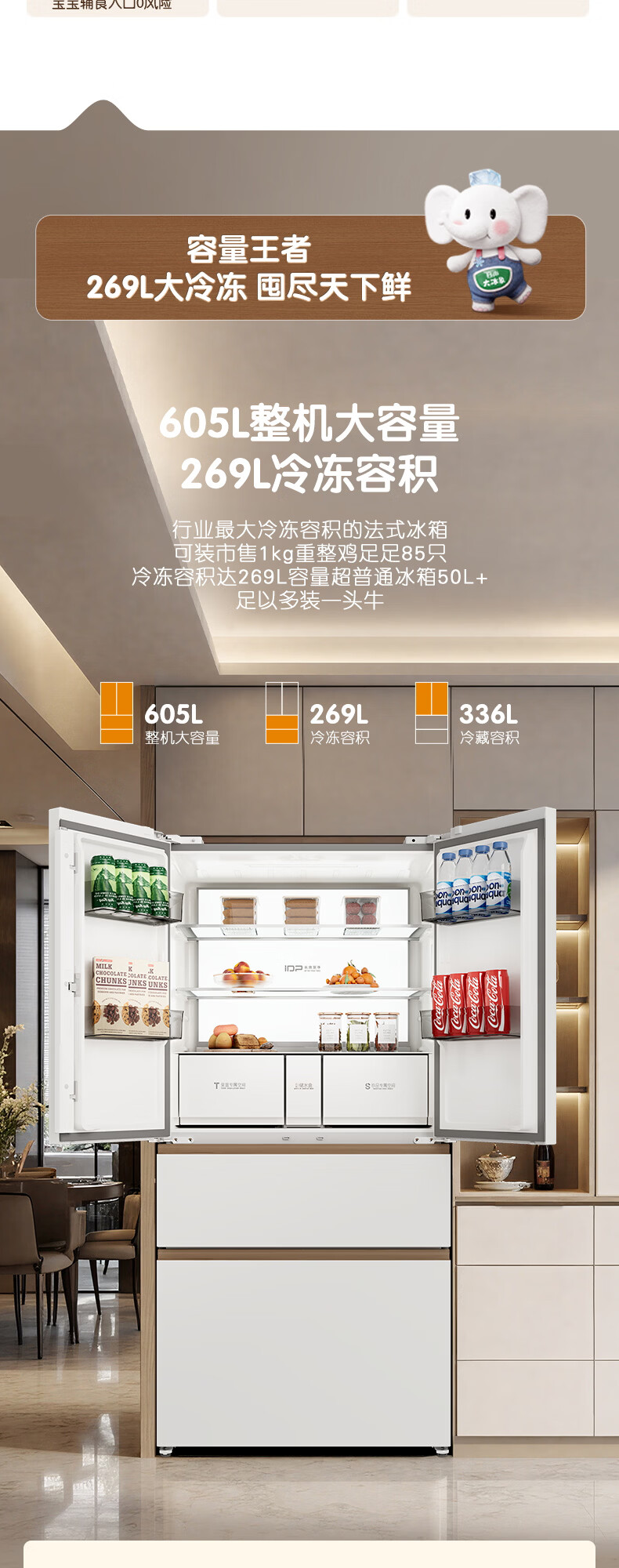 容声世界杯定制大冰象机皇605L法式四开门冰箱双系统超薄嵌入式一级能效制冰国家补贴 BCD-605Q60FZNBD