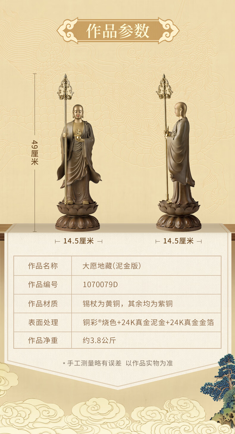 铜师傅铜摆件《大愿地藏(泥金版)》佛像 家居工艺品装饰品摆件