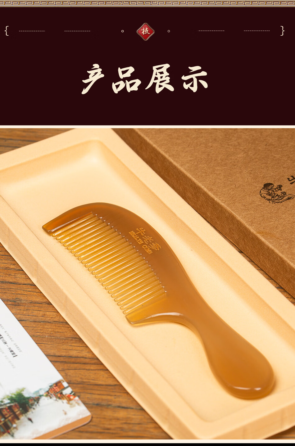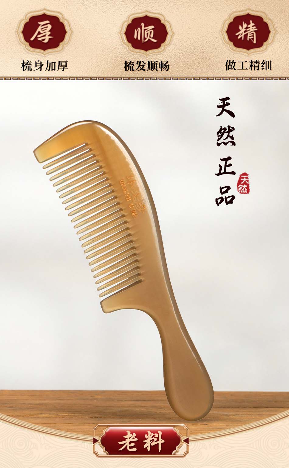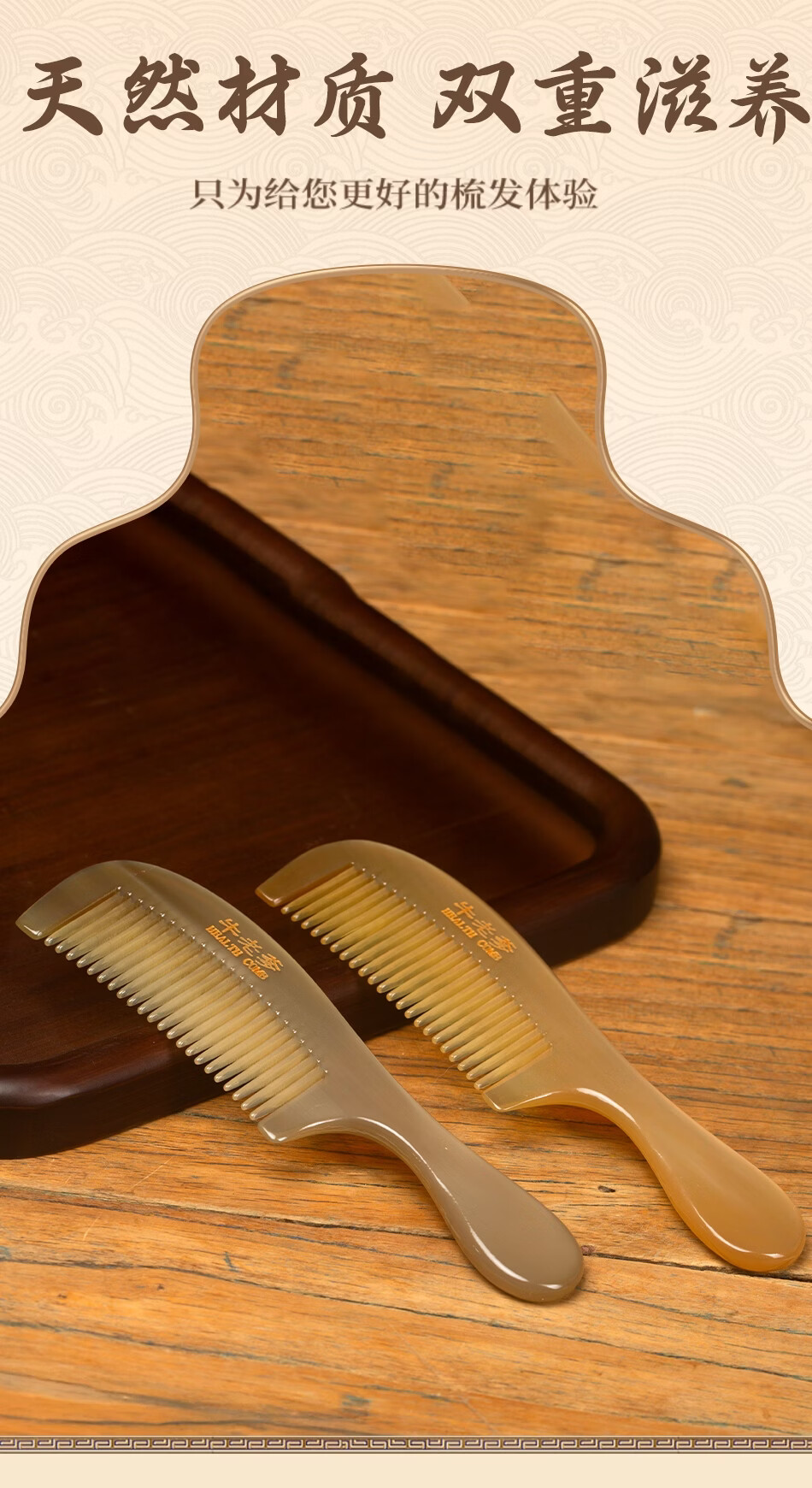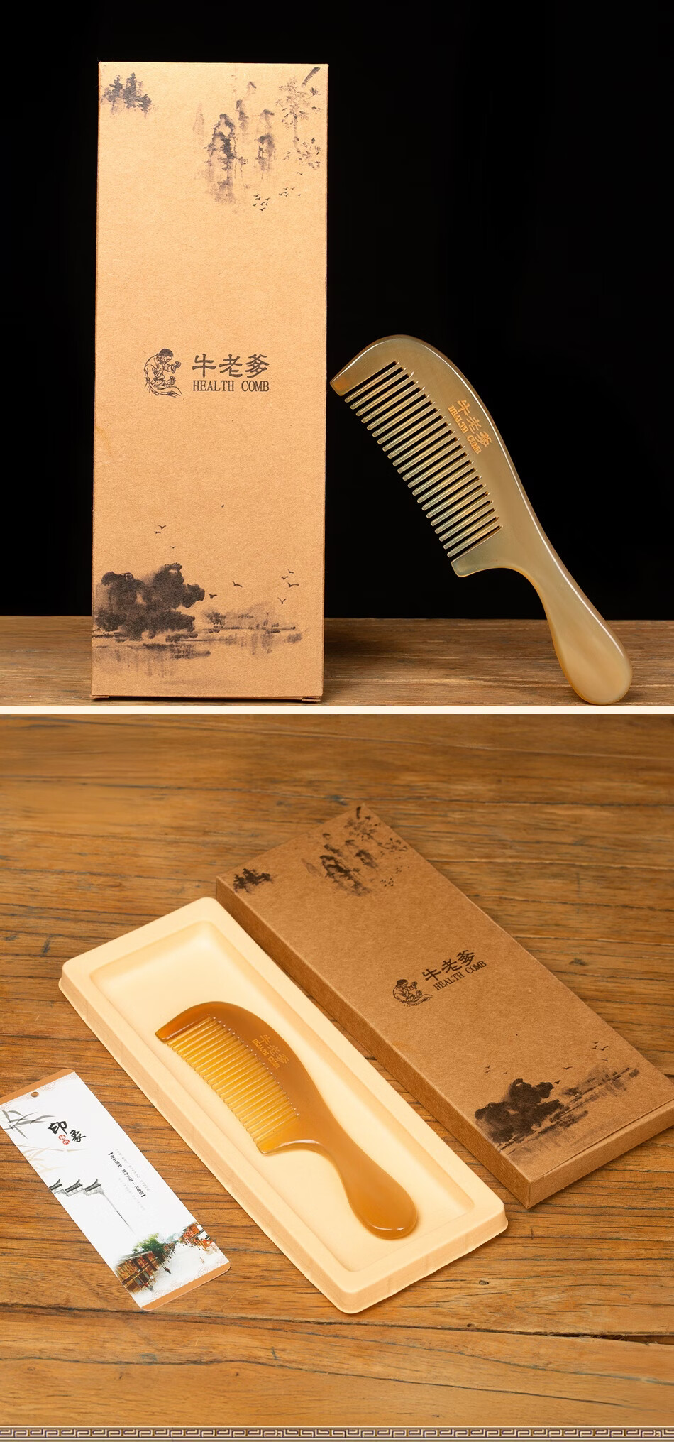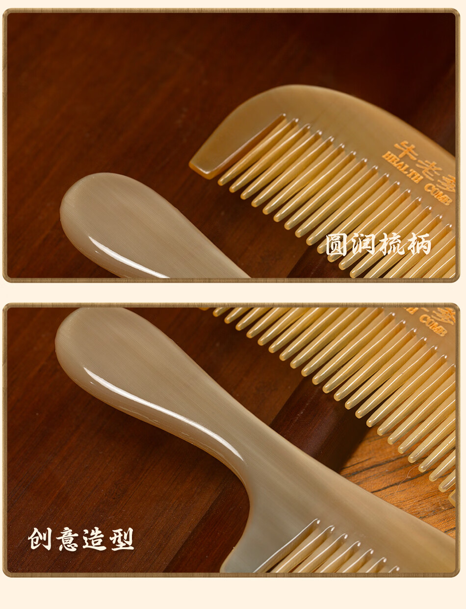 牛老爹天然真牛角梳子女士专用长发家用便携头部经络按摩实用细齿梳子 梳子+礼盒
