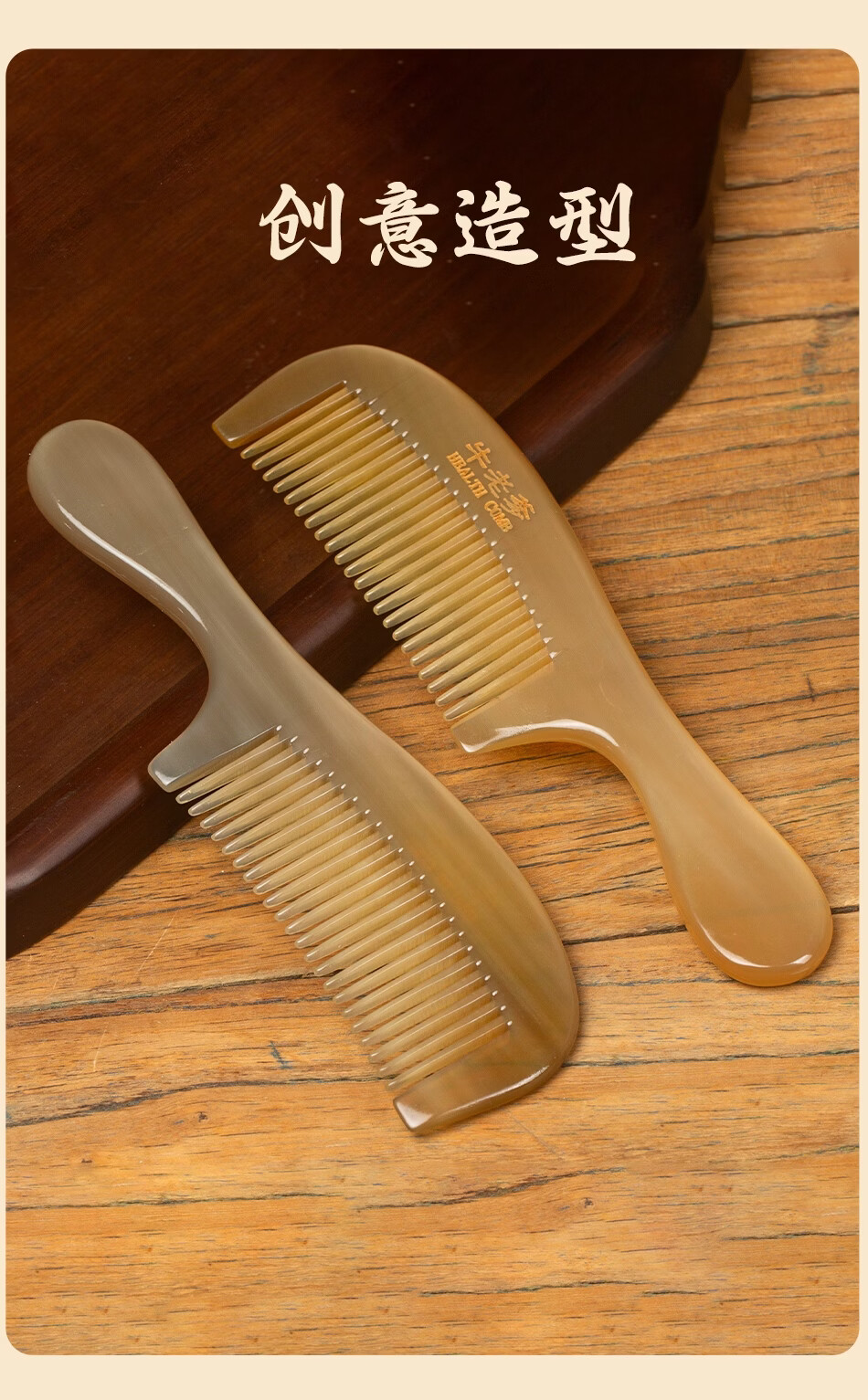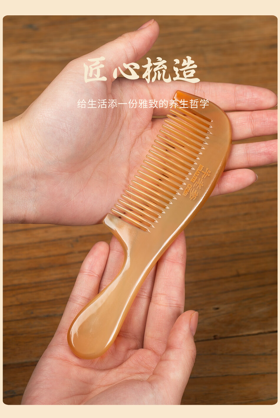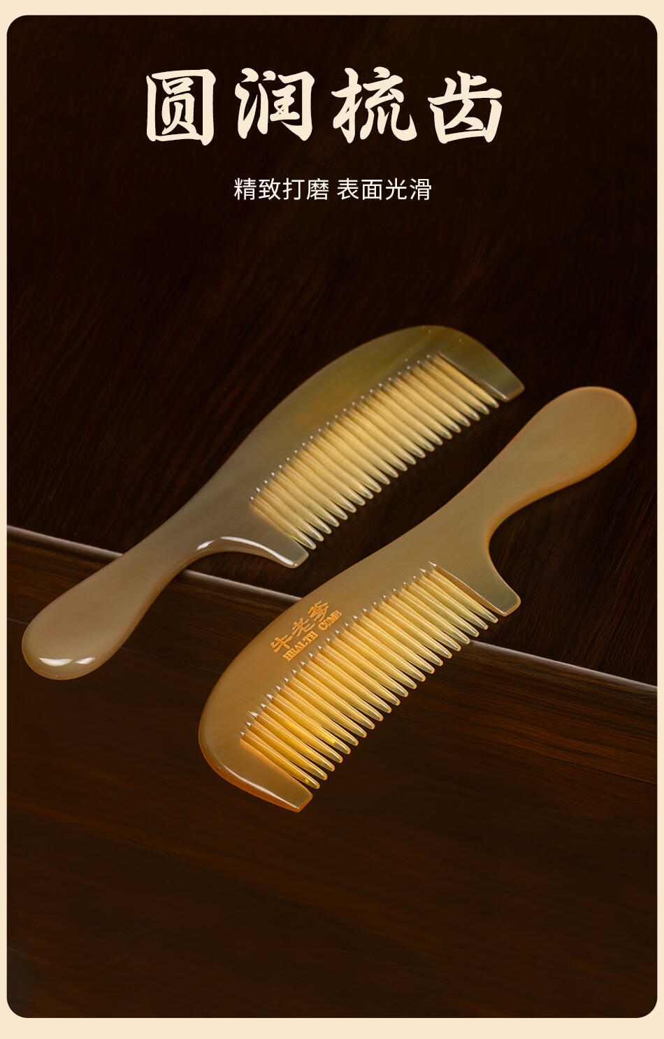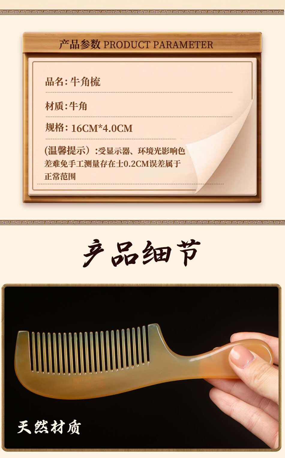 牛老爹天然真牛角梳子女士专用长发家用便携头部经络按摩实用细齿梳子 梳子+礼盒