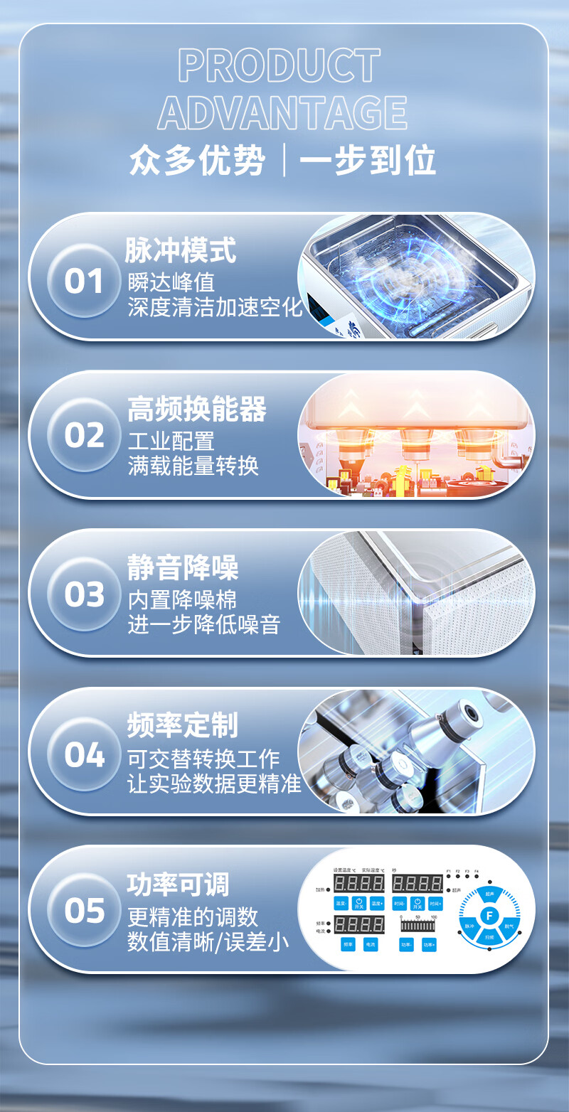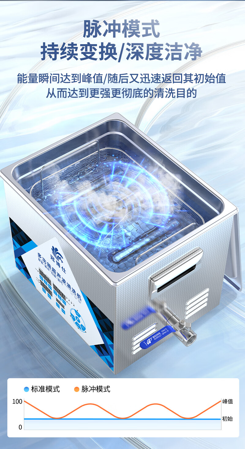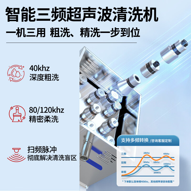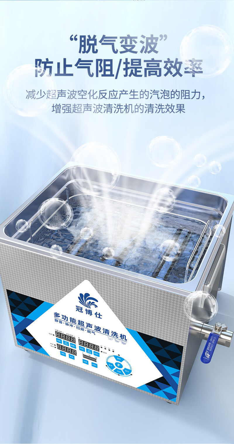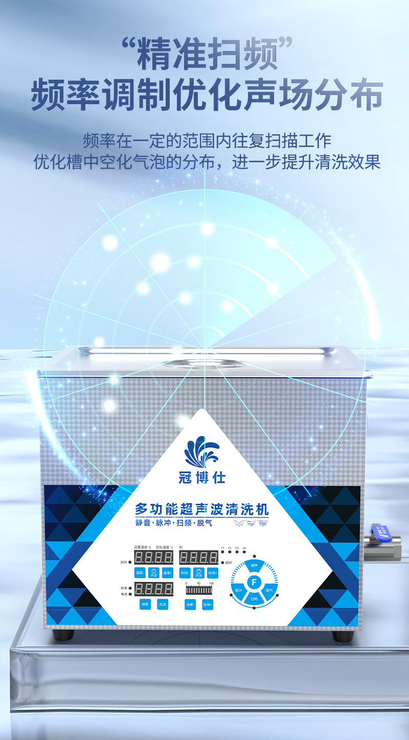 冠博仕多频超声波清洗机实验室科研精密器件微孔易损物品清洁设备功率可调多种清洗模式25~170KHZ可选 4.5L-200W【40/80/120可切换】