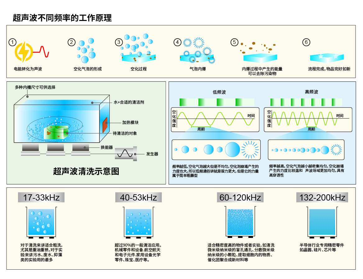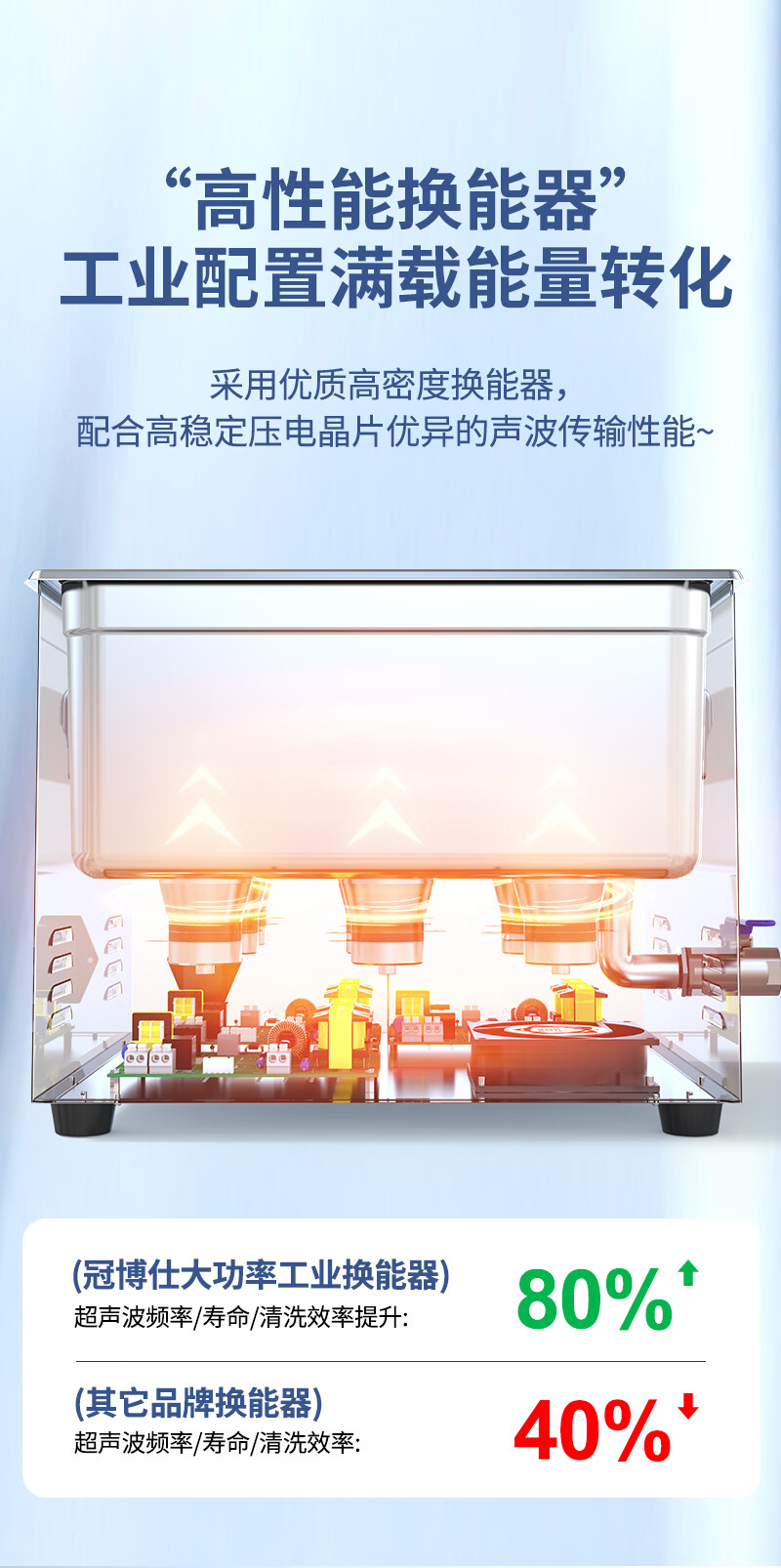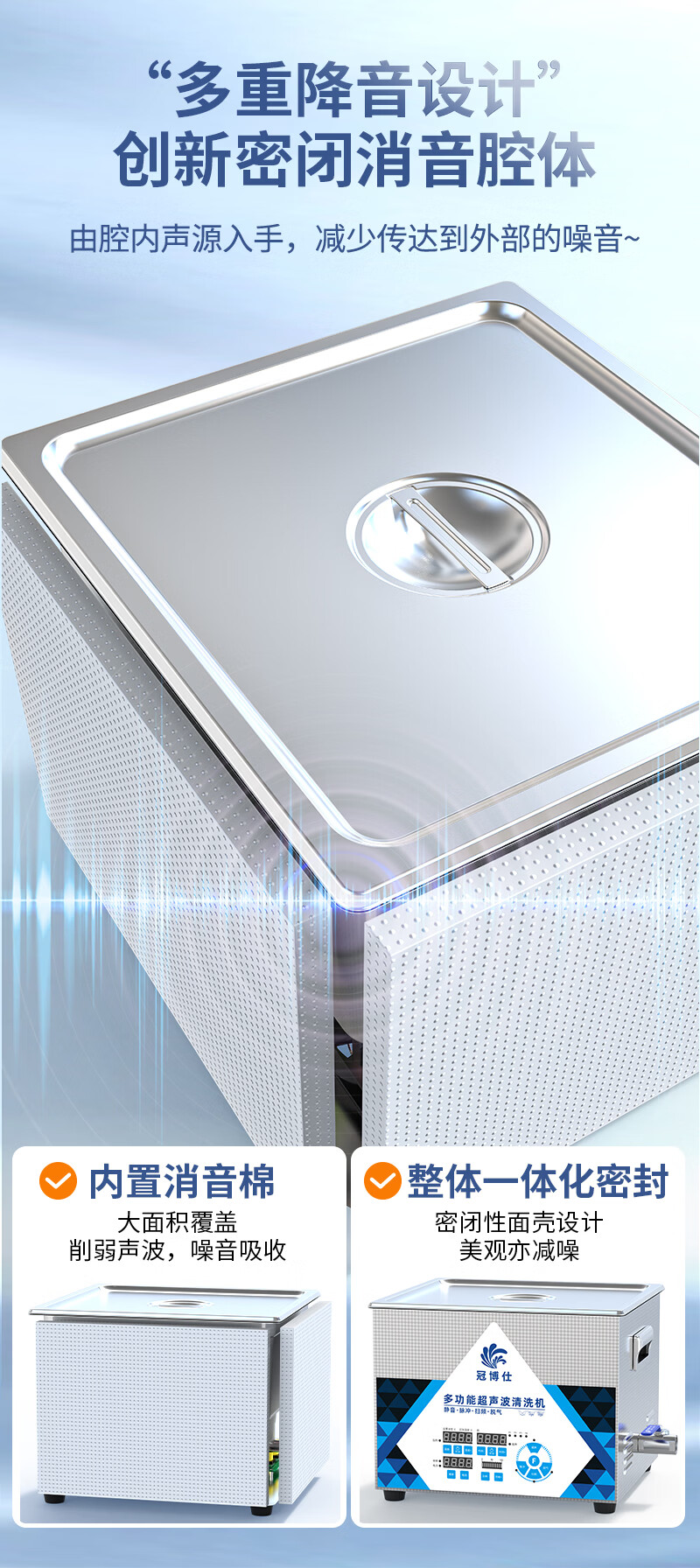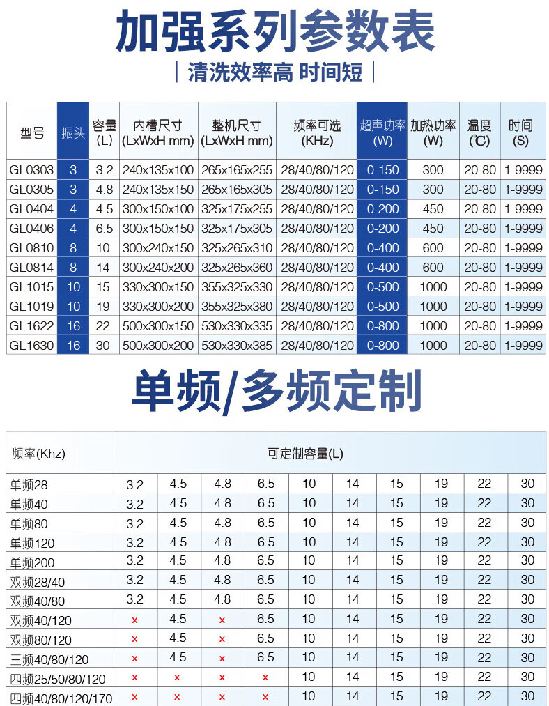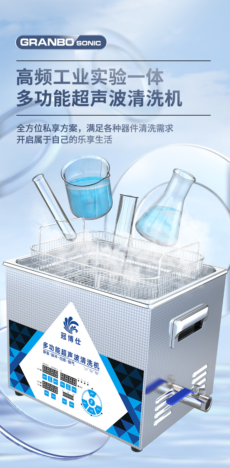 冠博仕多频超声波清洗机实验室科研精密器件微孔易损物品清洁设备功率可调多种清洗模式25~170KHZ可选 4.5L-200W【40/80/120可切换】