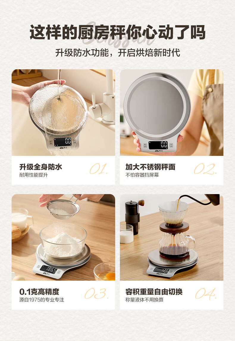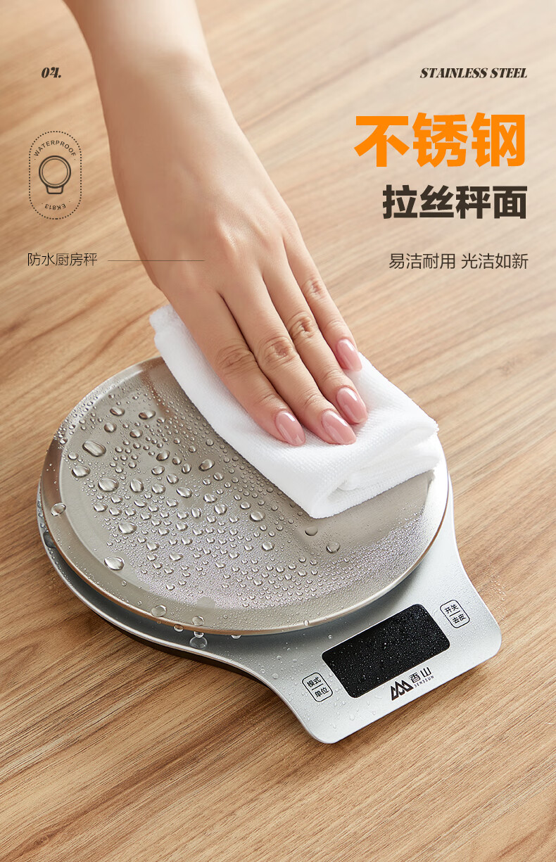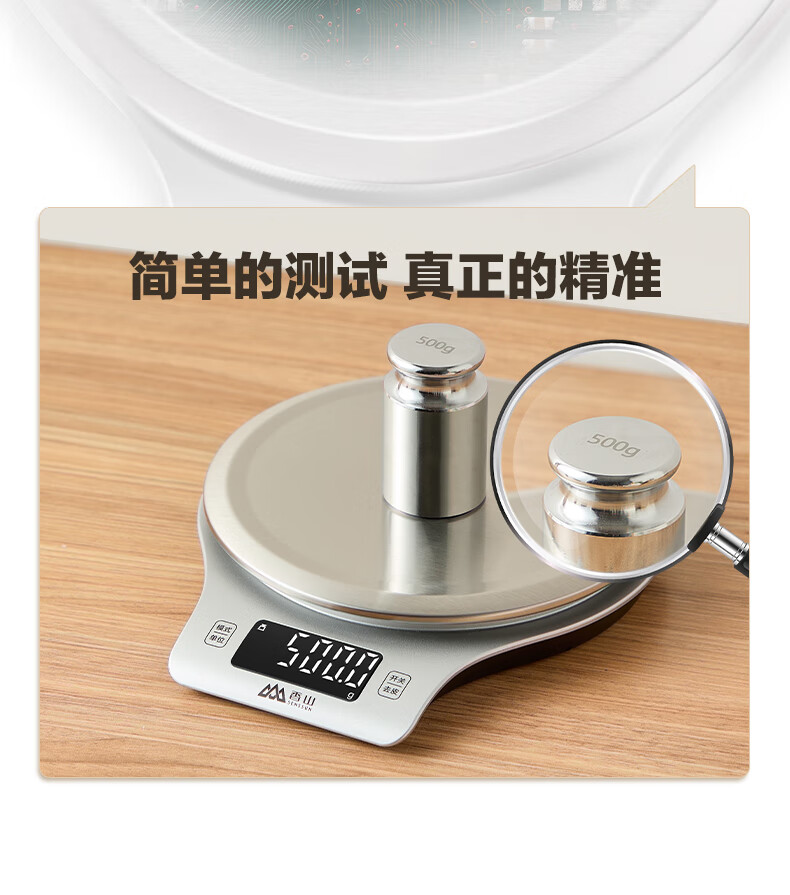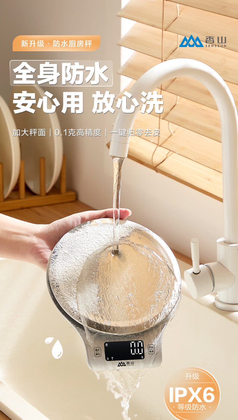 香山电子秤 防水厨房秤IPX6 咖啡烘焙秤 0.1g高精度 Type-C充电款