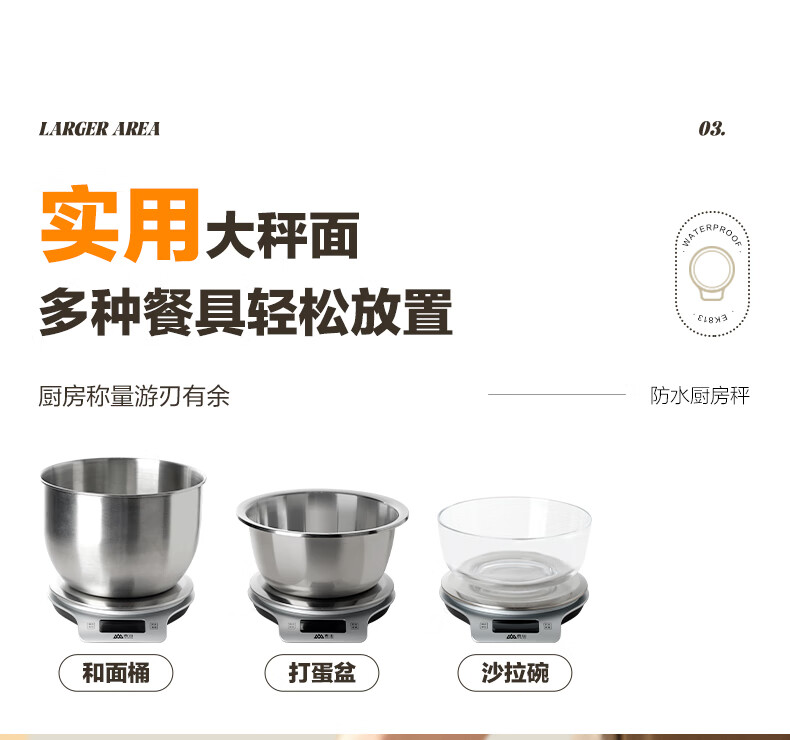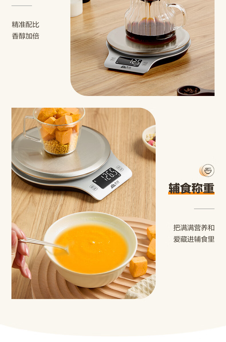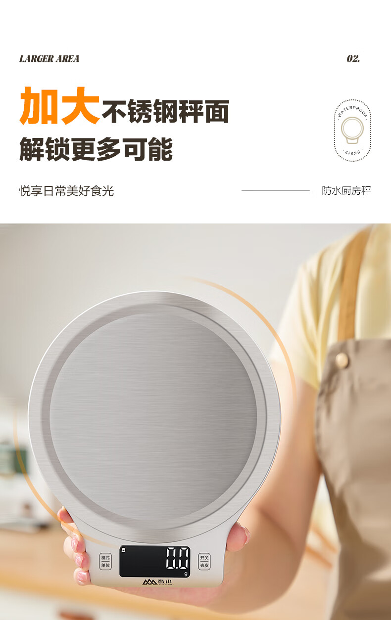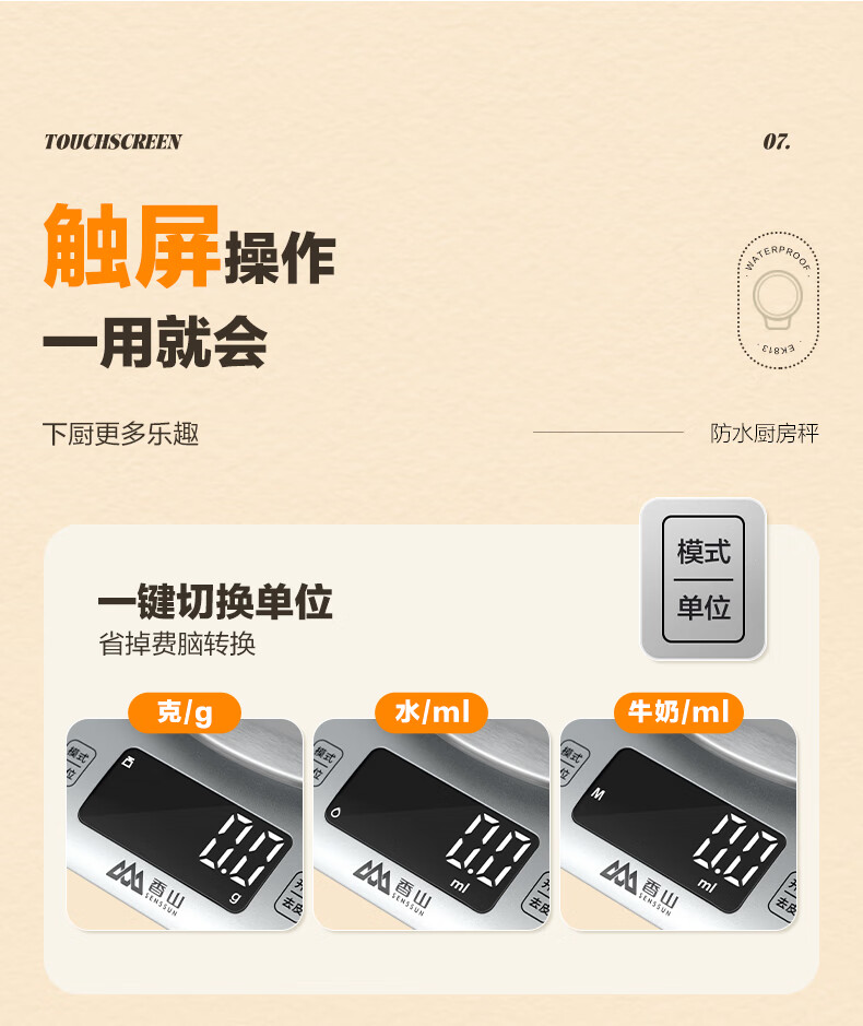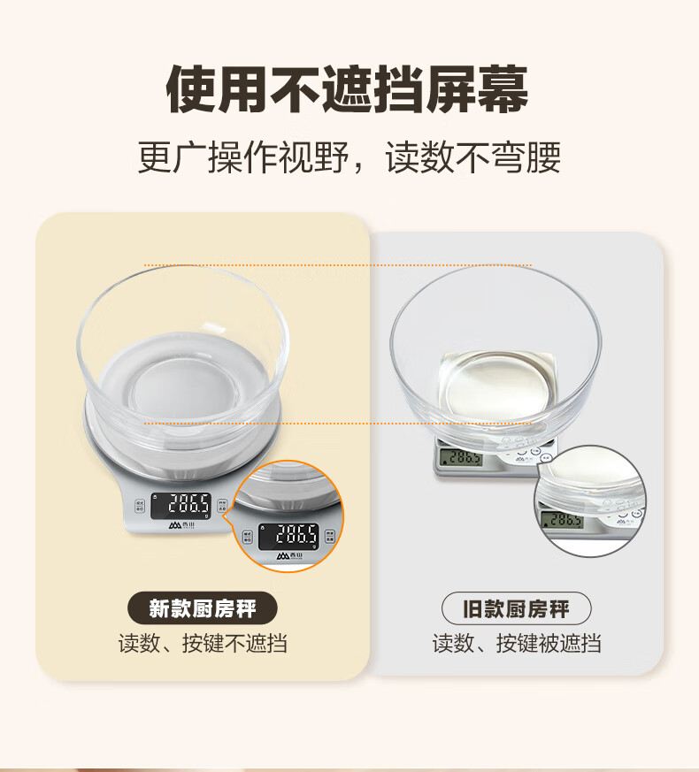 香山电子秤 防水厨房秤IPX6 咖啡烘焙秤 0.1g高精度 Type-C充电款