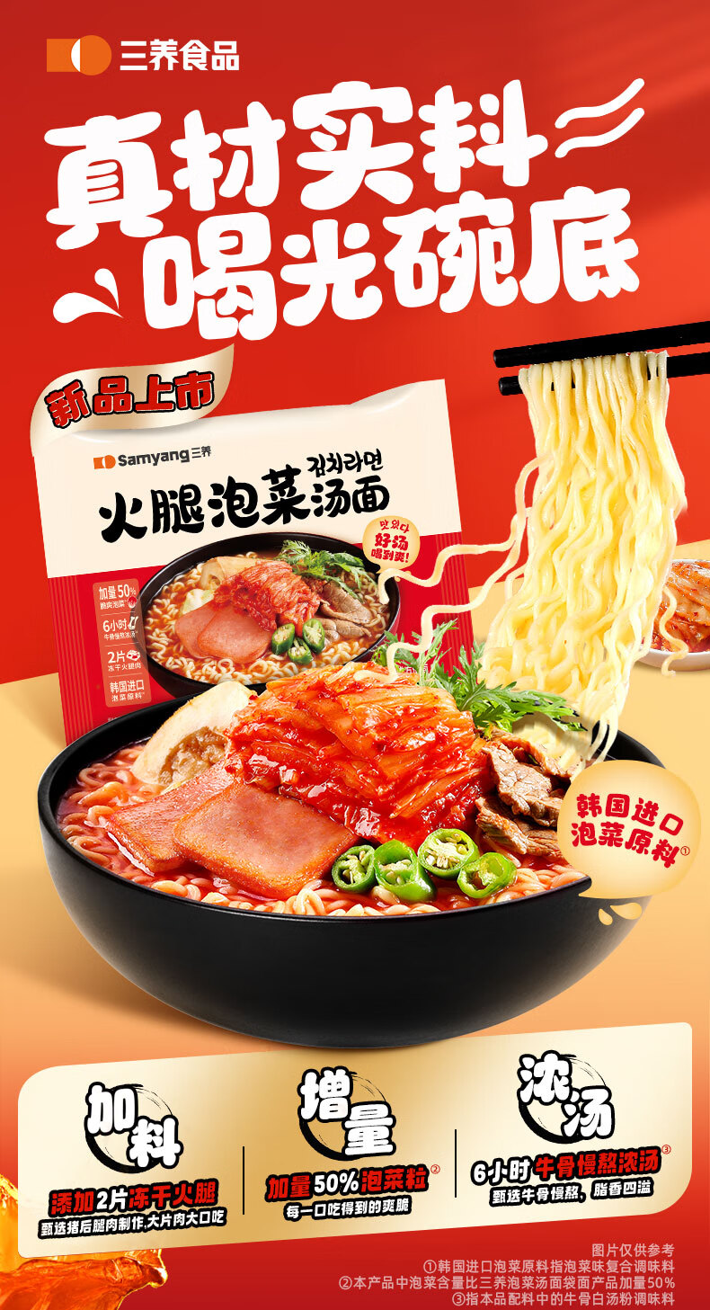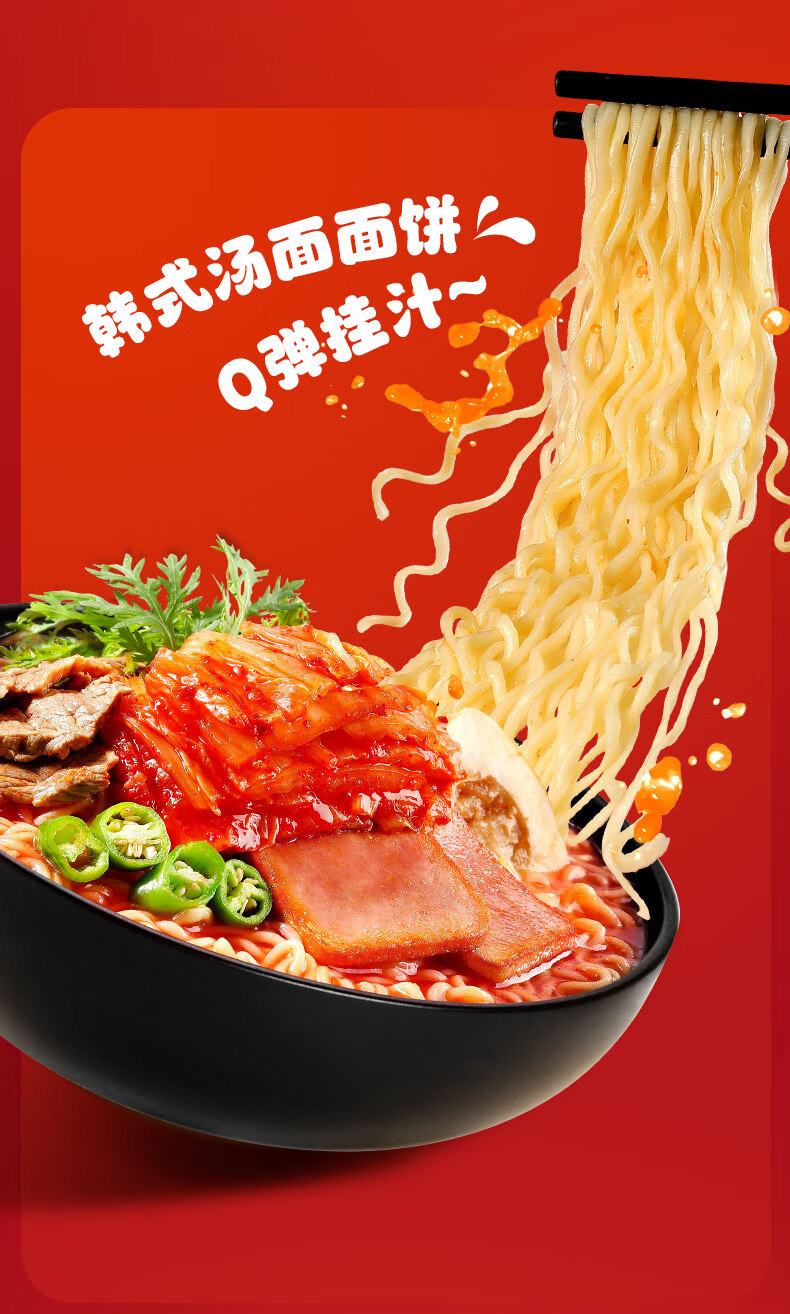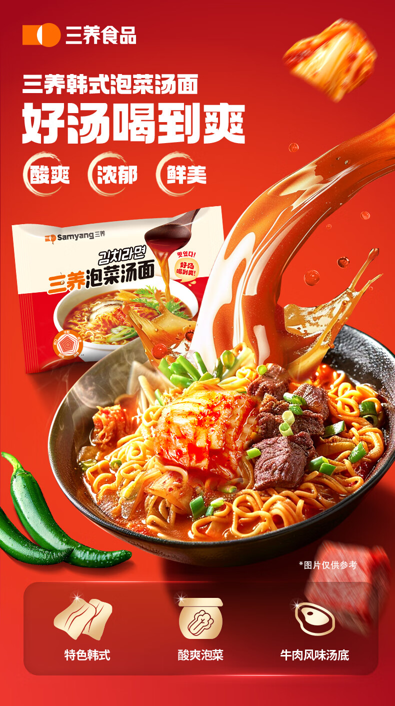 三养方便面泡菜汤面 韩式辣白菜风味泡面夜宵拉面速食 泡菜汤面104g*5袋