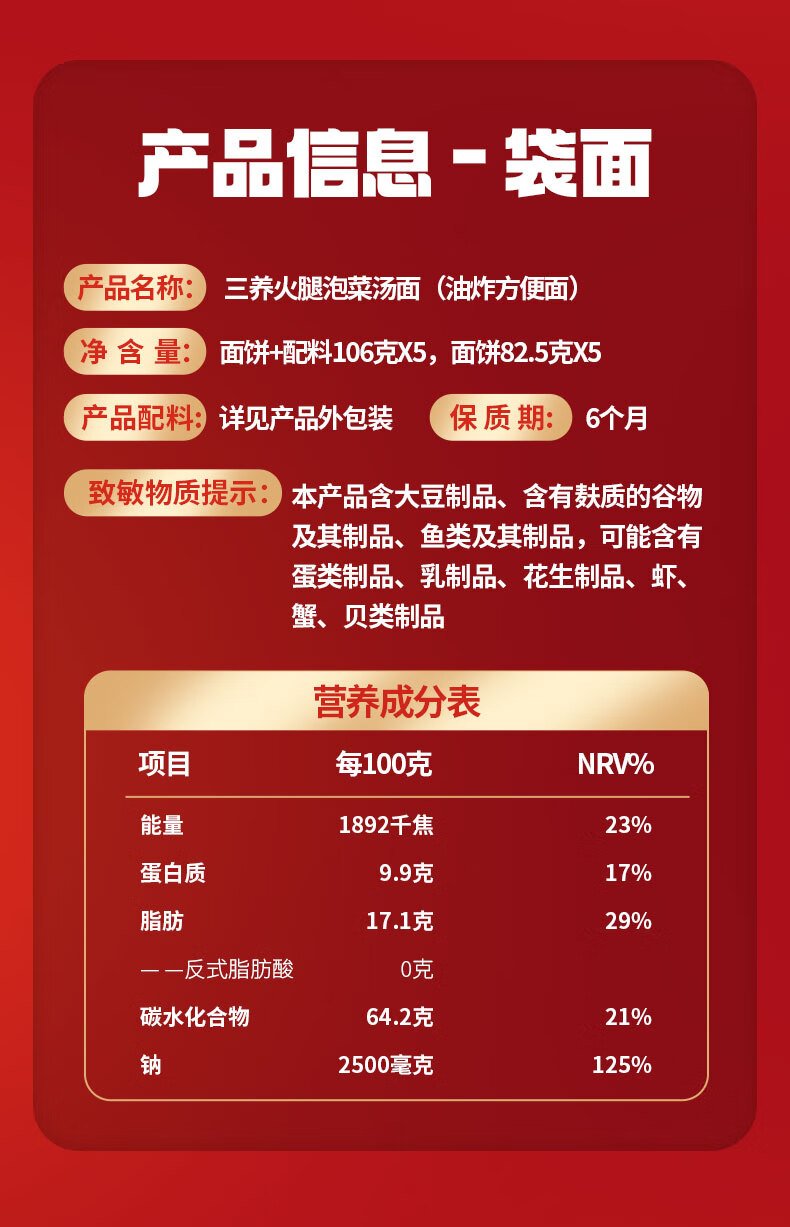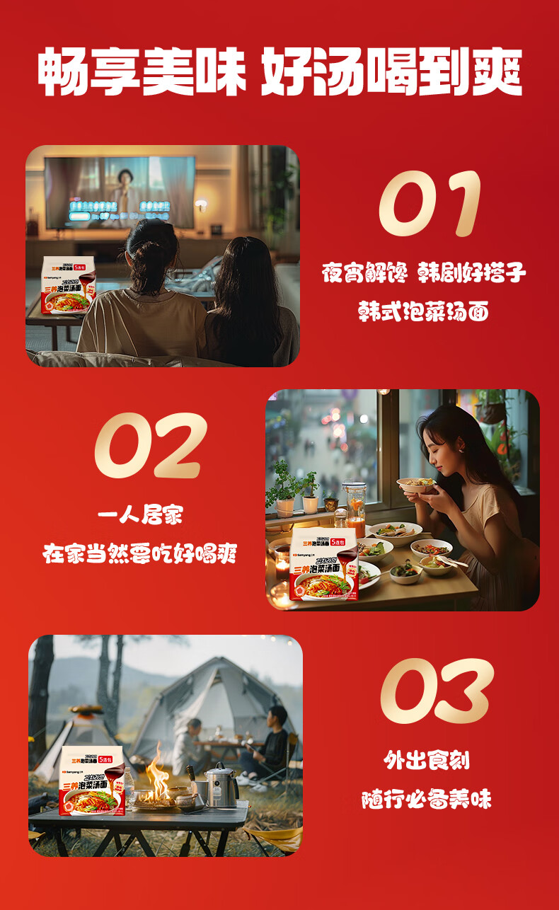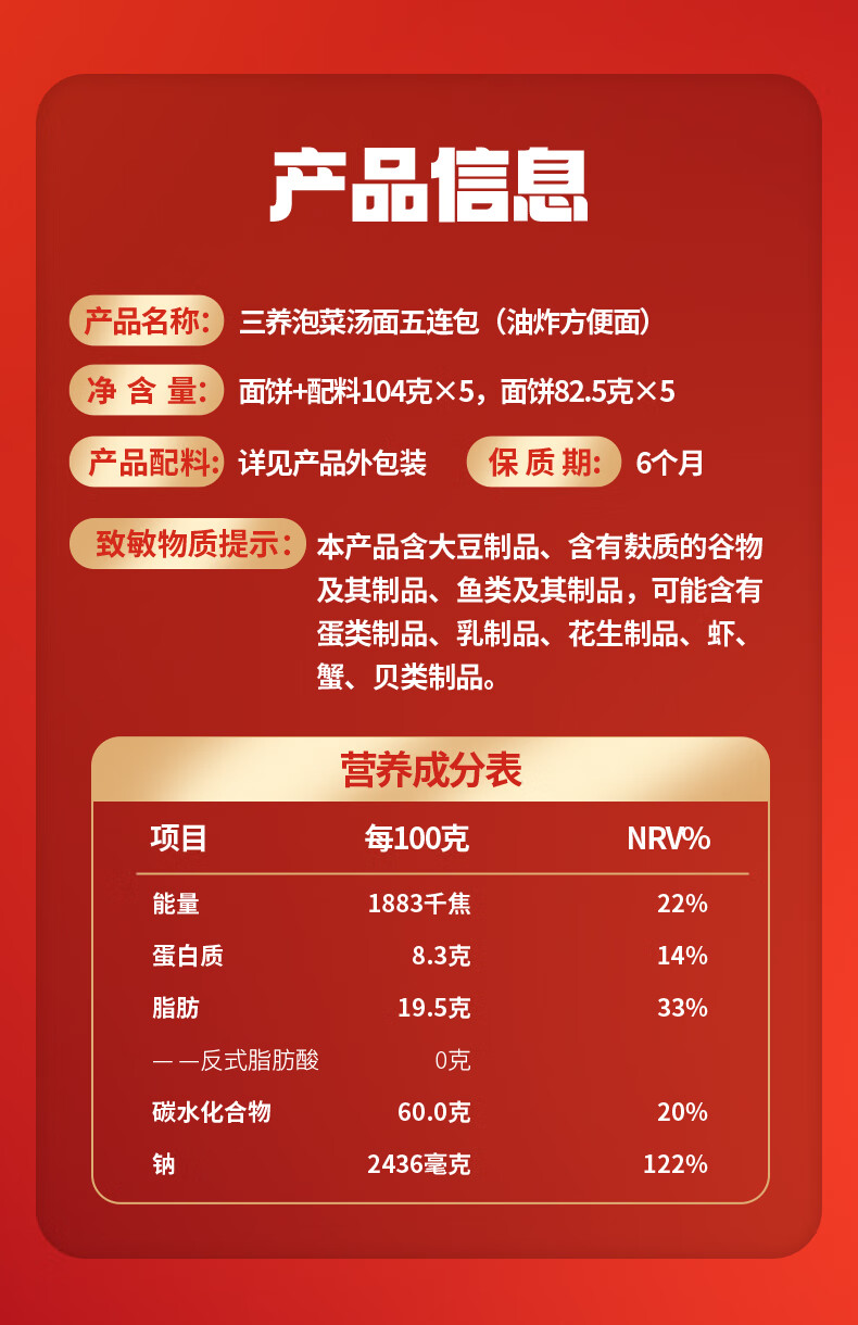 三养方便面泡菜汤面 韩式辣白菜风味泡面夜宵拉面速食 泡菜汤面104g*5袋